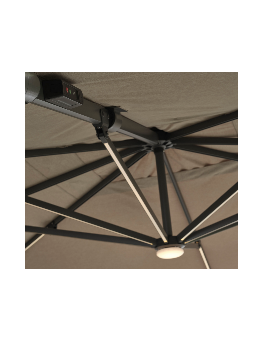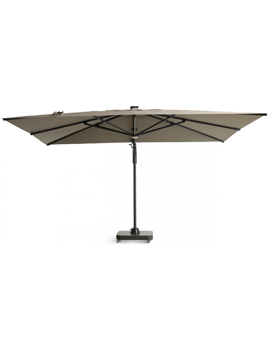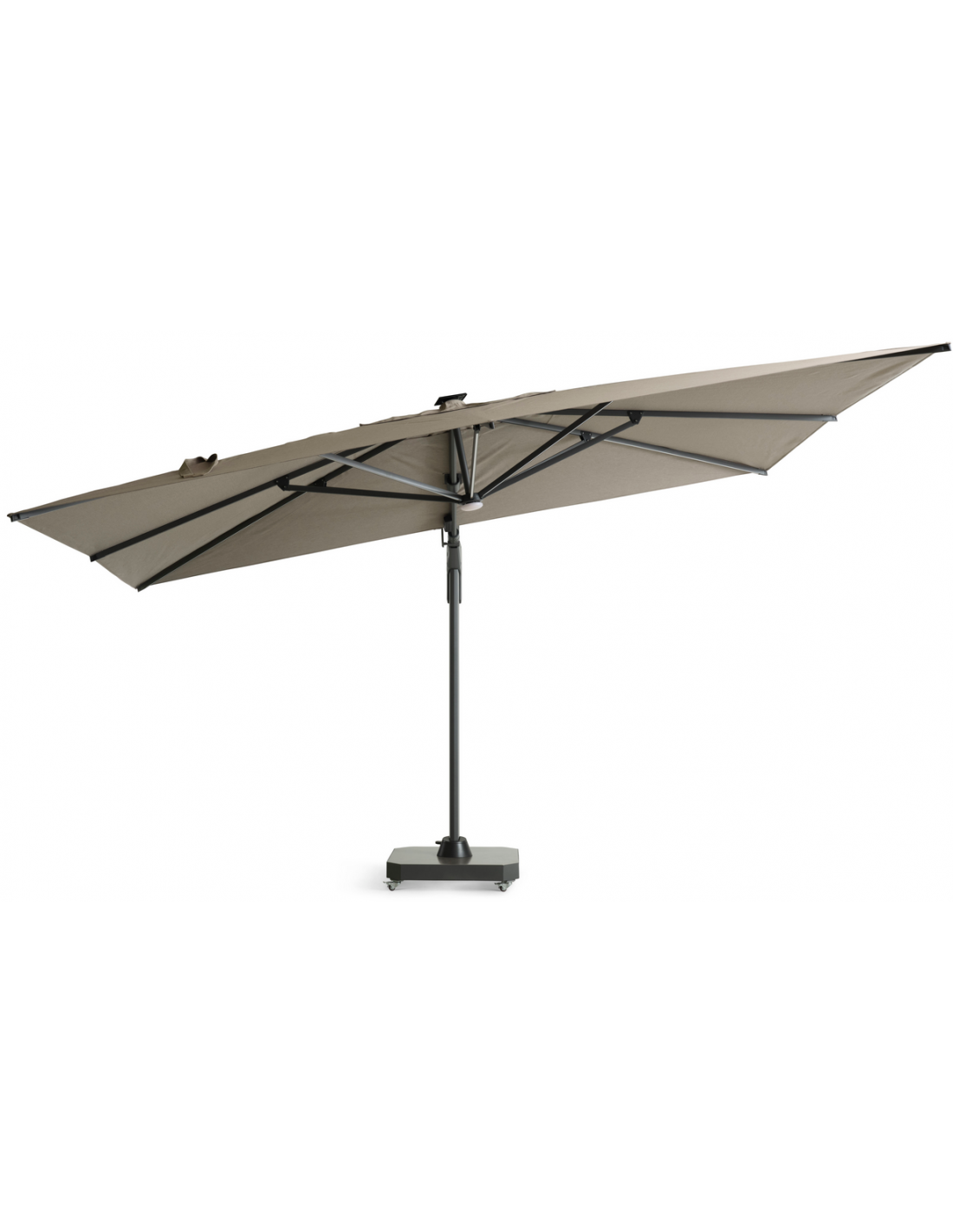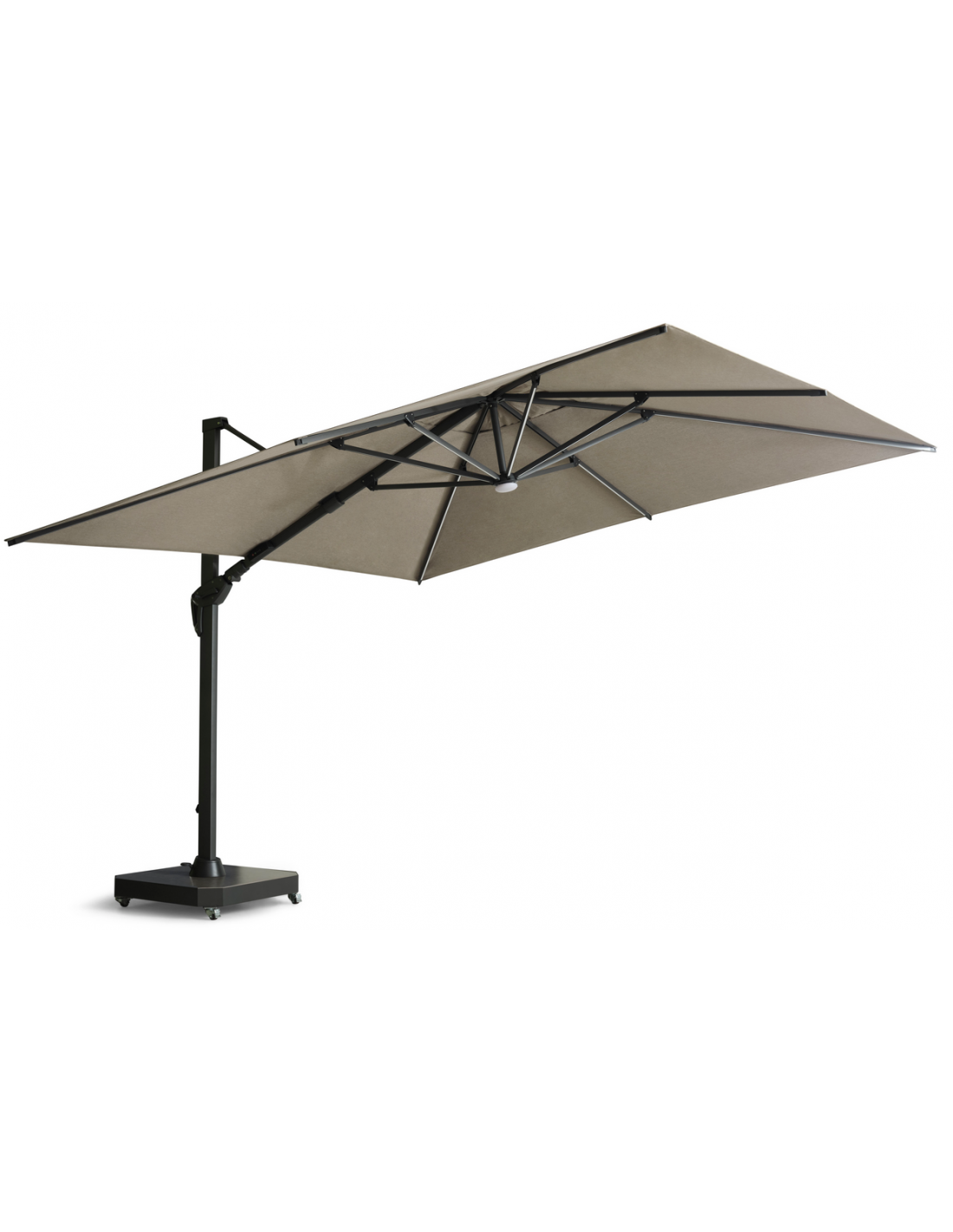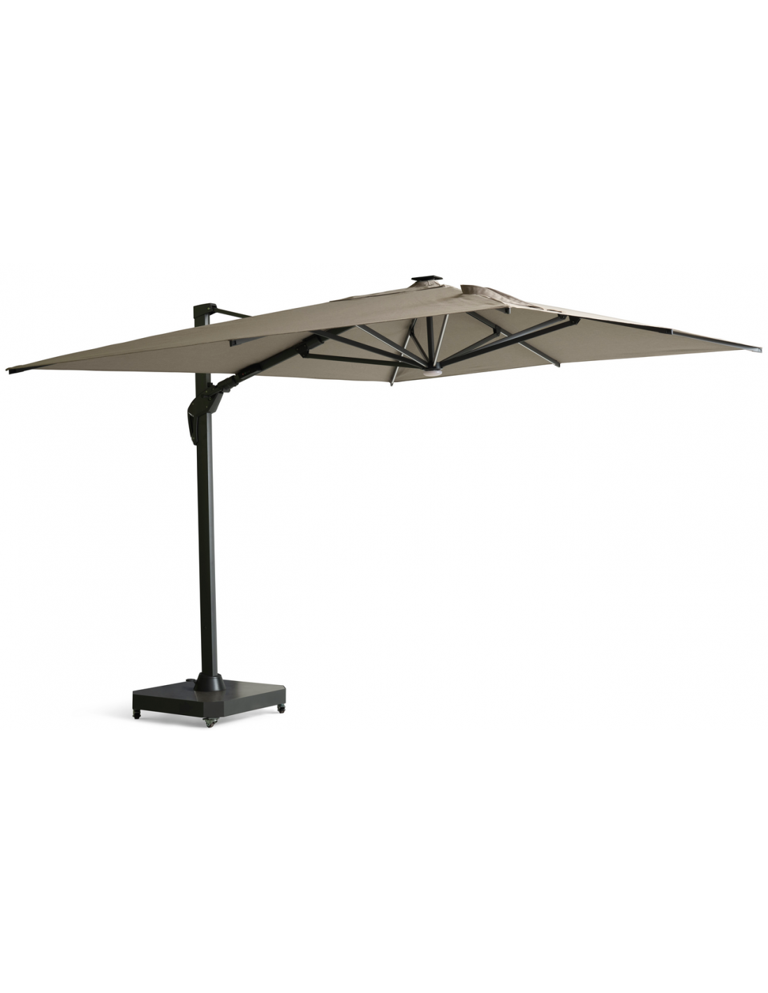 PALMA Parasol 3 x 4 meter i aluminium og olefin m/cover, lys og fod - Antracit/Beige