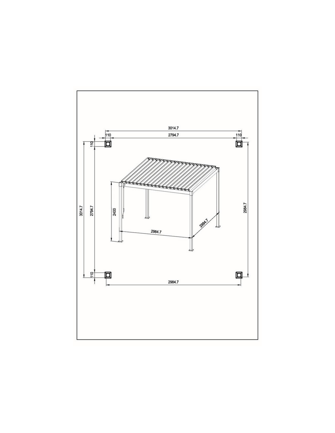 GARDA Pavillon med vipbart lameltag i aluminium 300 x 300 cm - Beige