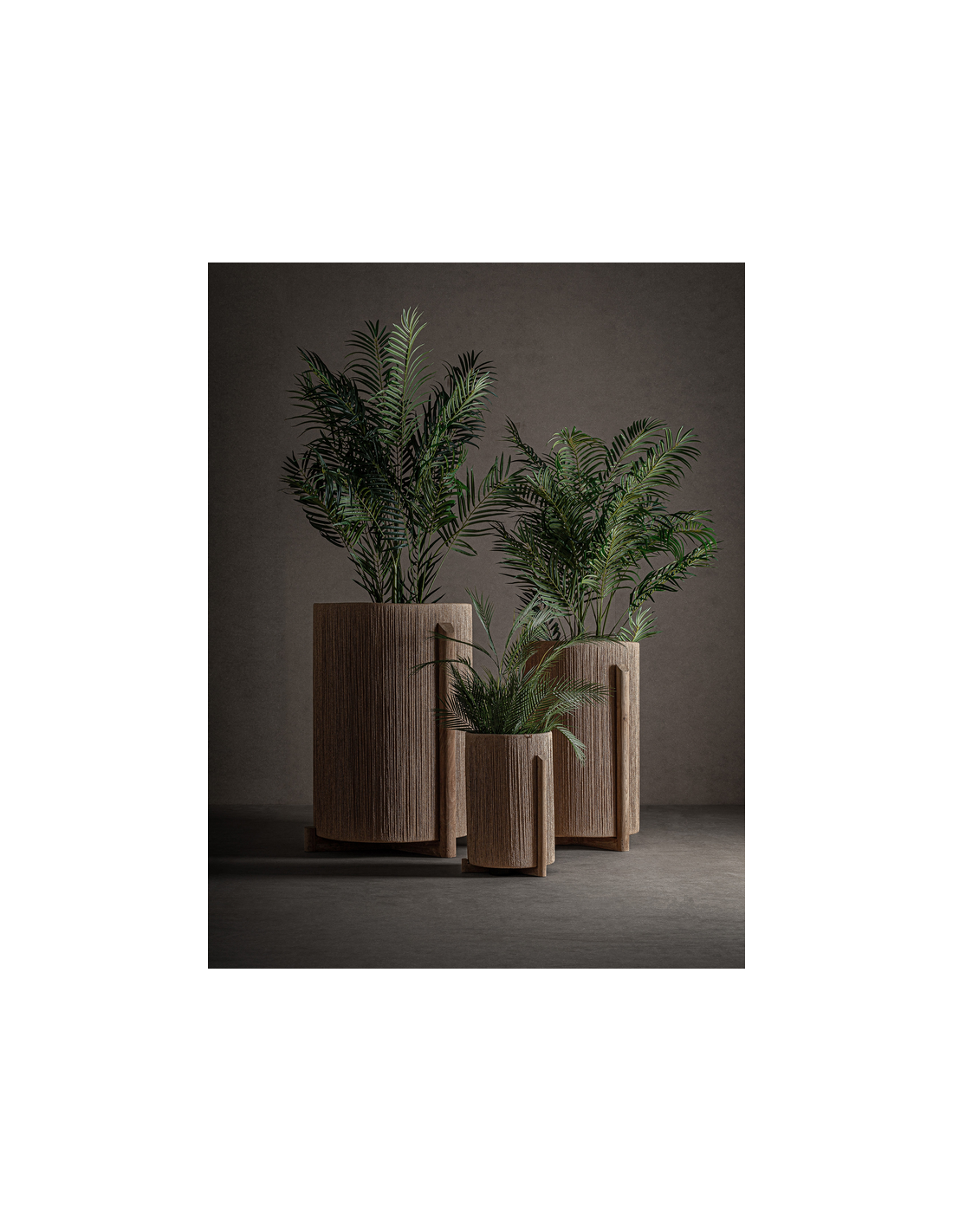 JACQUARD Plantepotte i mangotræ og raffia H65 cm - Rustik brun/Naturbrun