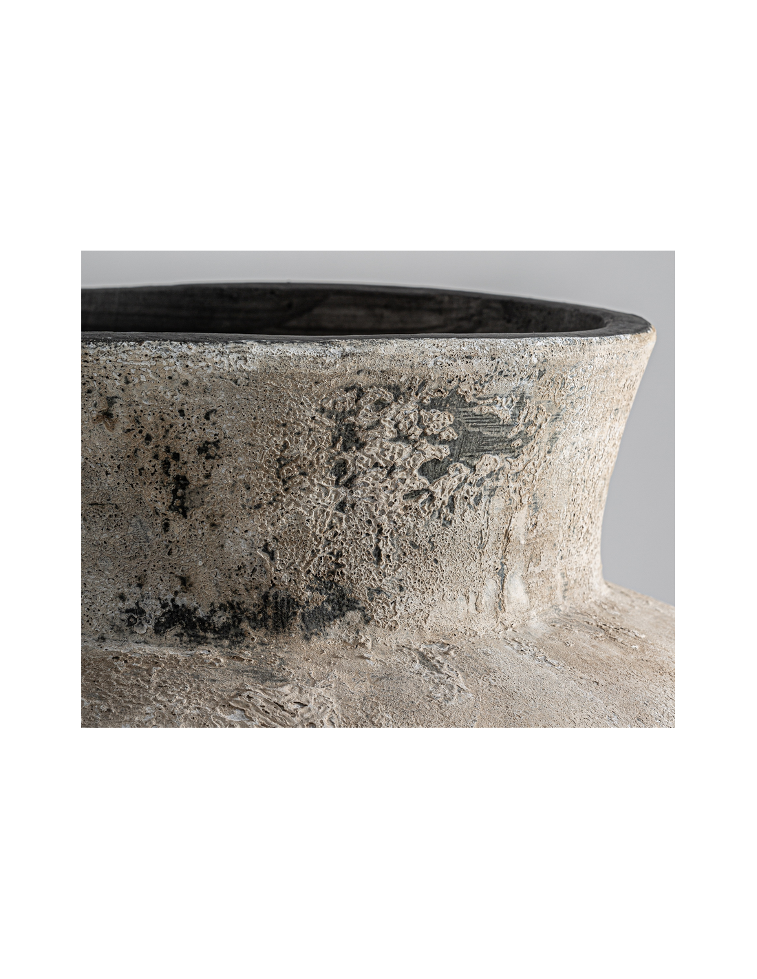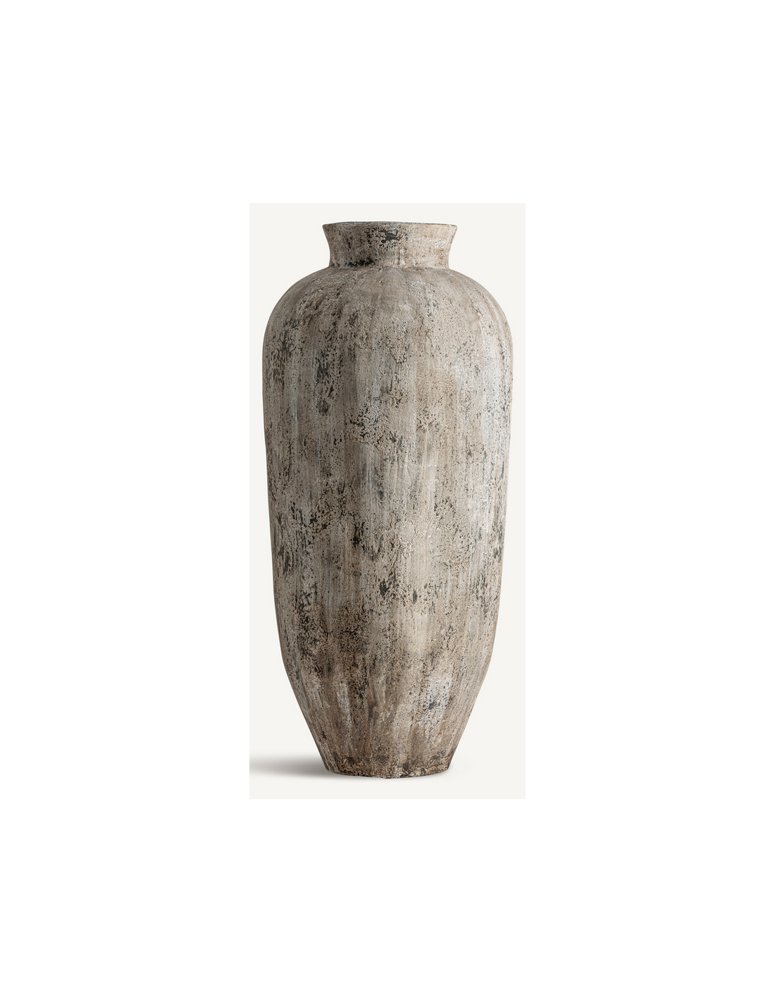 MILAENE Plantekrukke udført i et design, fremstillet af antik grå forstærket beton. Krukken måler 168 cm i højden og 73 cm i diameter. Potten tåler ikke anvendelse udendørs eller vand (intet afløb dertil).