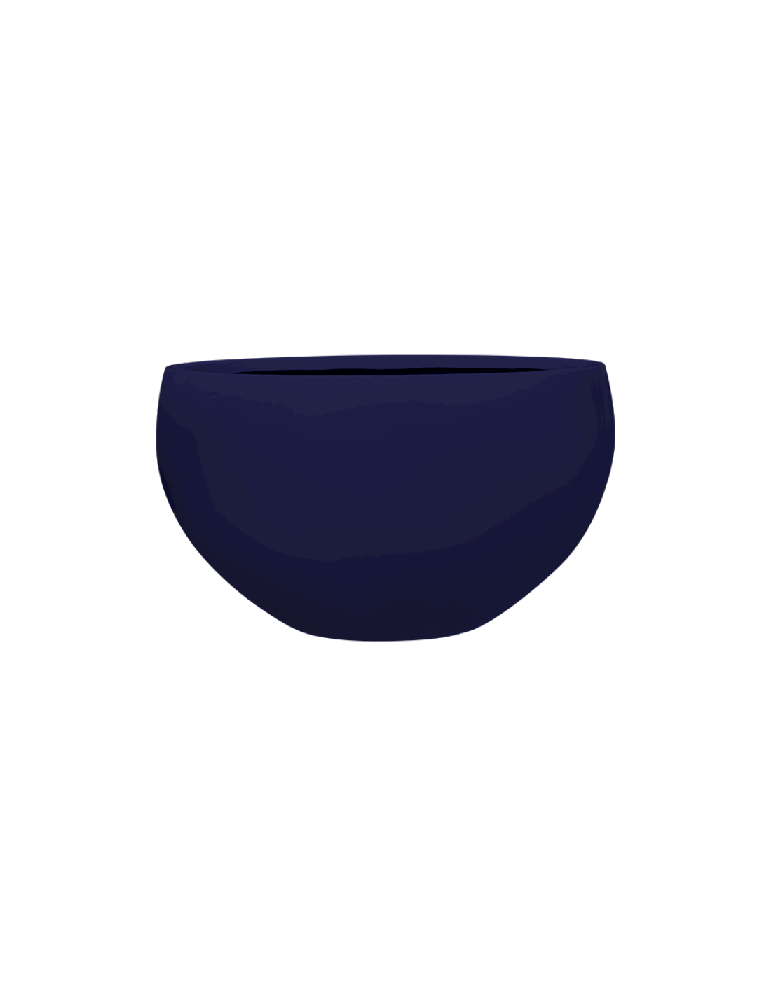 Kæmpe plantekrukke udført i et moderne design af frostsikker og UV resistent mat natteblå fibersten. Krukken måler 70 cm i højden og 120 cm i diameter med en åbning på 106 cm.