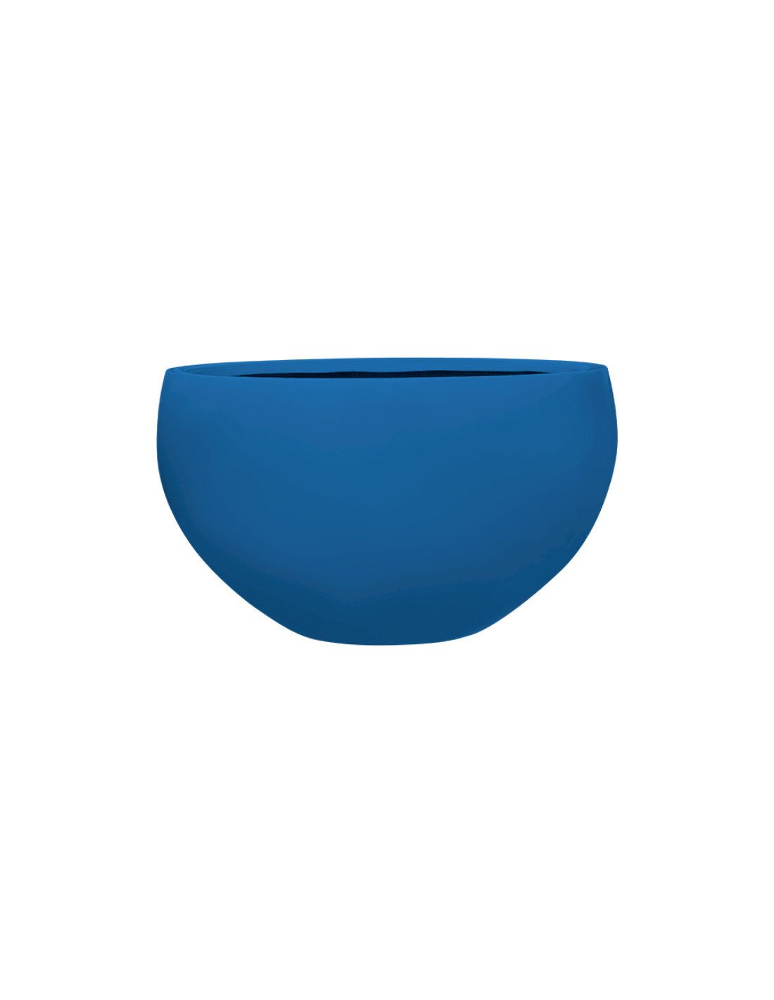 Kæmpe plantekrukke udført i et moderne design af frostsikker og UV resistent mat havblå fibersten. Krukken måler 70 cm i højden og 120 cm i diameter med en åbning på 106 cm.