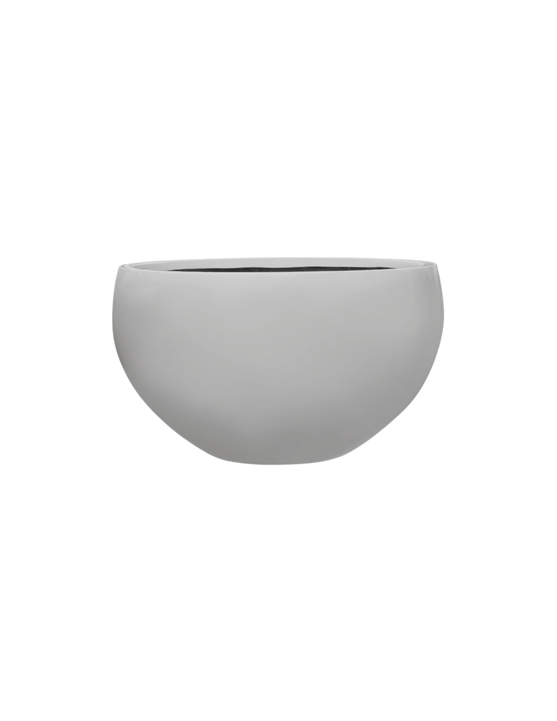 Kæmpe plantekrukke udført i et moderne design af frostsikker og UV resistent mat lysegrå fibersten. Krukken måler 70 cm i højden og 120 cm i diameter med en åbning på 106 cm.