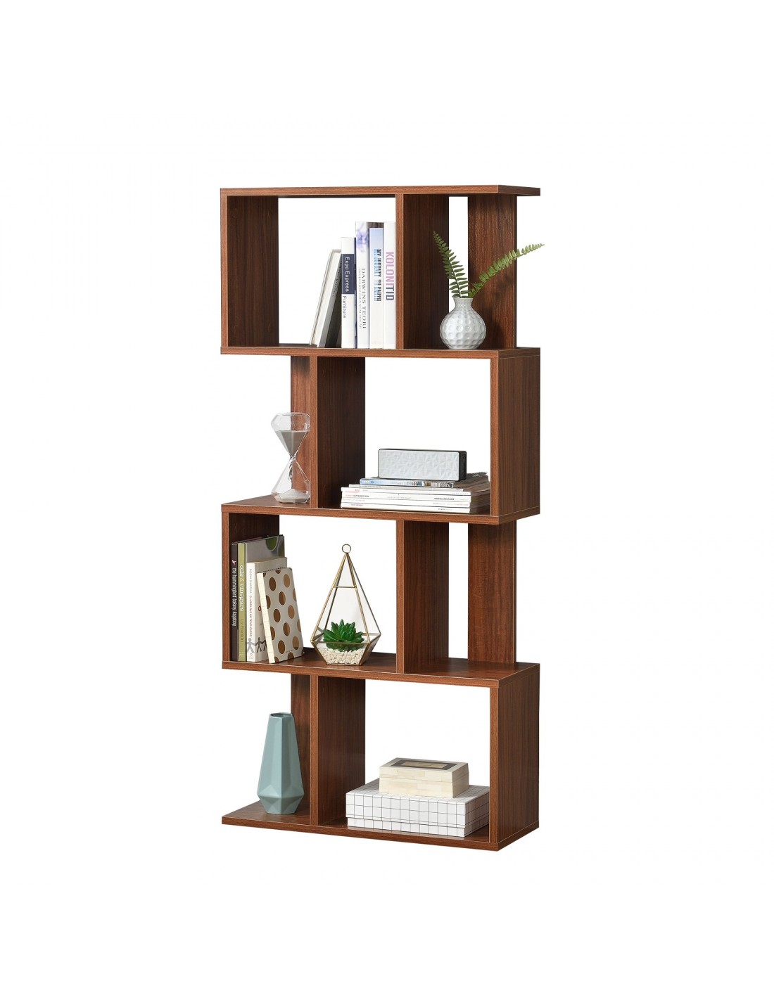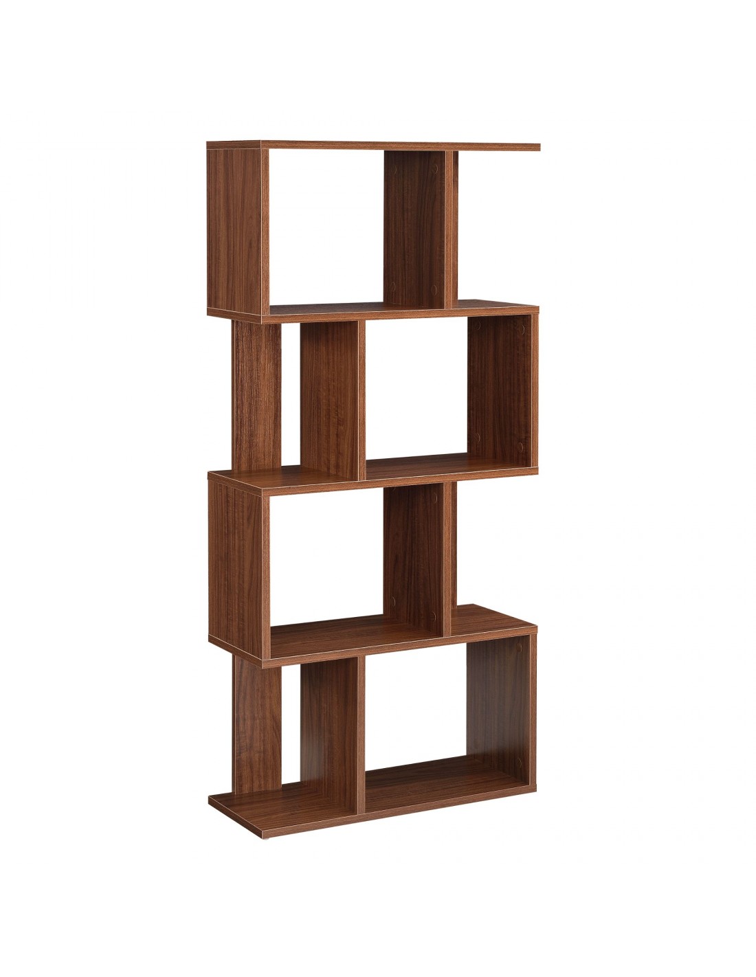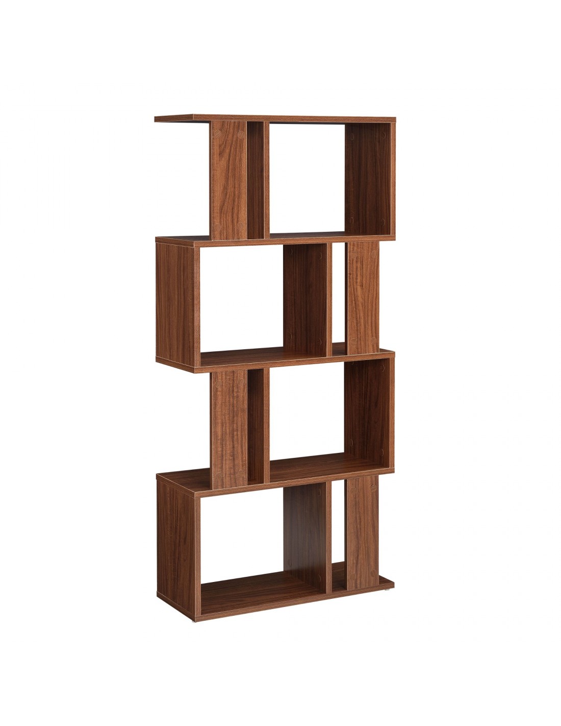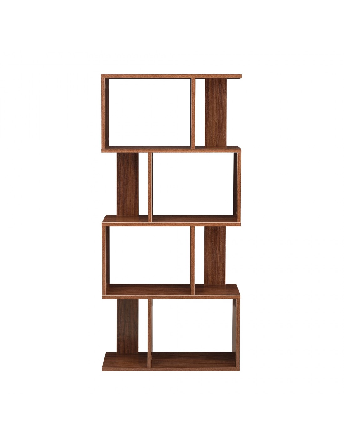 Bogreol udført i et design af valnøddebrun møbelplade, med varierede hylder. Reolen måler 130 cm i højden og 60 x 24 cm i bredde og dybde.