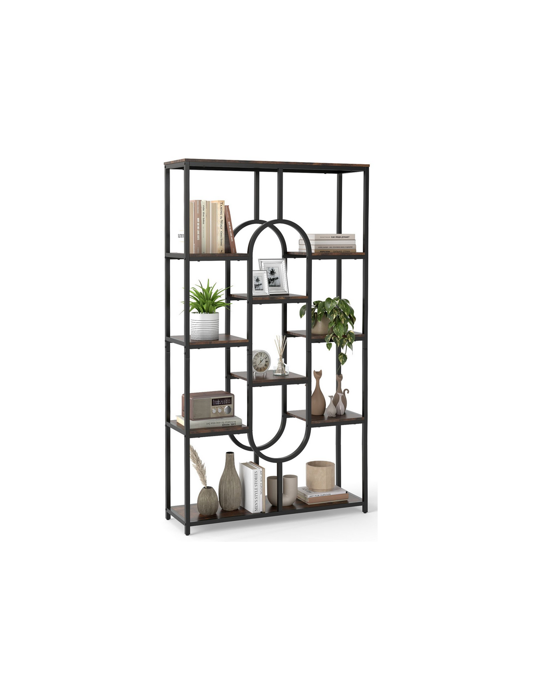 Bogreol i metal og møbelplade H175 x B95 x D30 cm - Sort/Brun