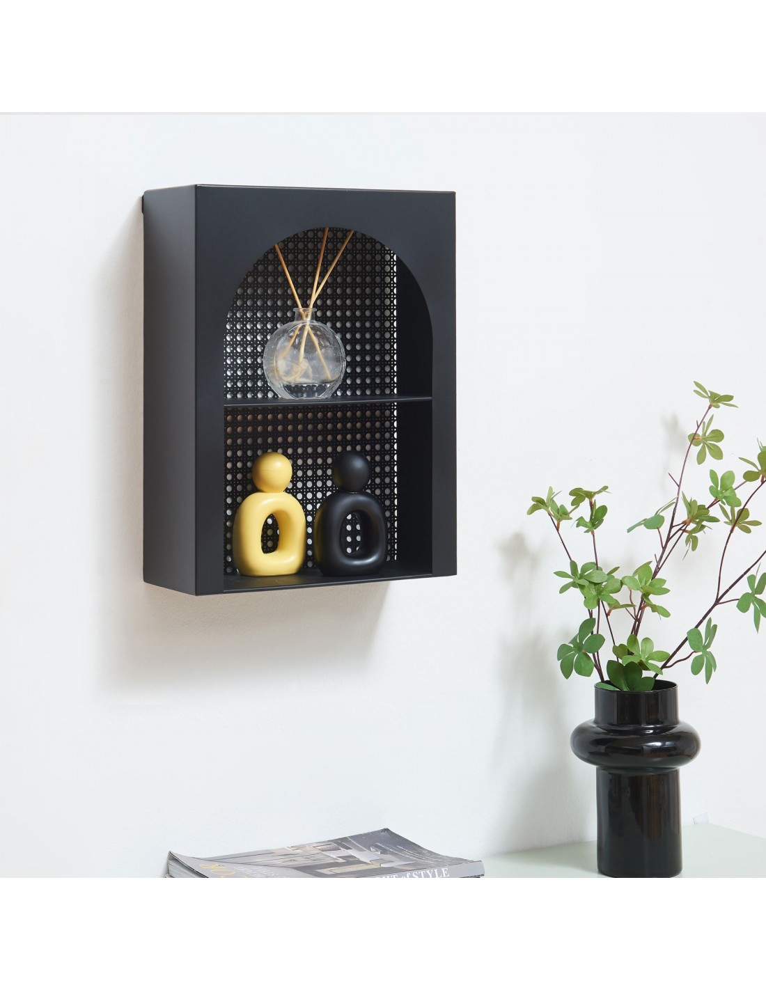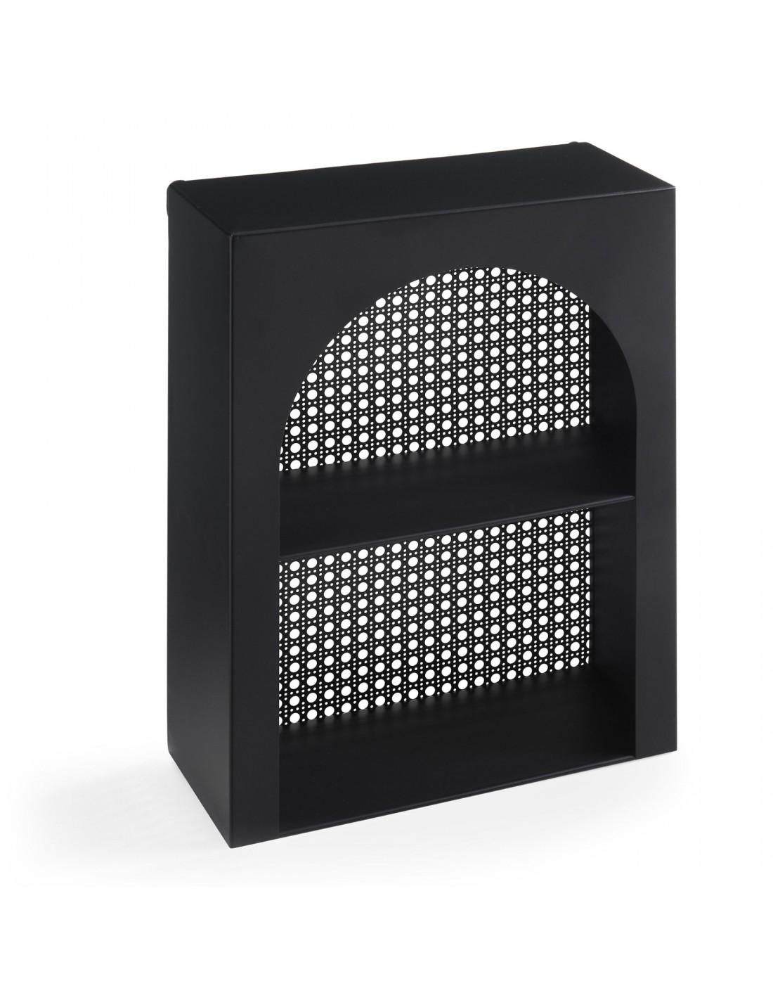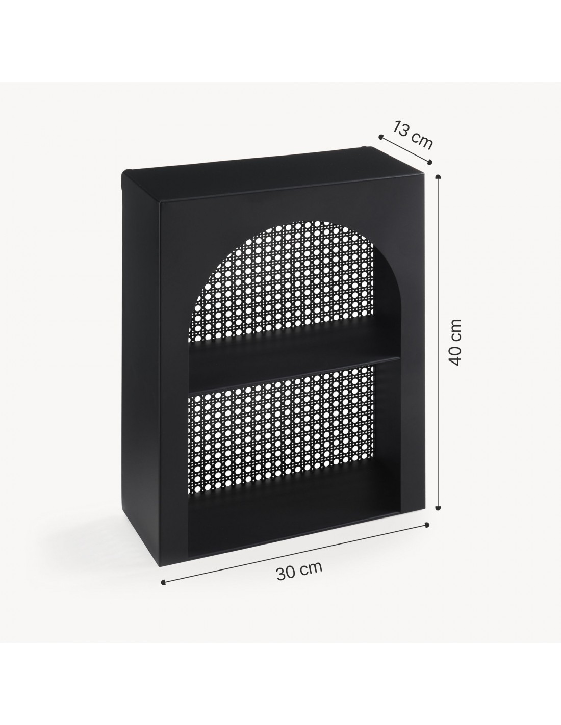 Hylde udført i et moderne design af sortlakeret metal. Hylden indeholder 2 hylderum og måler 40 cm i højden og 30 x 13 cm i bredde og dybde.