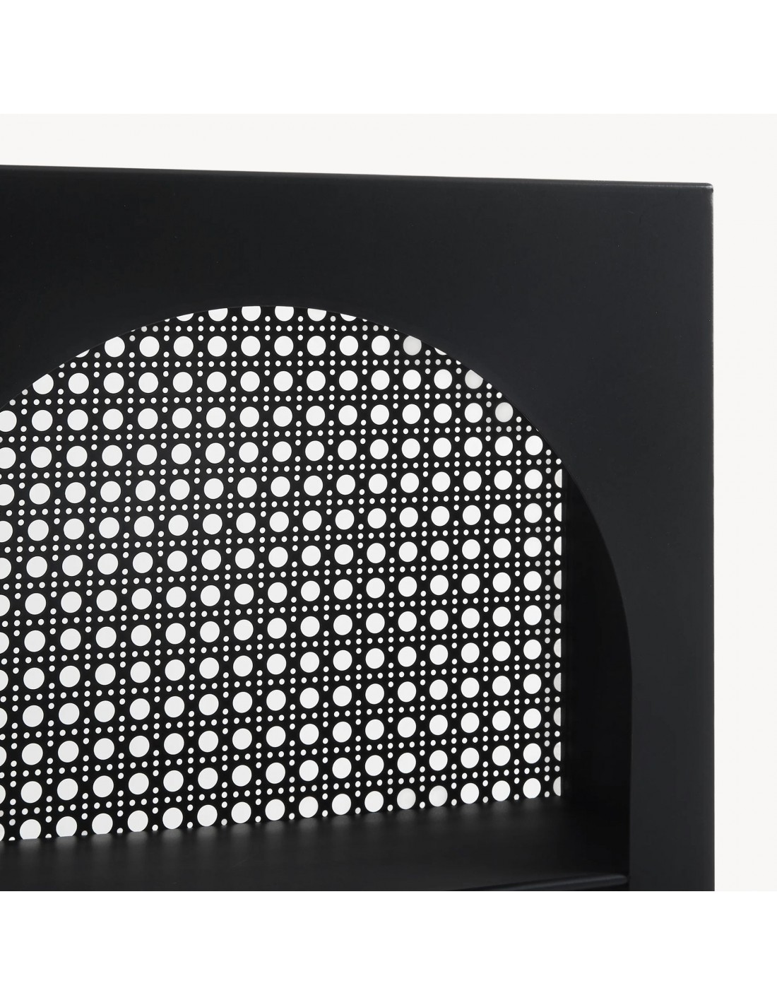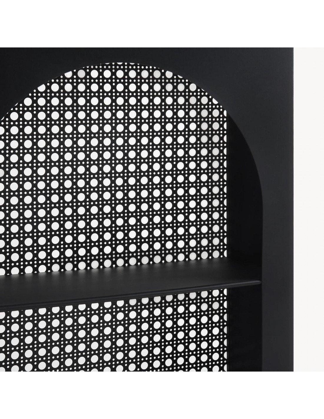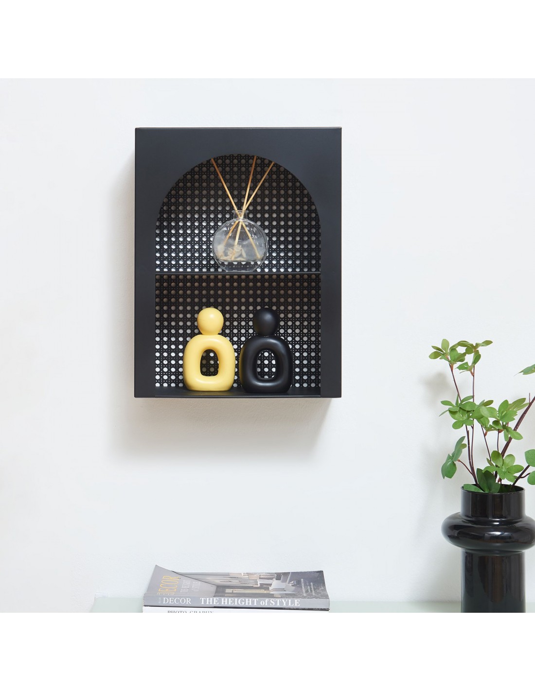 Hylde udført i et moderne design af sortlakeret metal. Hylden indeholder 2 hylderum og måler 40 cm i højden og 30 x 13 cm i bredde og dybde.