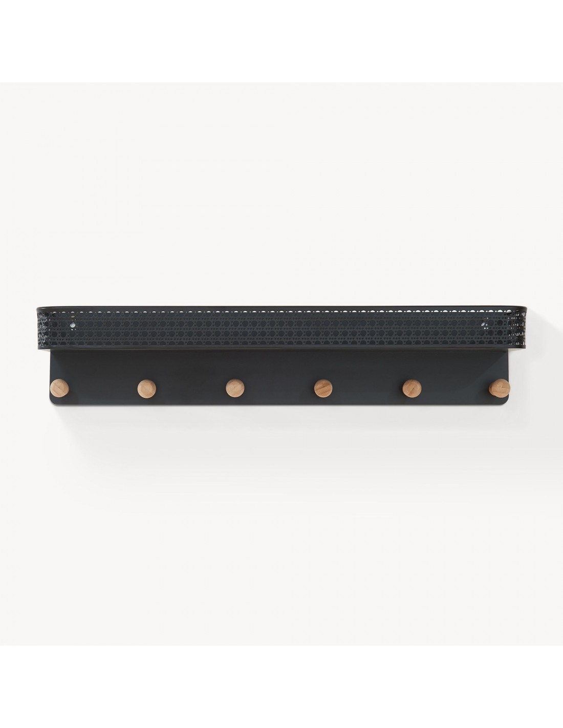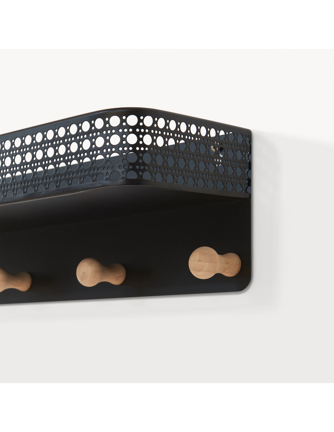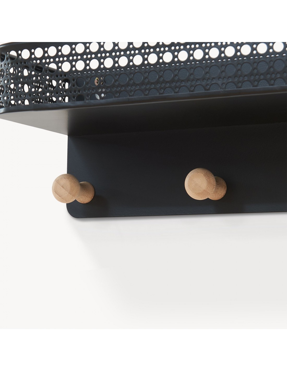 Hylde med knagerække i metal og bambus H12 x B60 x D13,5 cm - Sort/Natur