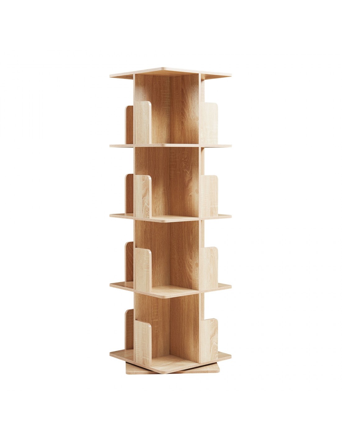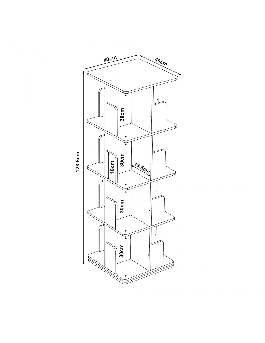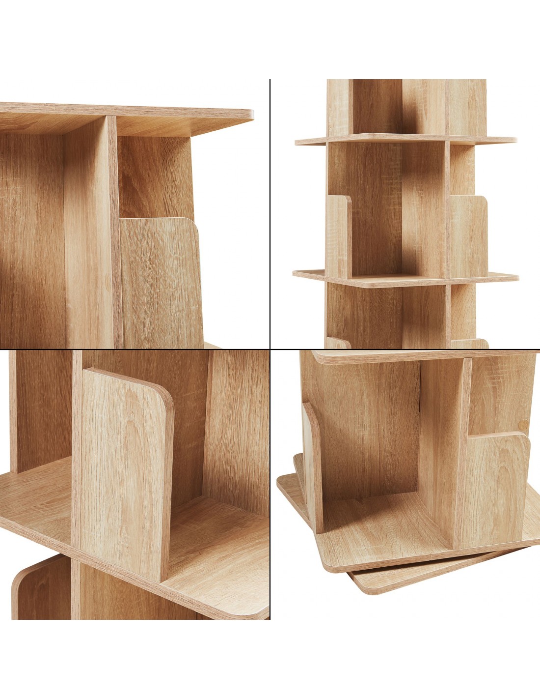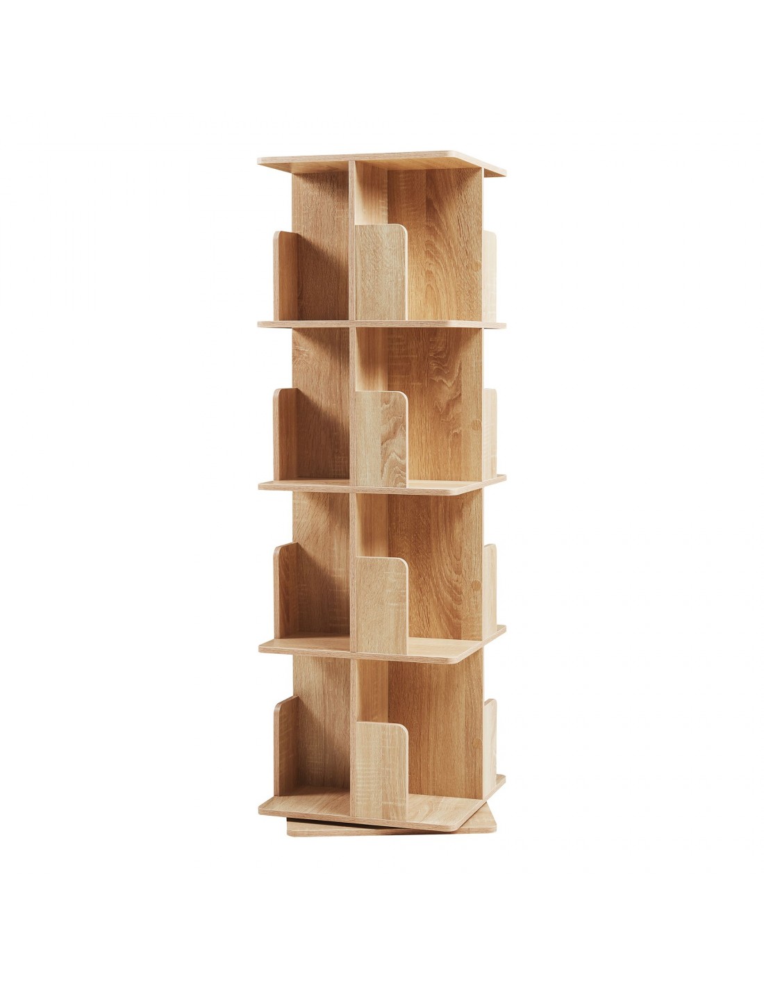 Bogreol på drejefod udført i et design af egetræsfarvet MDF. Reolen måler 128,5 cm i højden og 40 x 40 cm i bredde og dybde.