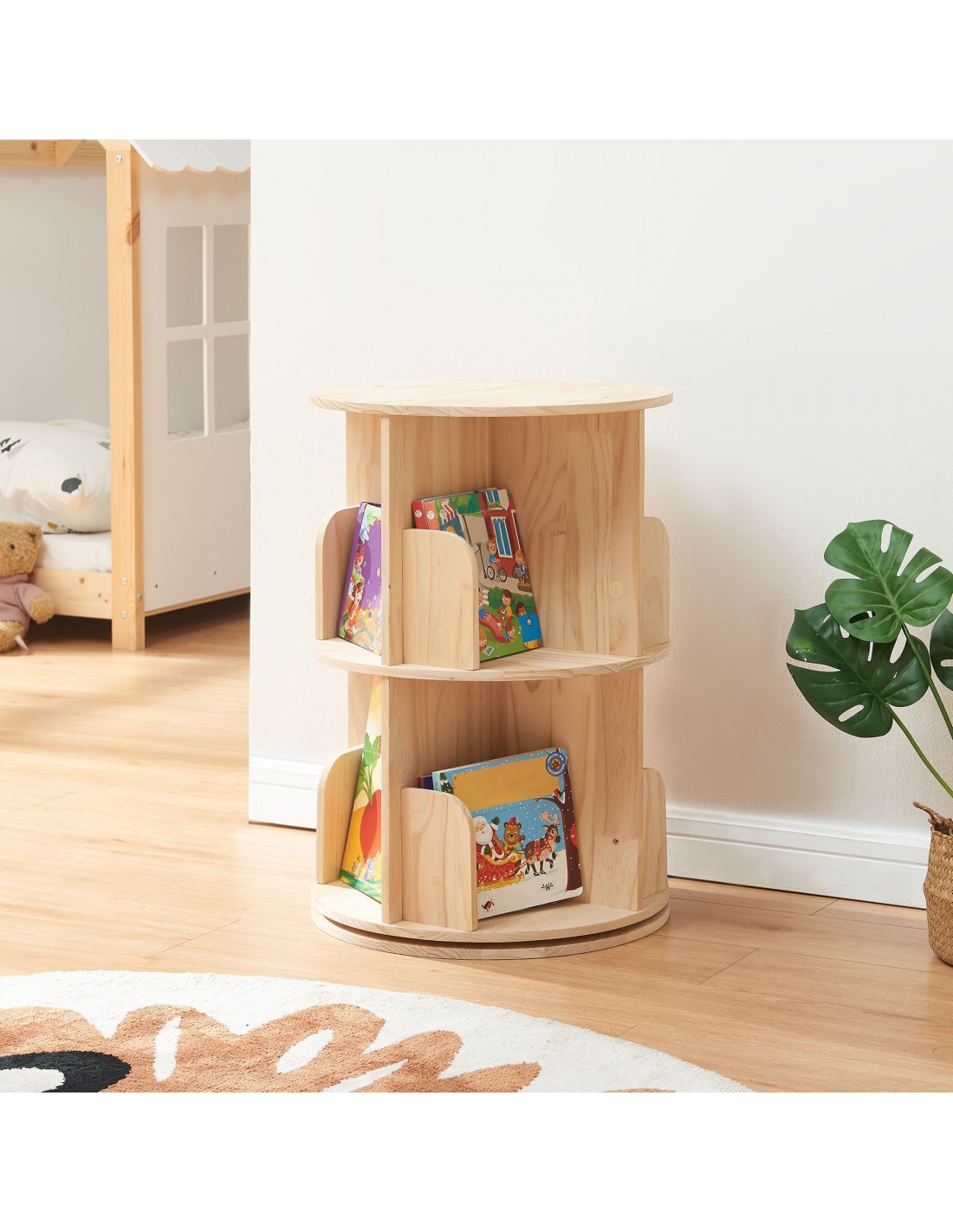 Rund bogreol på drejefod til børneværelset i fyrretræ H65 x Ø44 cm - Natur