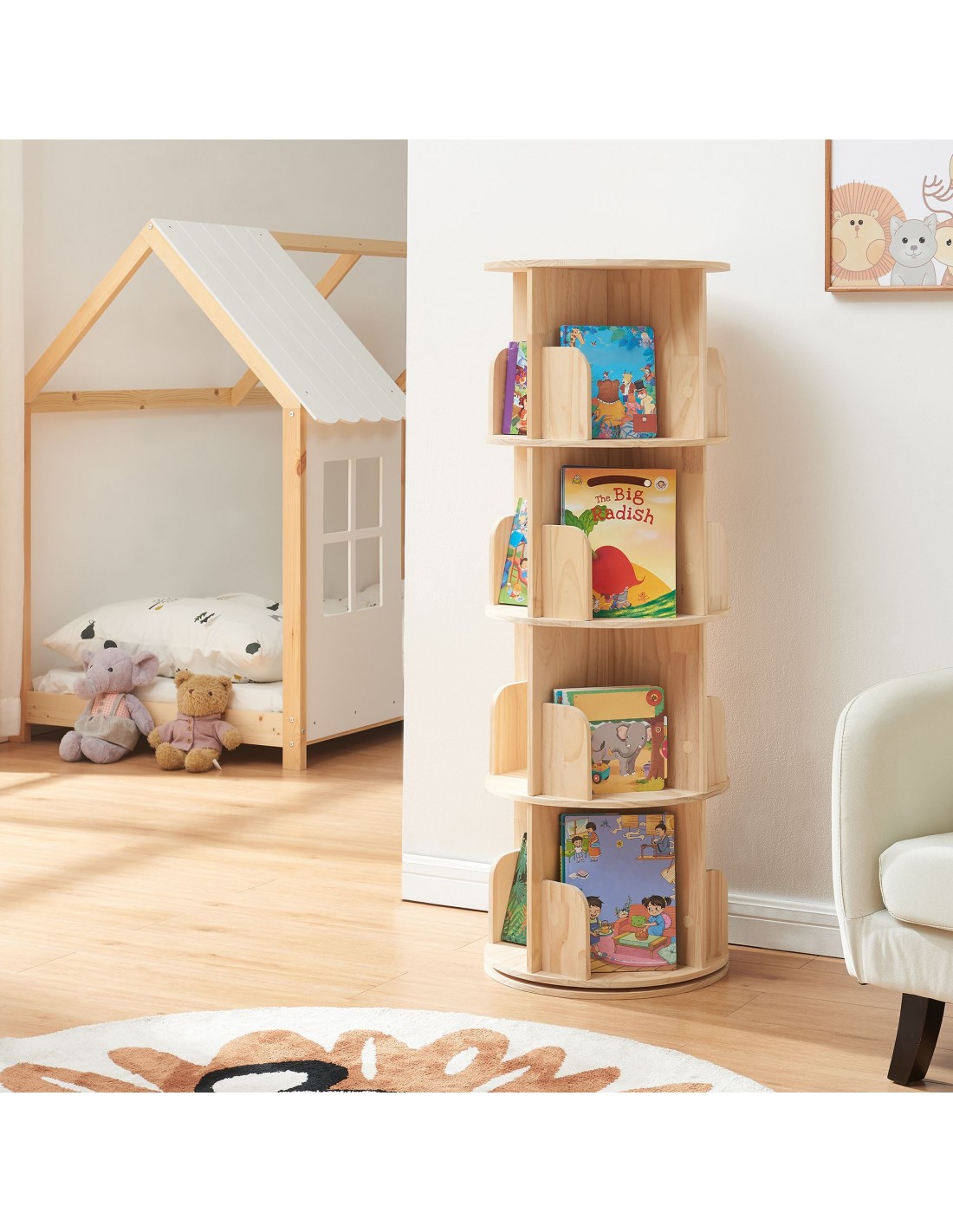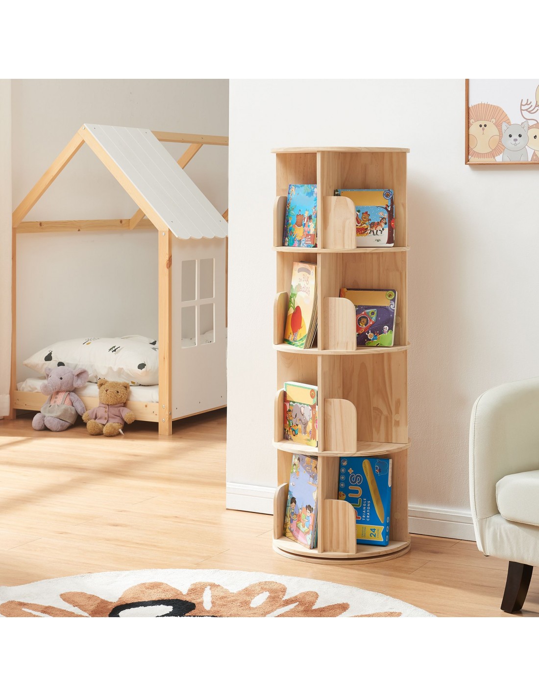 Rund bogreol på drejefod til børneværelset i fyrretræ H125 x Ø44 cm - Natur