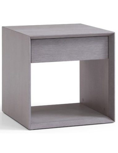 MAZA Sengebord udført i et moderne design, fremstillet af washed grey egetræsfinér. Sengebordet måler 55 cm i højden og 55 x 55 cm i bredde og dybde og har en skuffe.