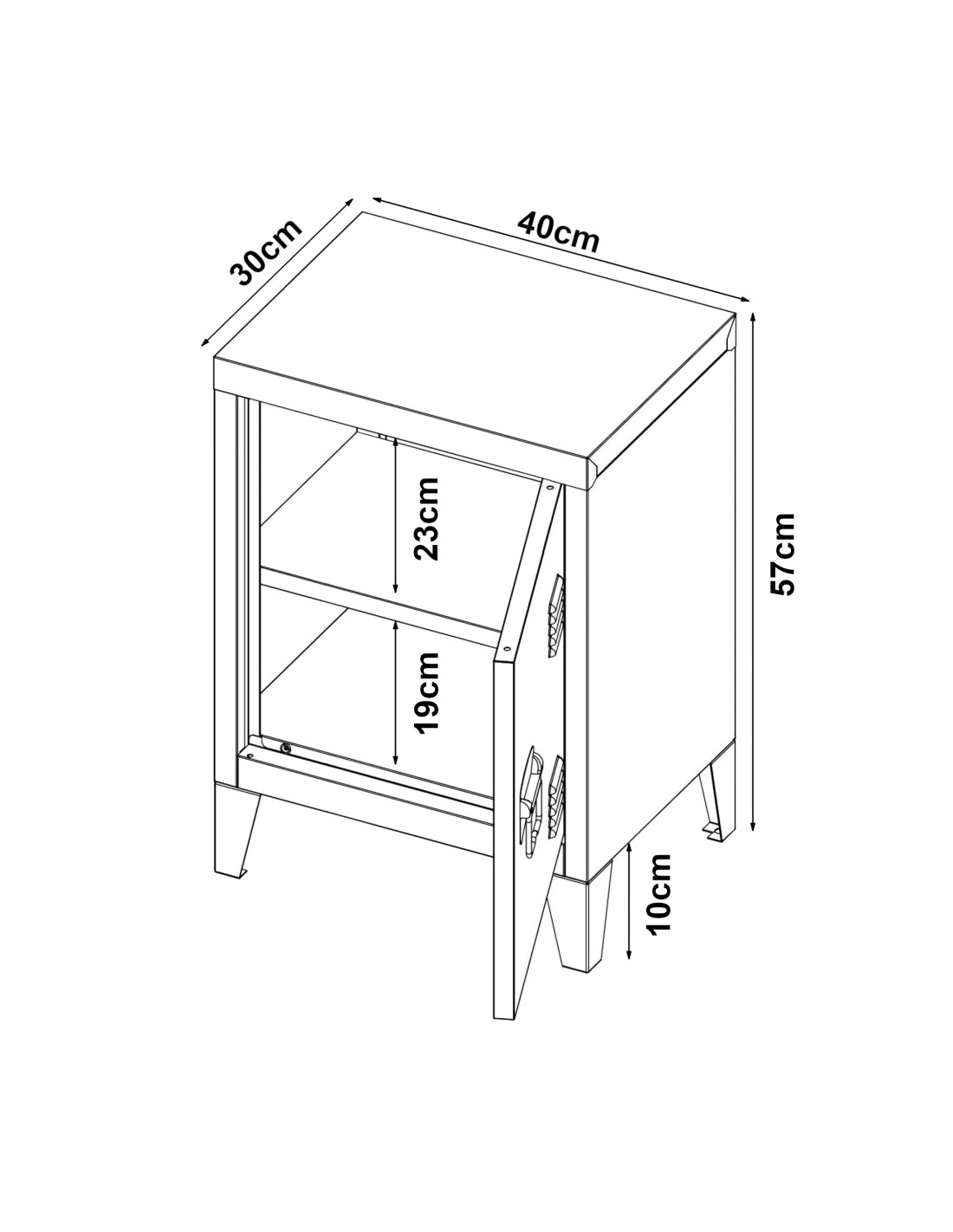 Sæt med 2 x sengeborde i et design af hvidlakeret stål. Sengebordene måler 57 cm i højden og 40 x 30 cm i bredde og dybde og inderholder 2 hylderum.