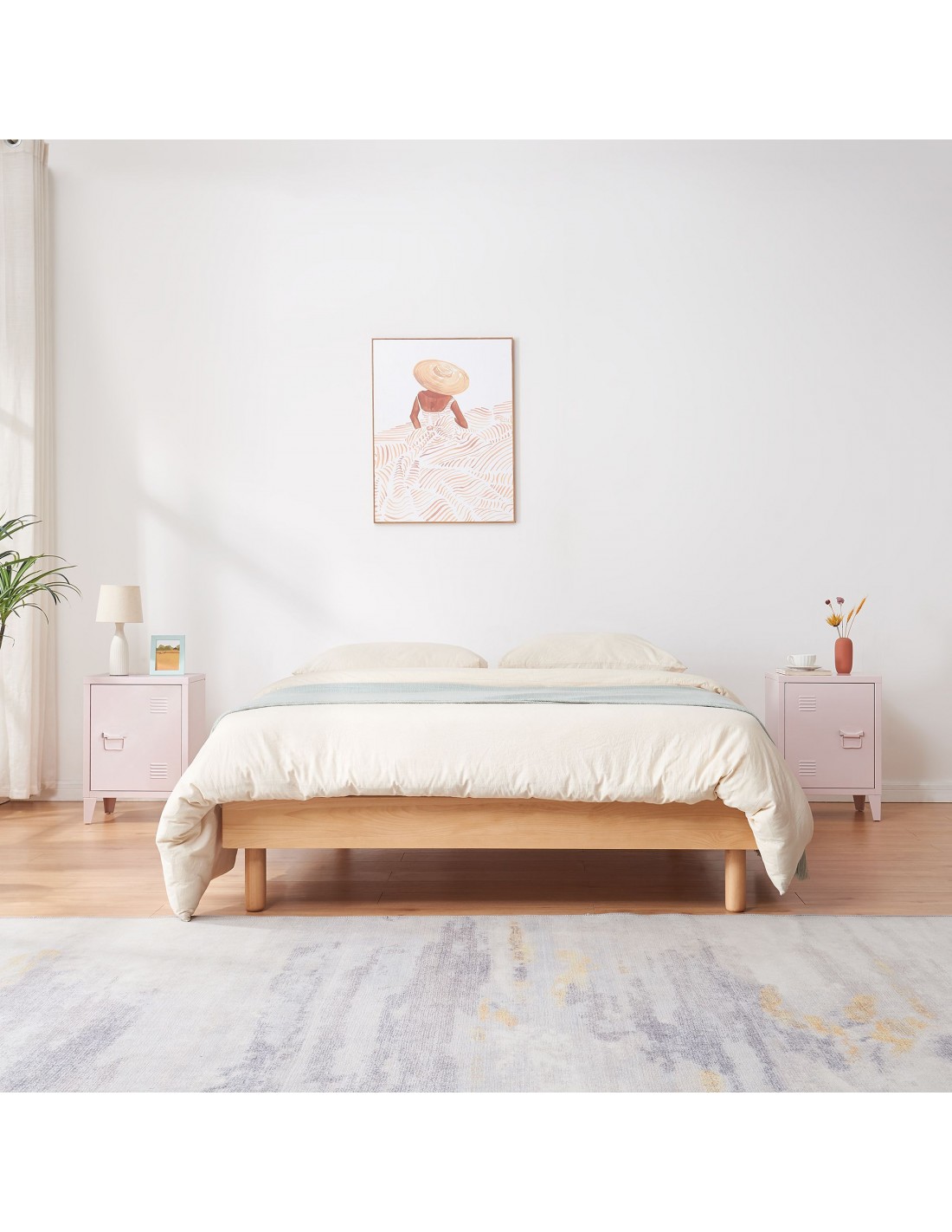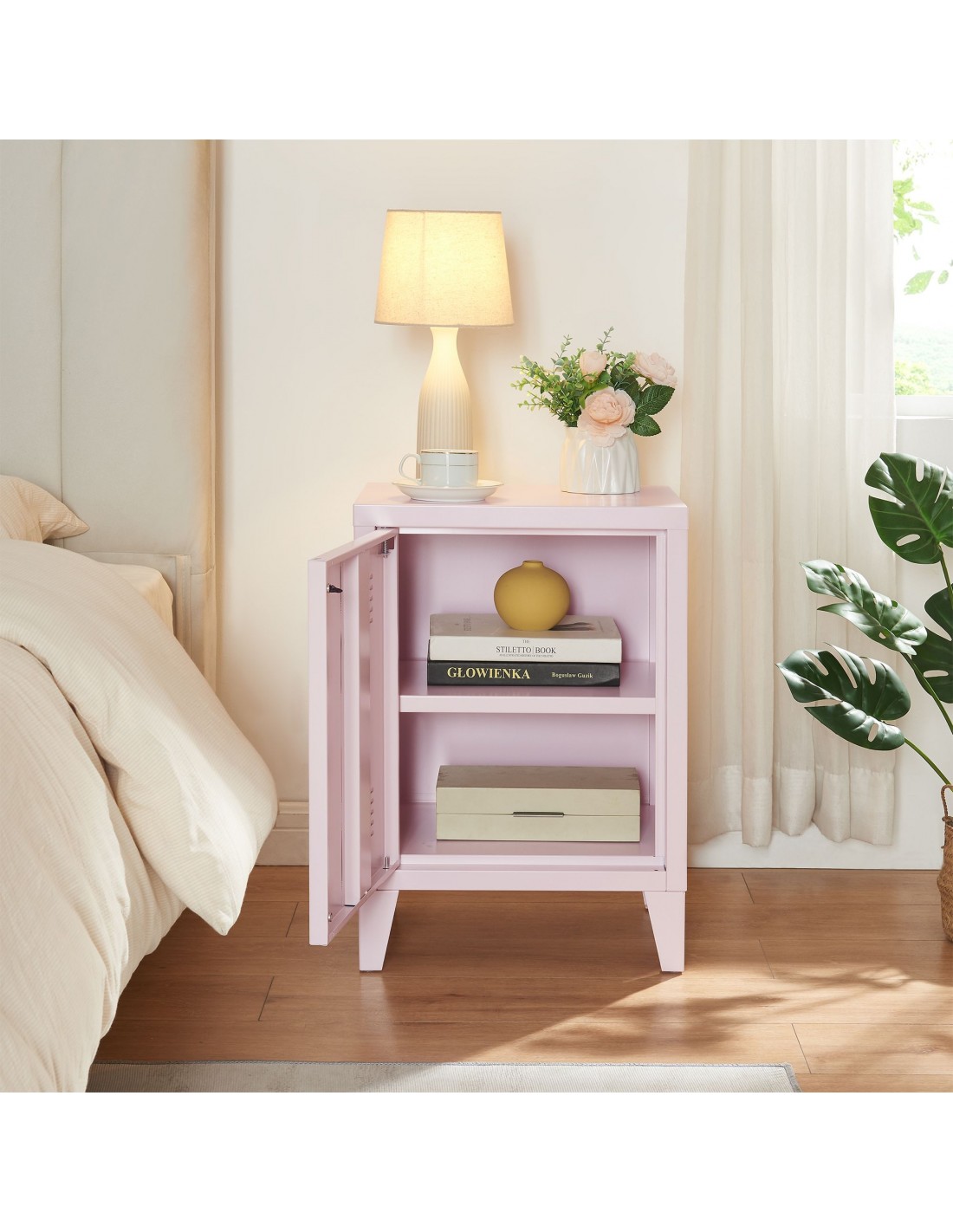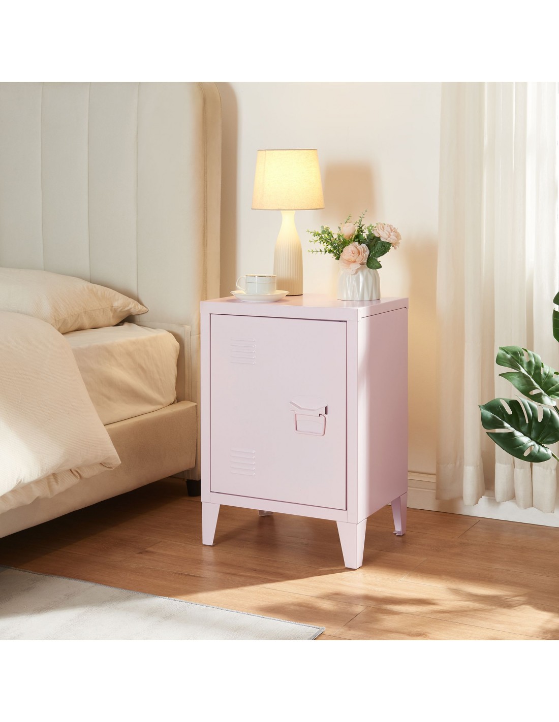 Sæt med 2 x sengeborde i stål H57 x B40 x D30 cm - Rosa