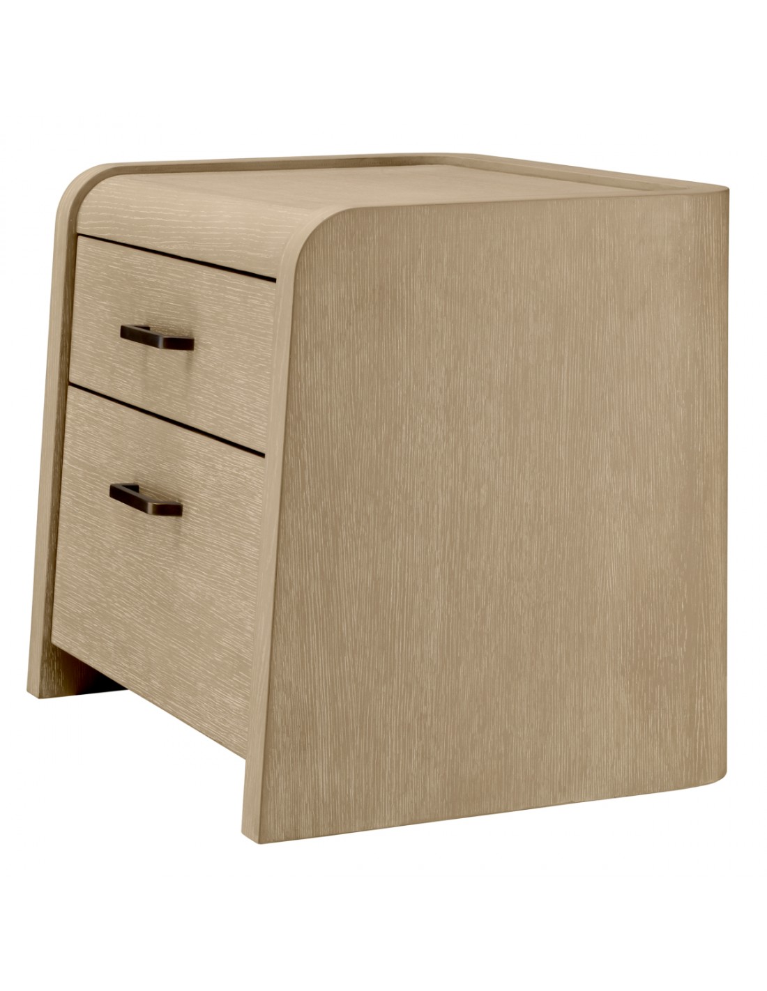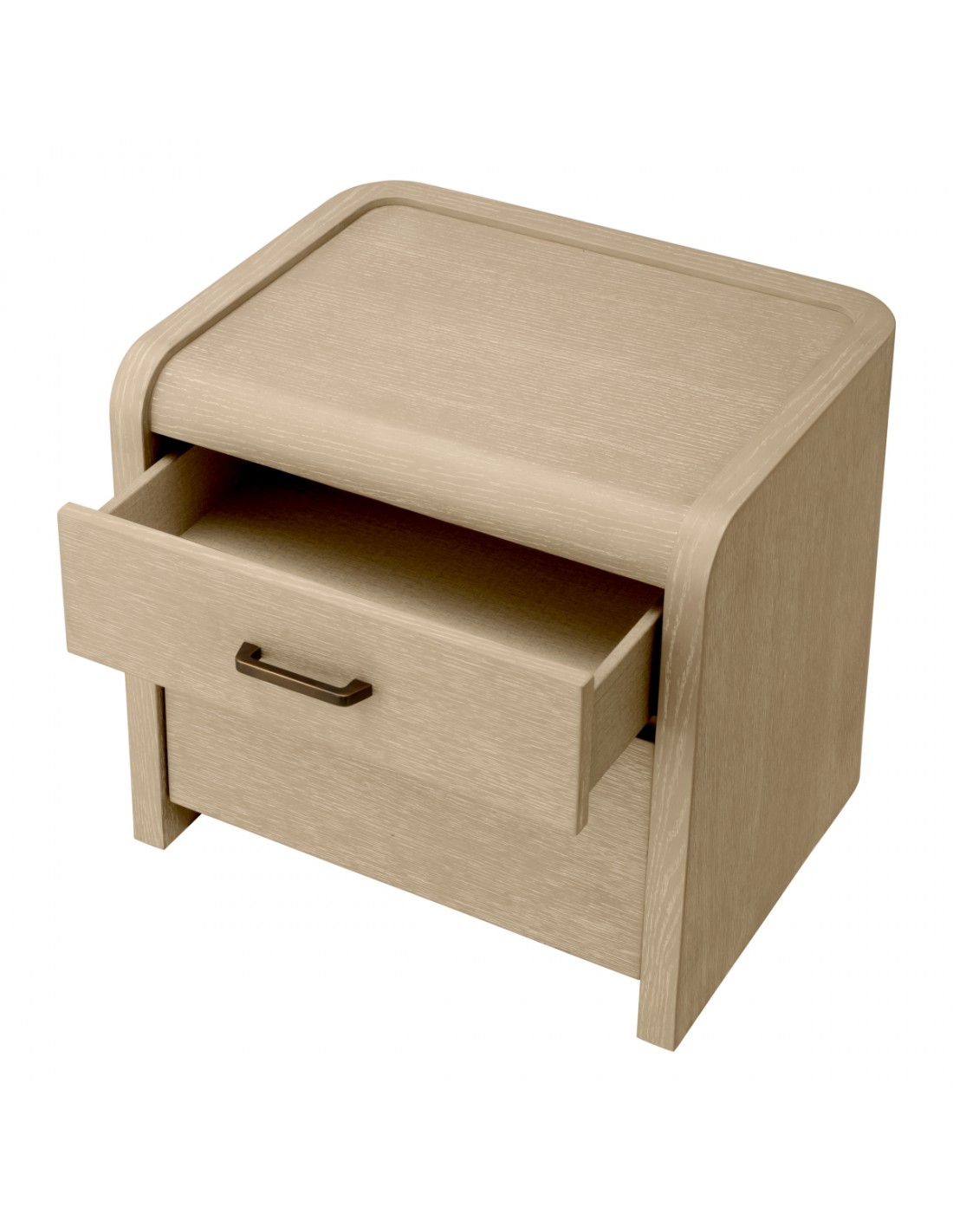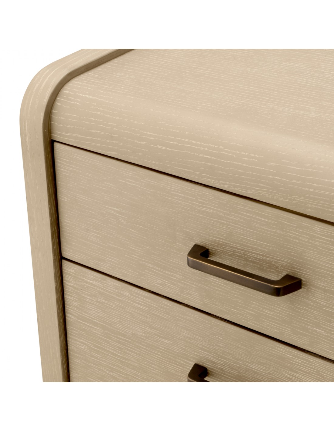 Eichholtz Joane sengebord udført i et luksuriøst og moderne design, fremstillet af antik bronzelakeret stål og vasket egetræsfinér med 2 skuffer. Sengebordet måler 53,5 cm i højden og 60 x 49 cm i bredde og dybde.