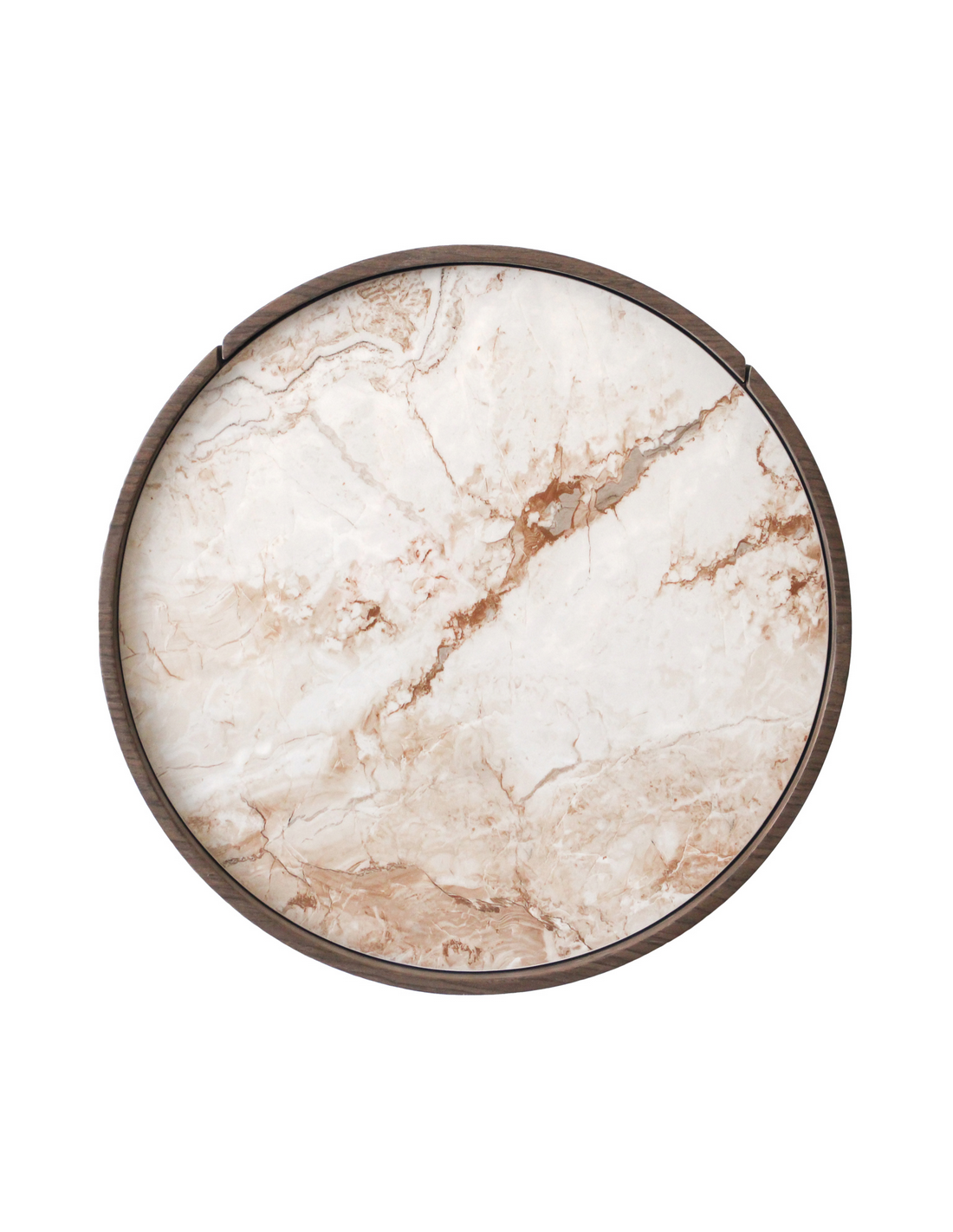 ELLERY Sengebord i egetræsfinér, MDF og keramik H65 x Ø50 cm - Brun/Beige marmoriseret
