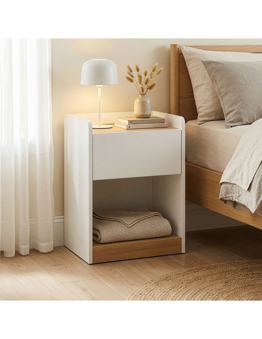 Sengebord i MDF H55 x B42 x D37 cm - Eg/Hvid
