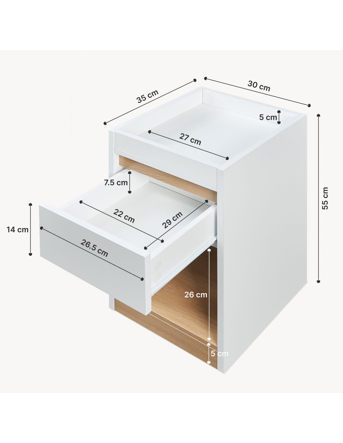 Sengebord i MDF H55 x B30 x D35 cm - Eg/Hvid