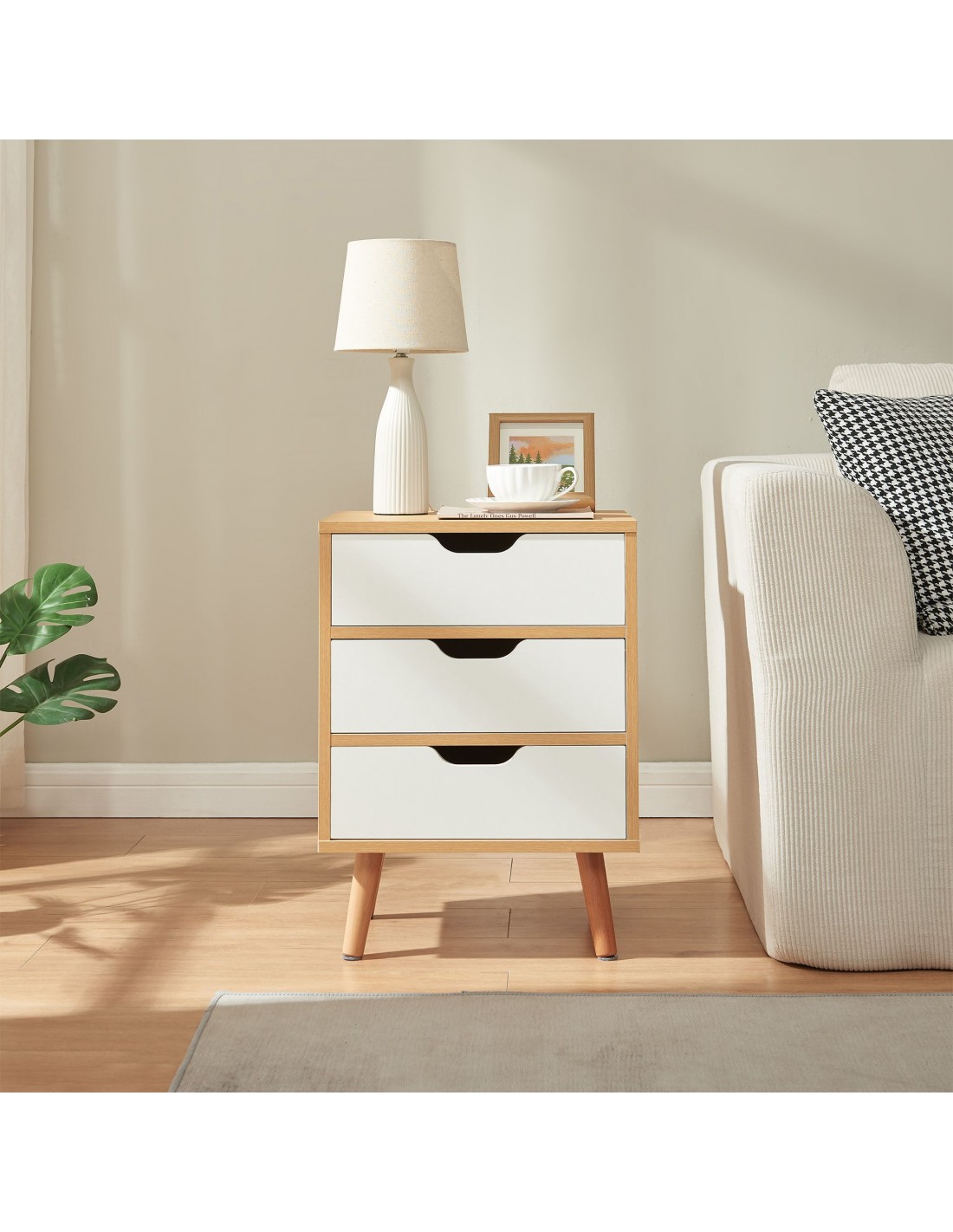 Sengebord i fyrretræ og MDF H55 x B40 x D30 cm - Natur/Hvid