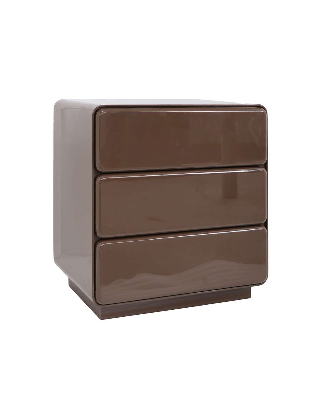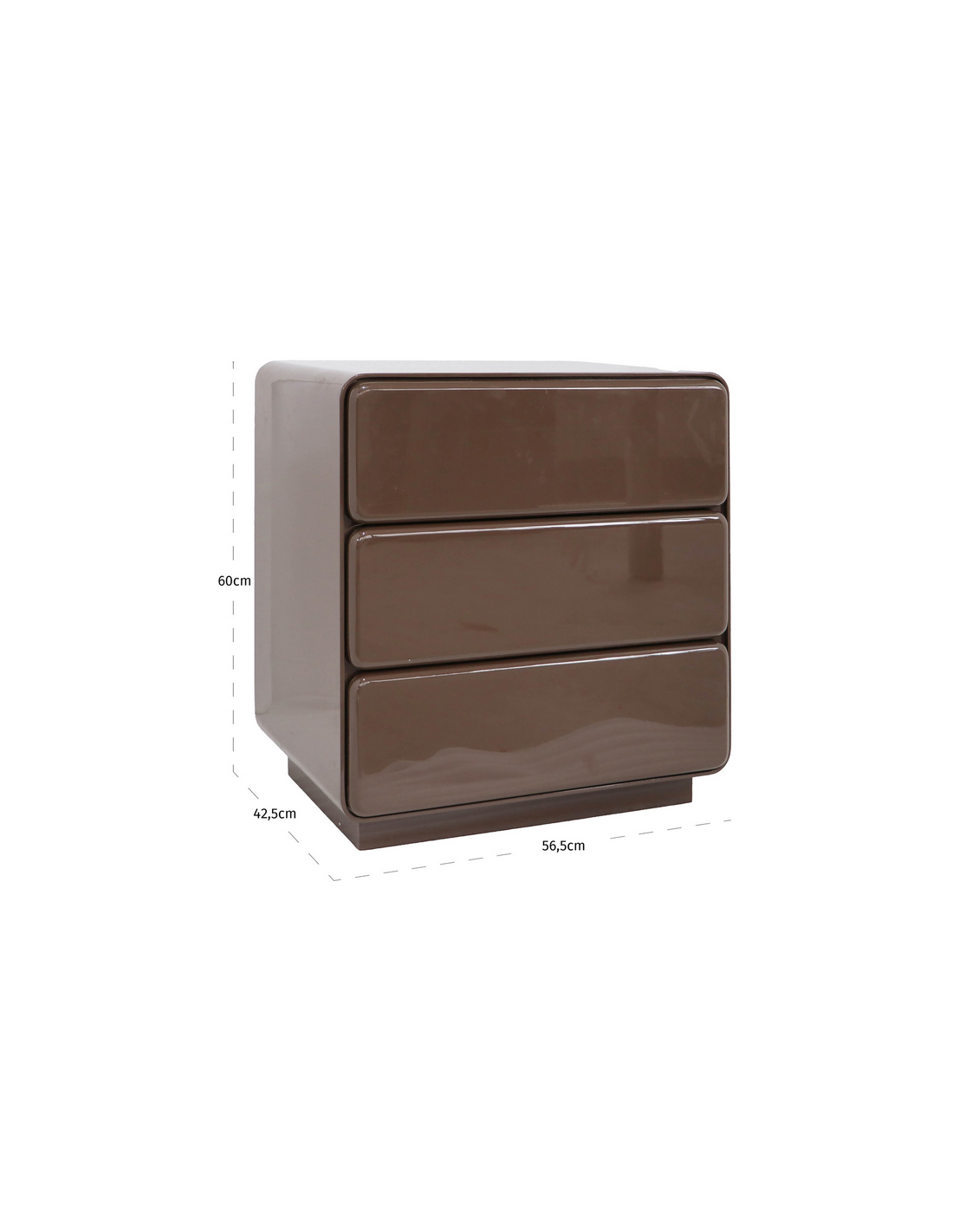 DEMY Sengebord udført i et retropræget design, fra hollandske Richmond Interiors. Sengebordet er fremstillet af blank kastanjebrunlakeret MDF og kommer med 3 skuffer. Sengebordet måler 60 cm i højden og 56,5 x 42,5 cm i bredde og dybde.