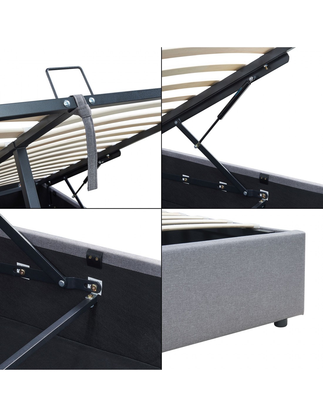 NOLA Sengeramme med opbevaring i polyester 180 x 200 cm - Grå