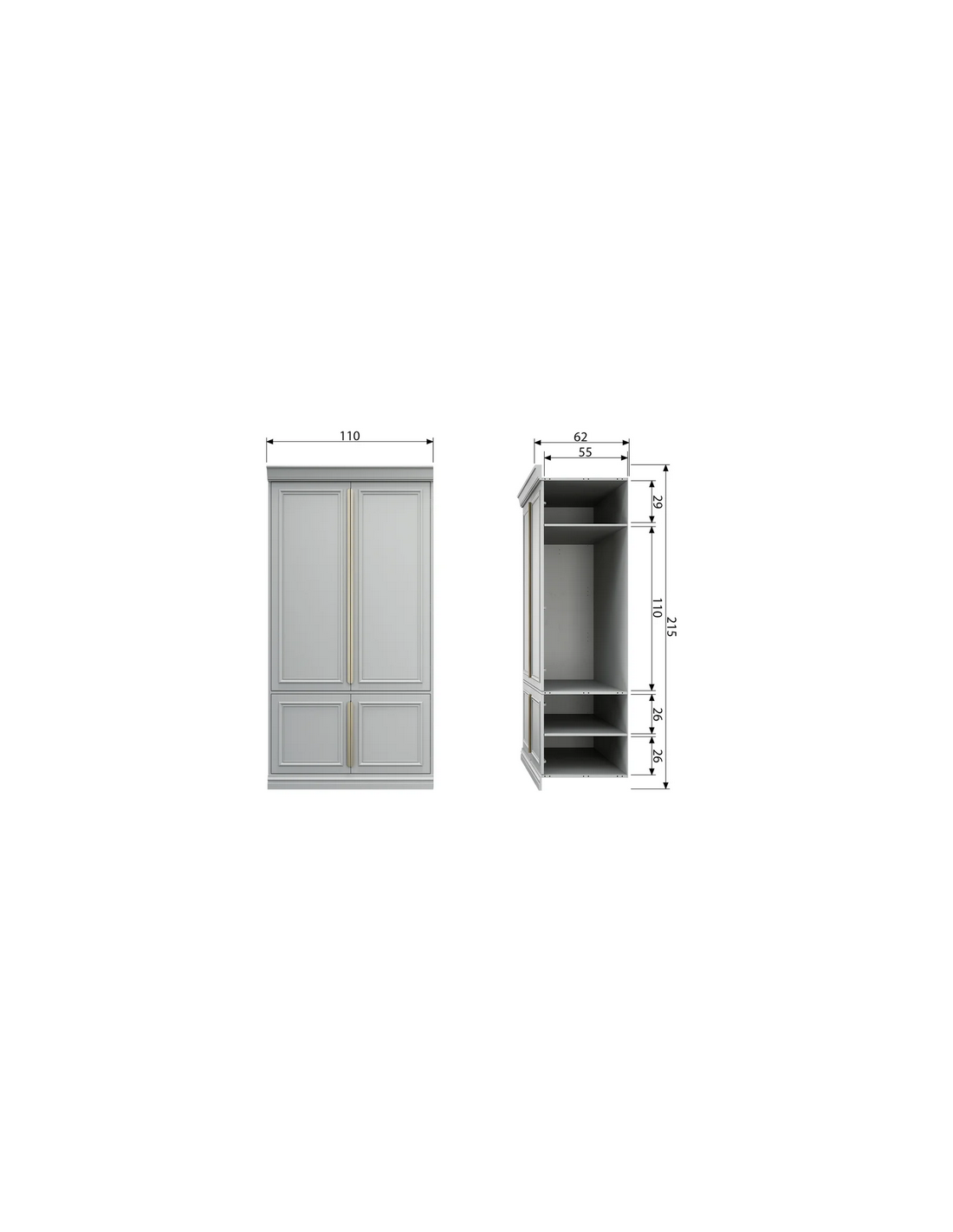 ORGANIZE Klædeskab i fyrretræ H215 x B110 x D62 cm - Rustik støvgrå