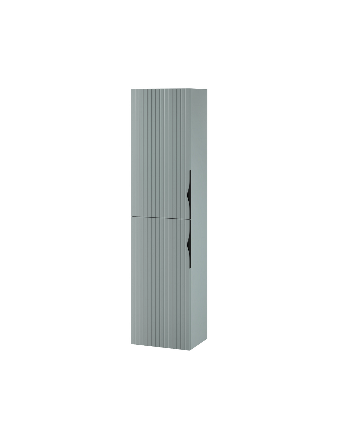 TIRSO Højskab til væg på badeværelset, fremstillet i et moderne design af salvie grøn MDF. Skabet kommer med 2 skabslåger, som hvert indeholder 1 justerbar hylde. Skabet måler 160 cm i højden og 40 x 30 cm i bredde og dybde. Skabslågerne kan spejlvendes og til skabet medfølger greb i både sort og kromlakeret metal, således der kan vælges efter ønske.