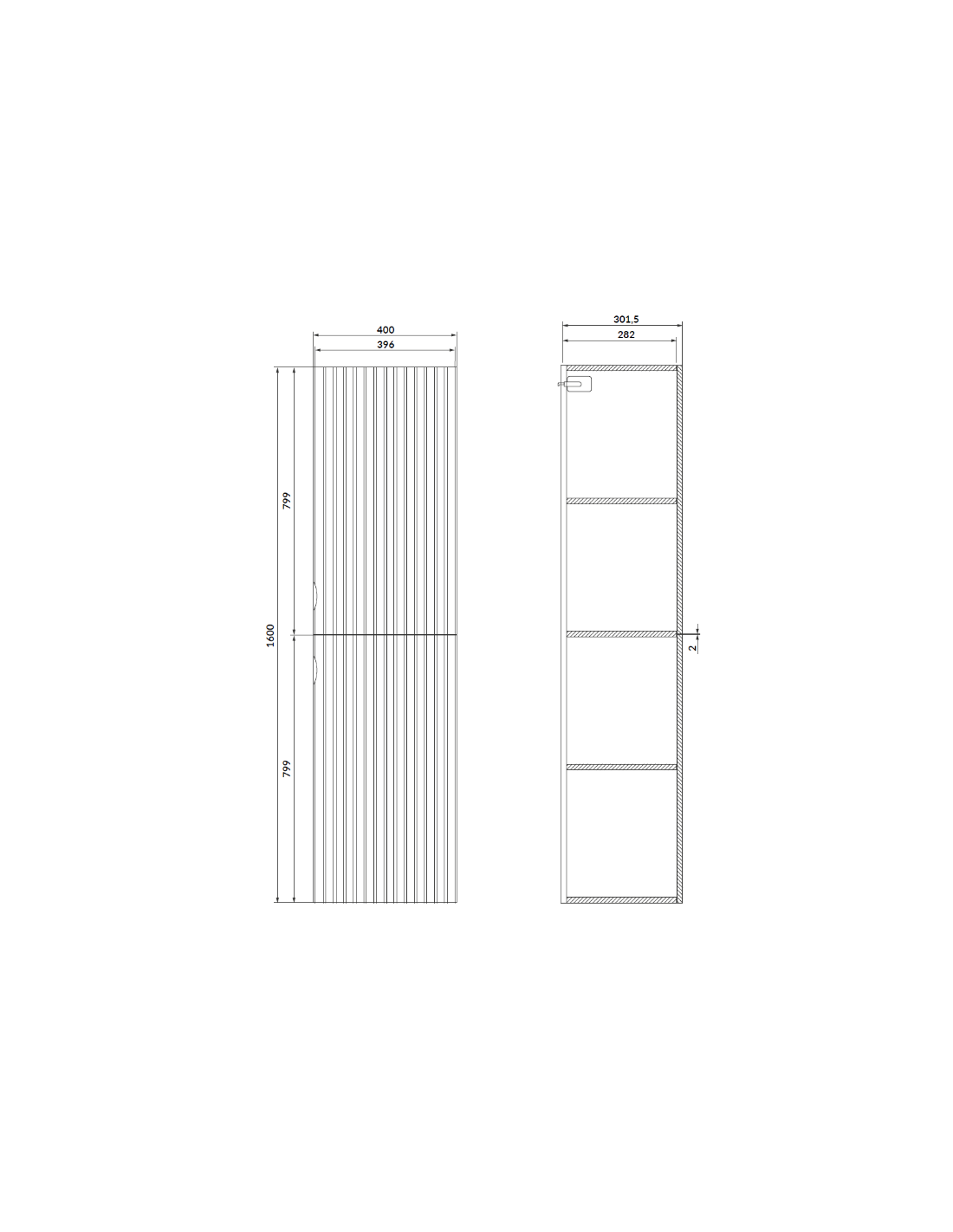 • 2 skabslåger, hvert med 1 hylde