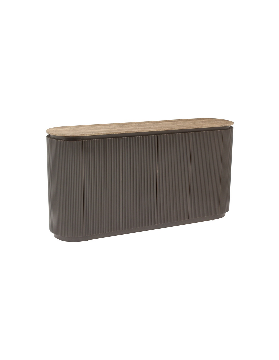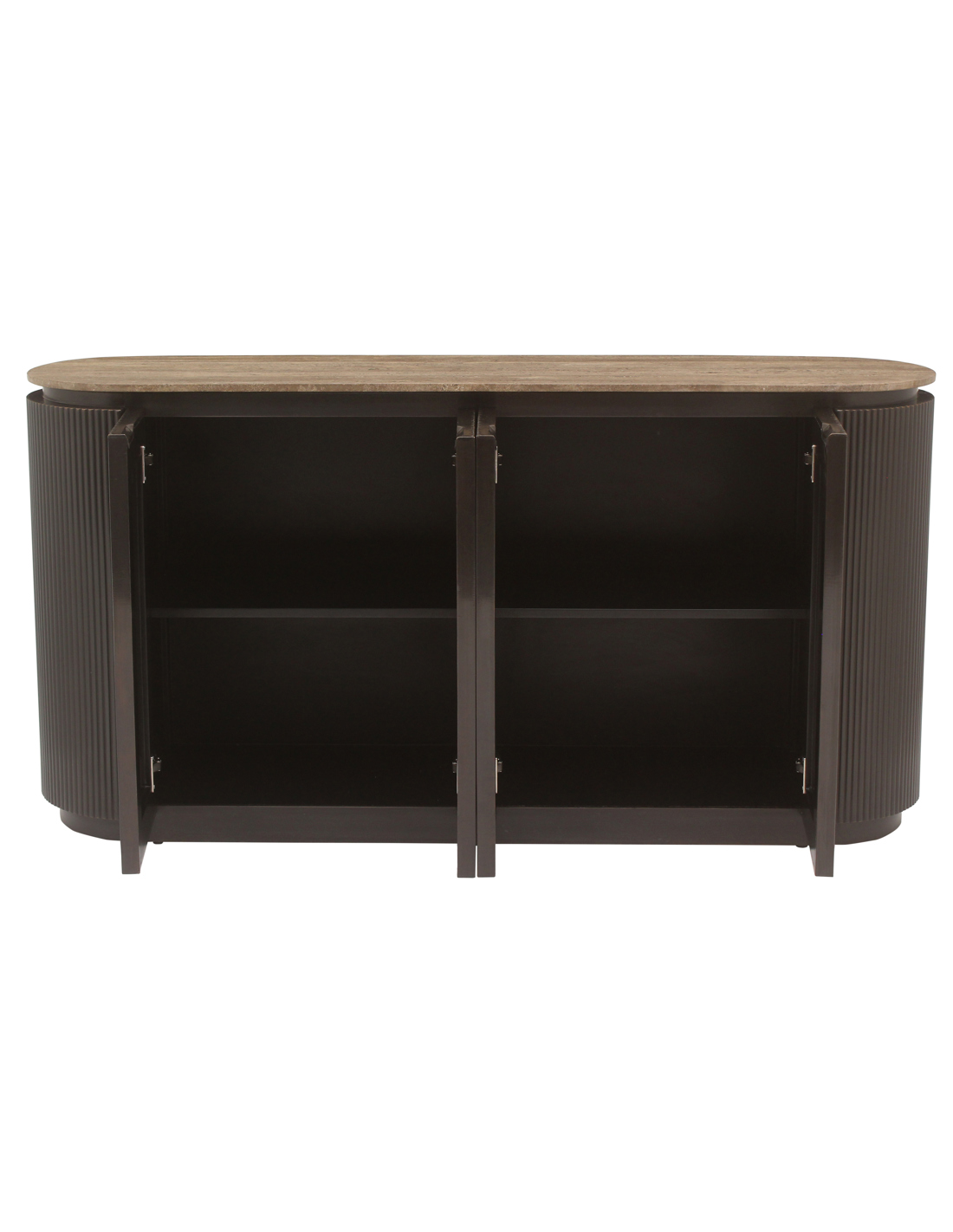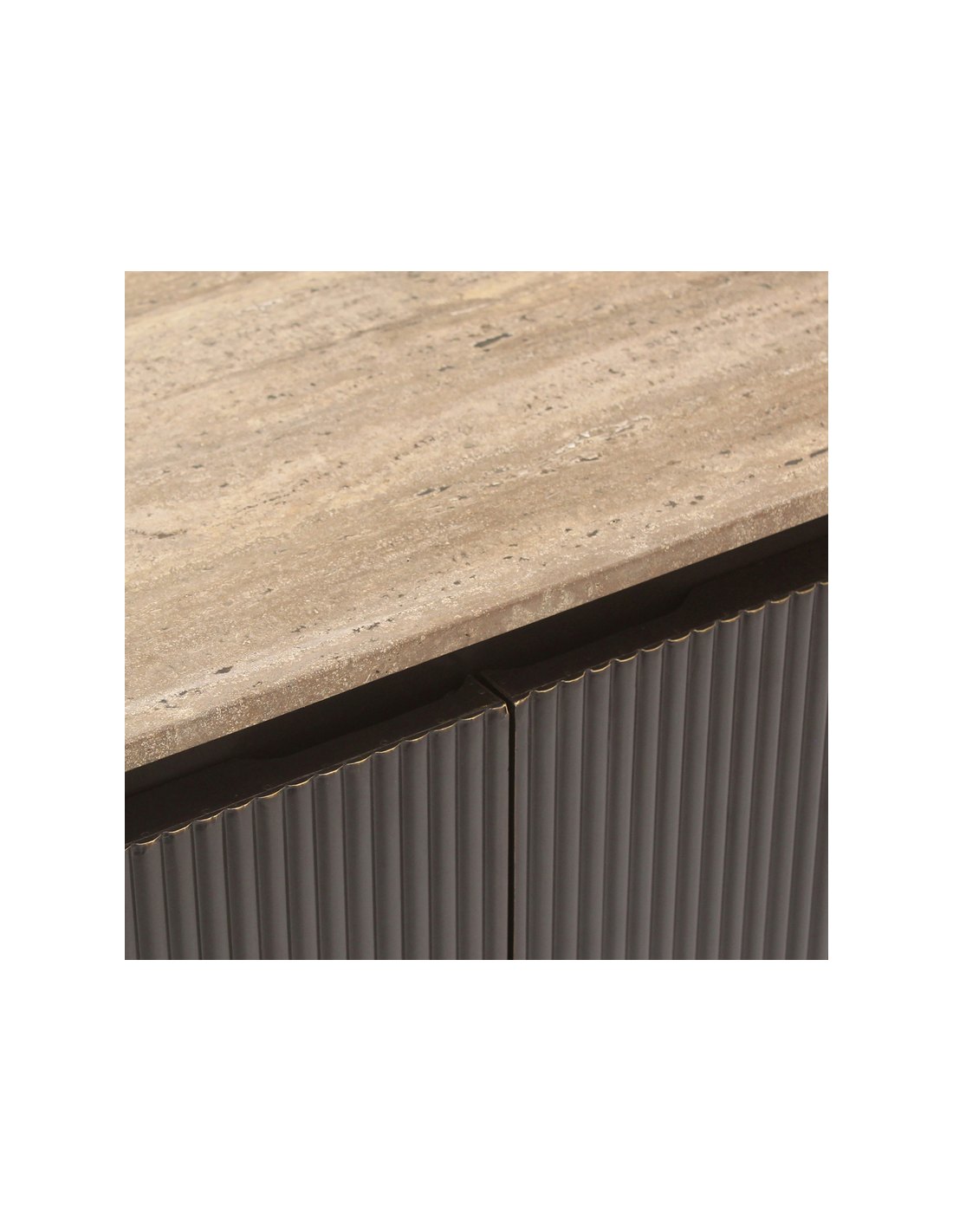RUSSO Skænk i messing, MDF og travertin H82 x B160 x D40 cm - Antik brun/Brun travertin