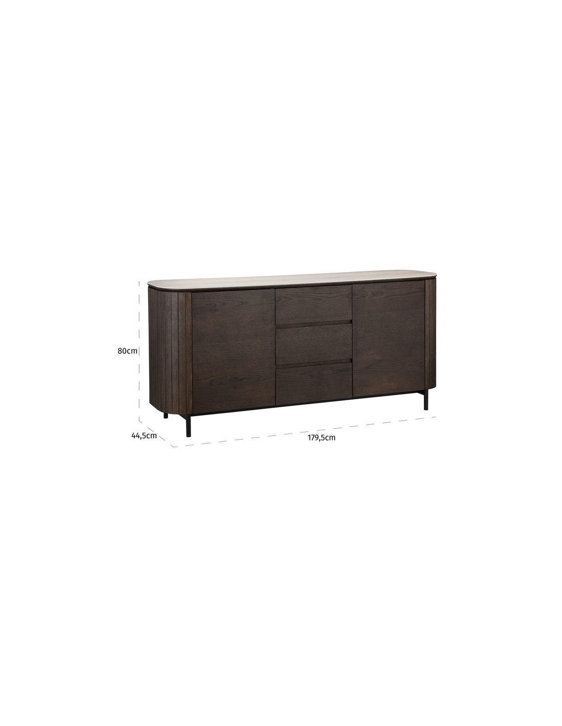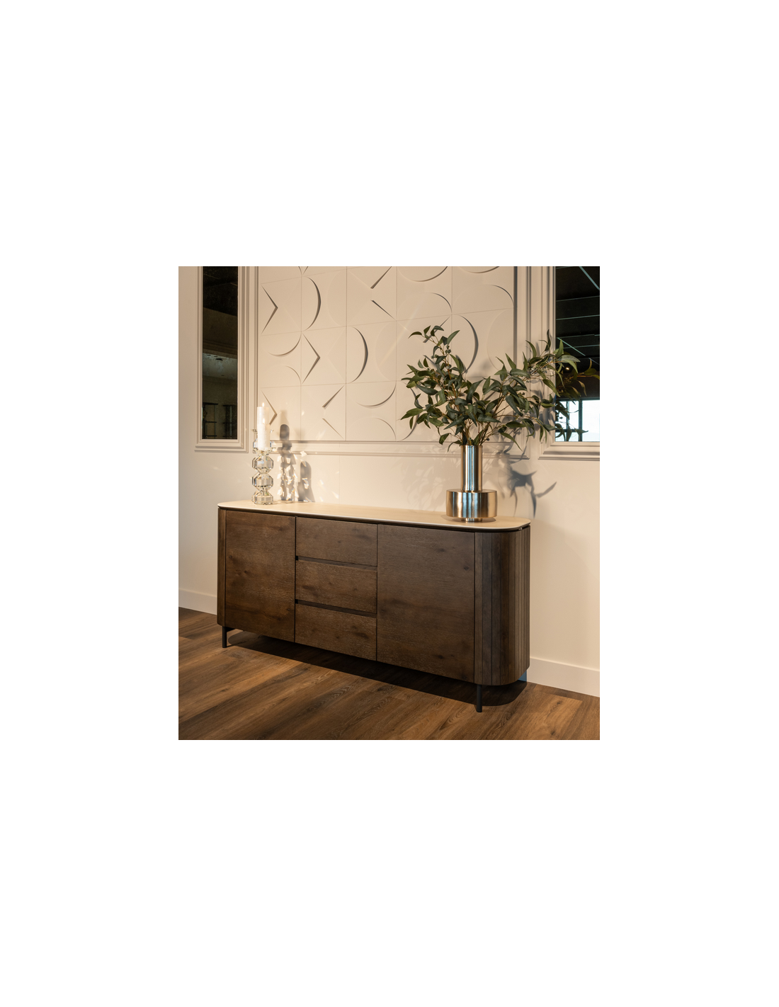 Ritz sideboard i egetræsfinér og keramik B179,5 cm - Brun/Travertin