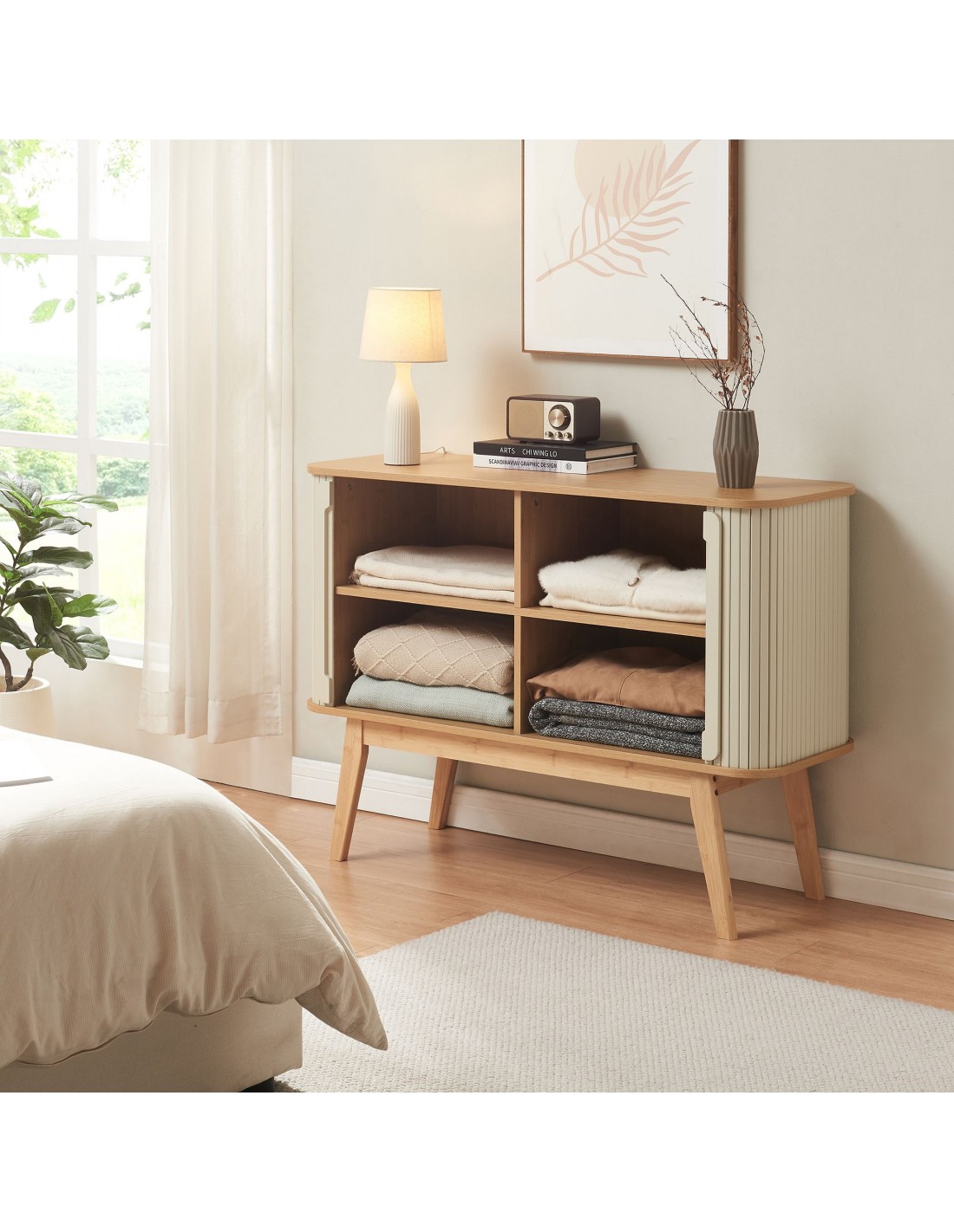TYSVA Sideboard i bambus og MDF H80 x B110 x D40 cm - Natur/Creme