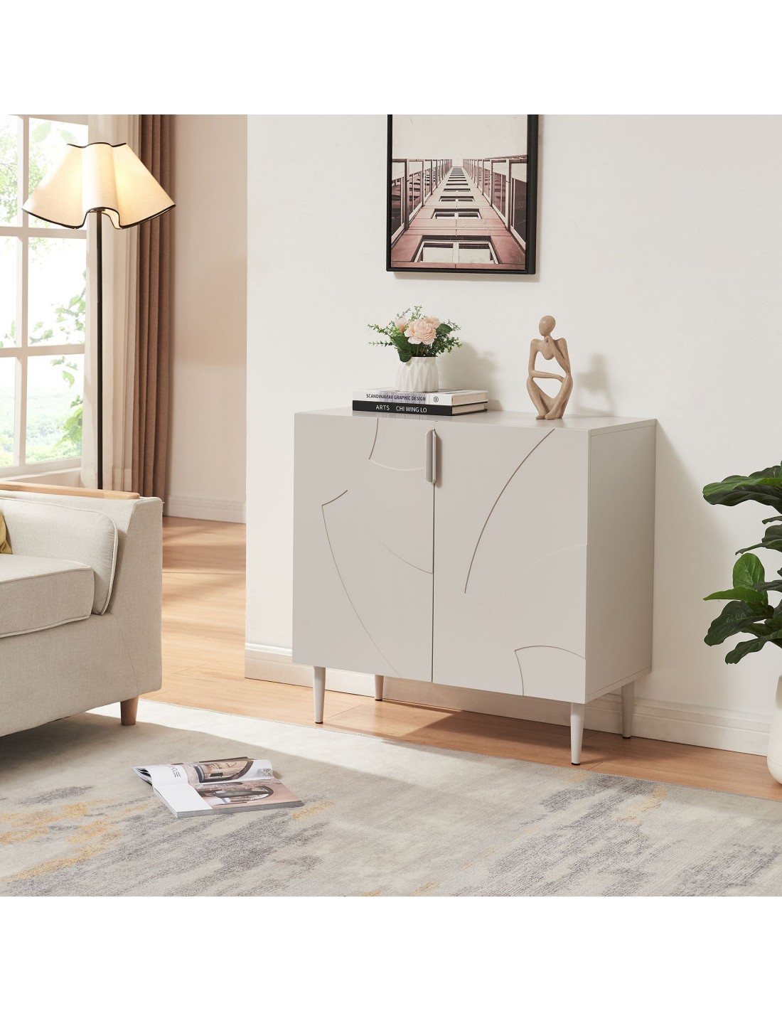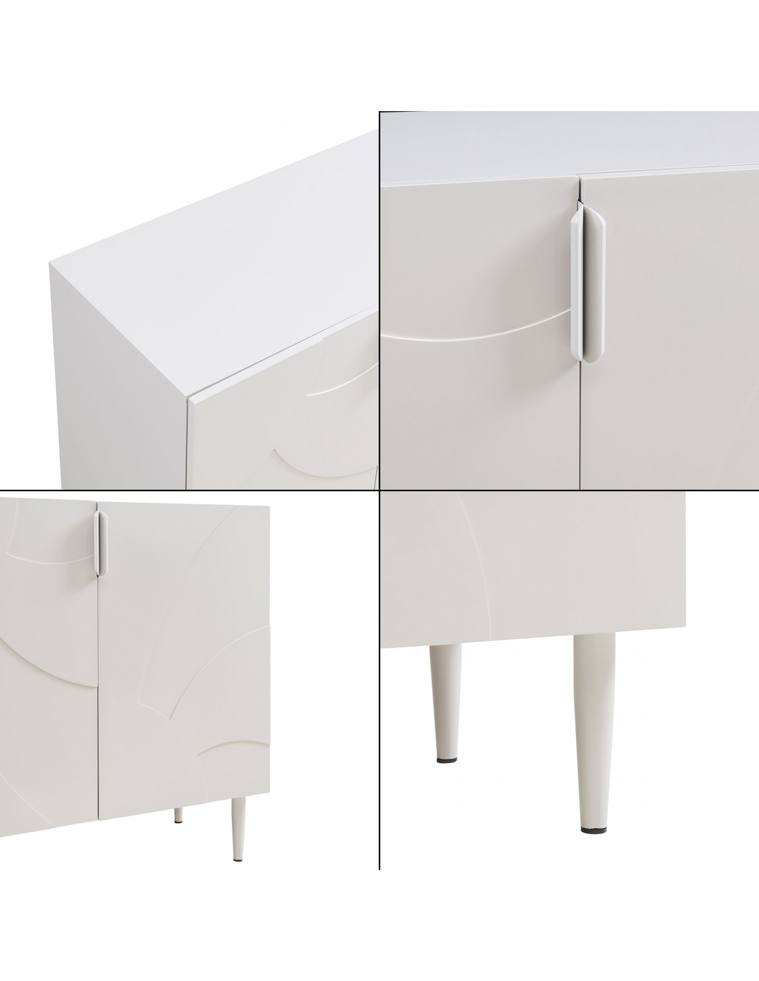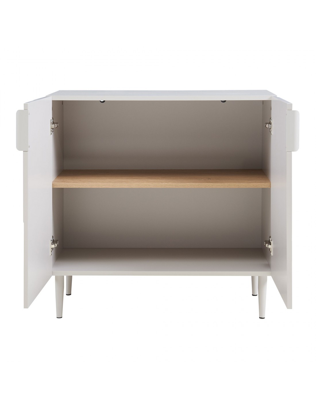 STAR Skænk i et moderne nordisk design af beigelakeret stål og beige MDF med hylde i egetræsfarvet møbelplade. Skænken måler 75 cm i højden og 76 x 38 cm i bredde og dybde.