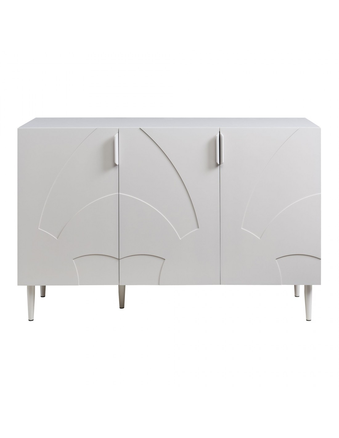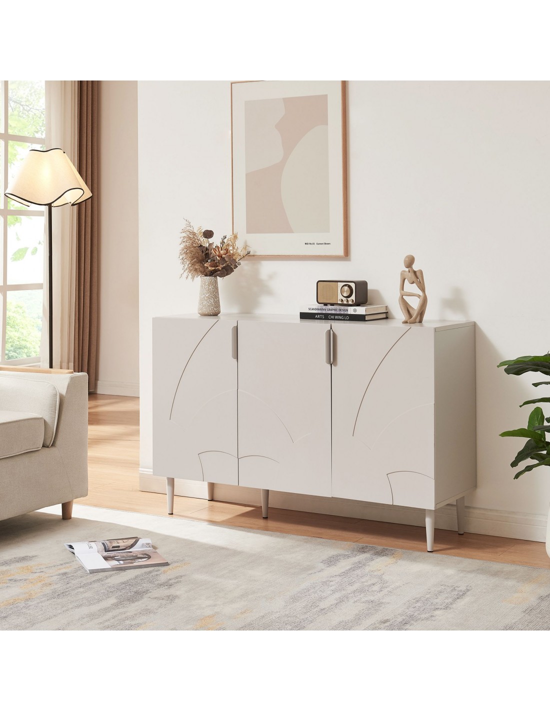 STAR Skænk i et moderne nordisk design af beigelakeret stål og beige MDF med hylde i egetræsfarvet møbelplade. Skænken måler 75 cm i højden og 115 x 38 cm i bredde og dybde.