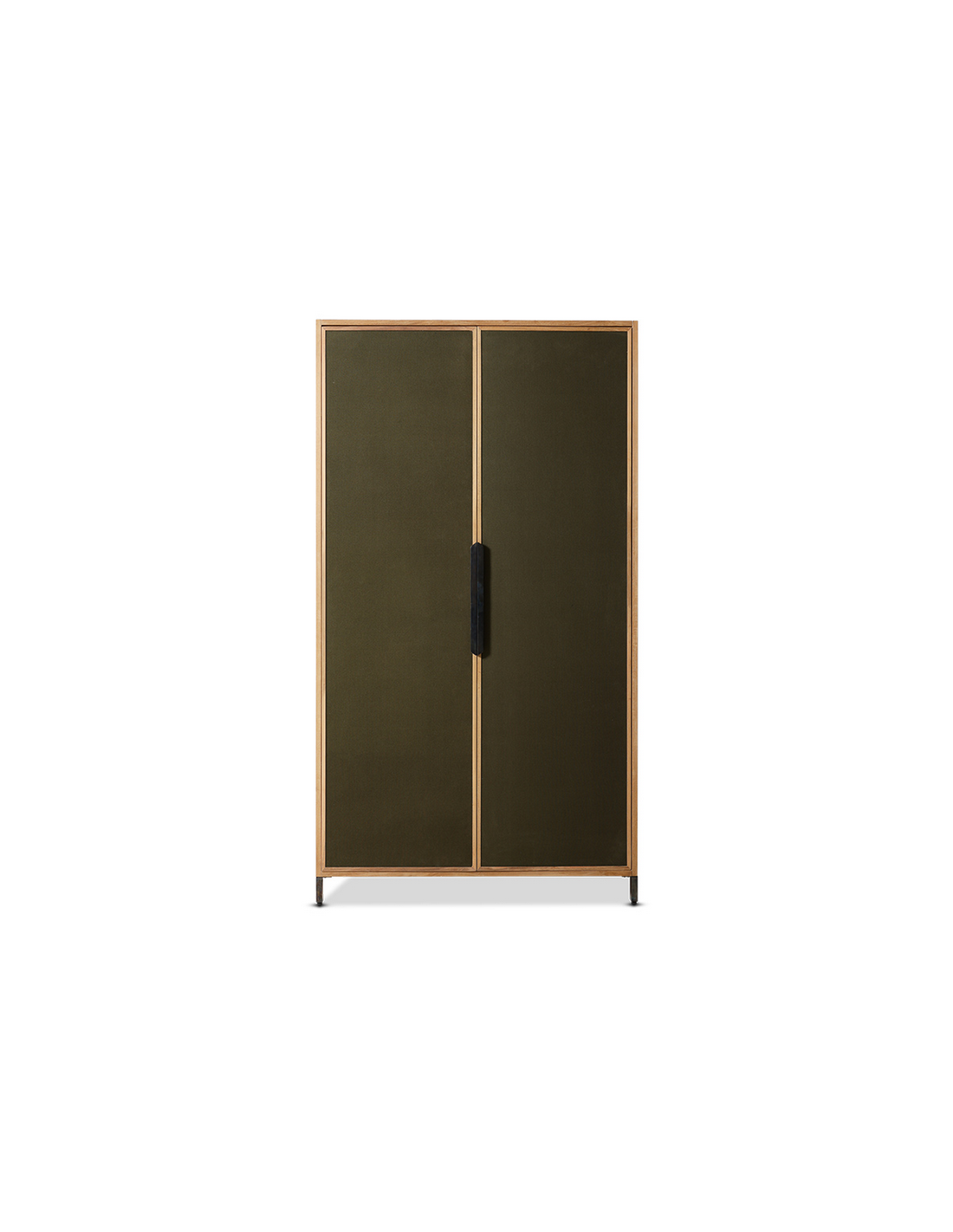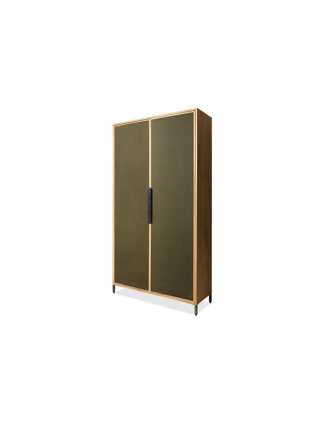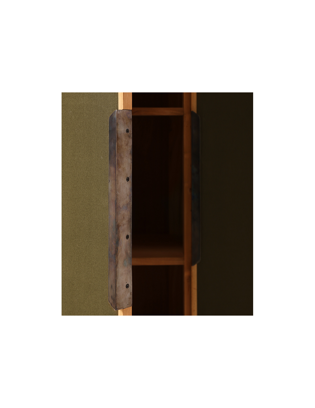 PIONEER Vitrineskab i jern, fyrretræ og kanvas H180 cm - Industrielt sort/Rustik natur/Mørkegrøn