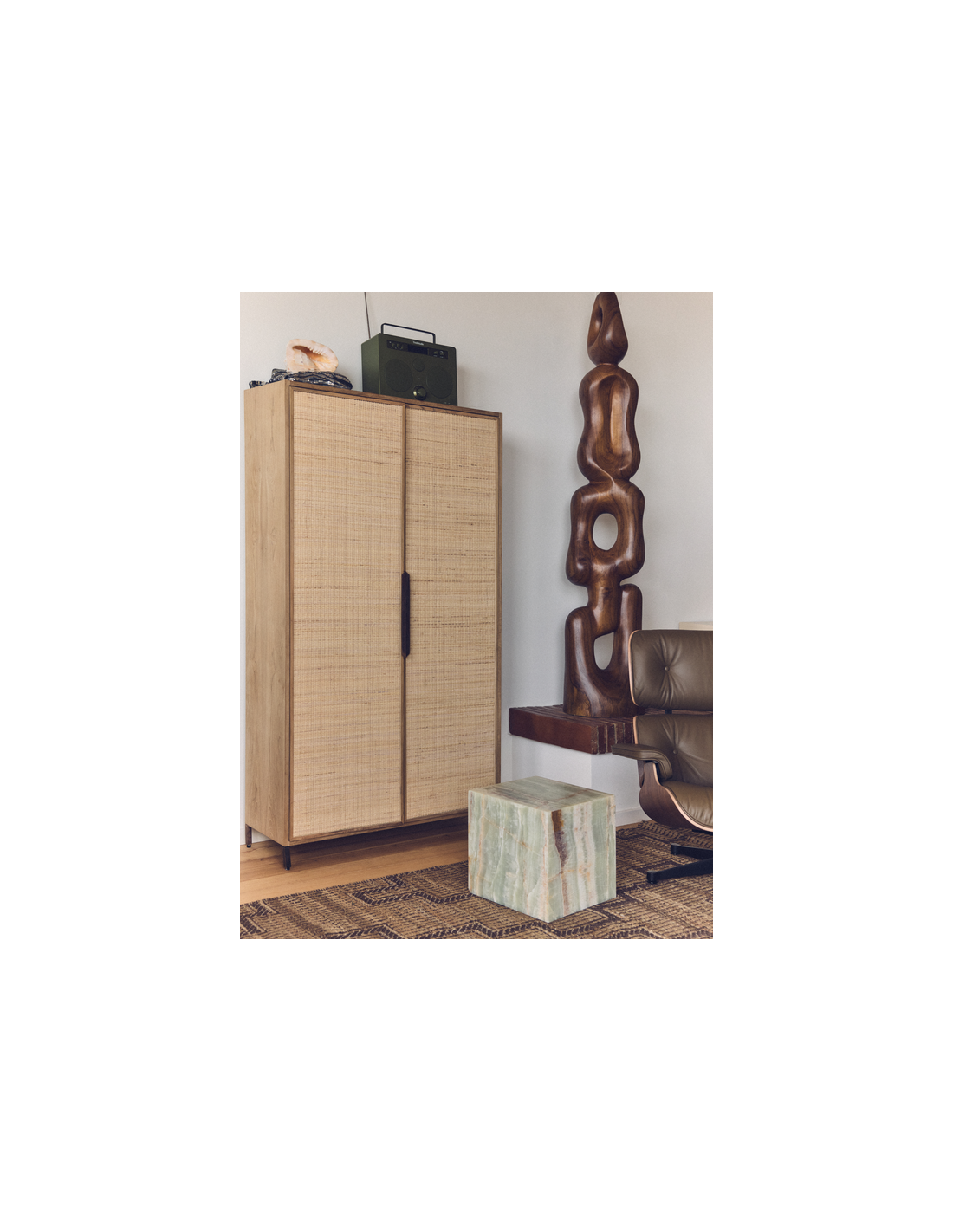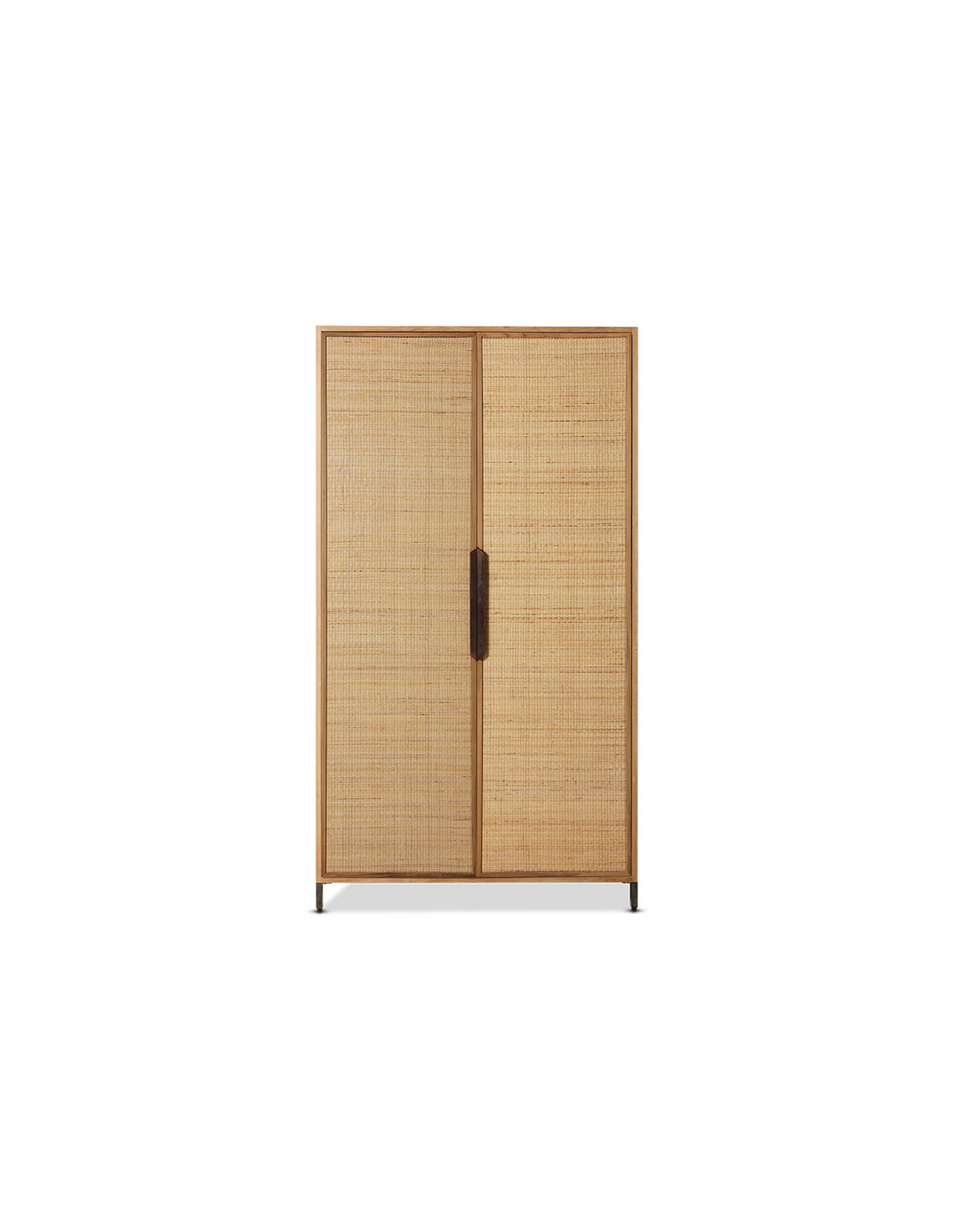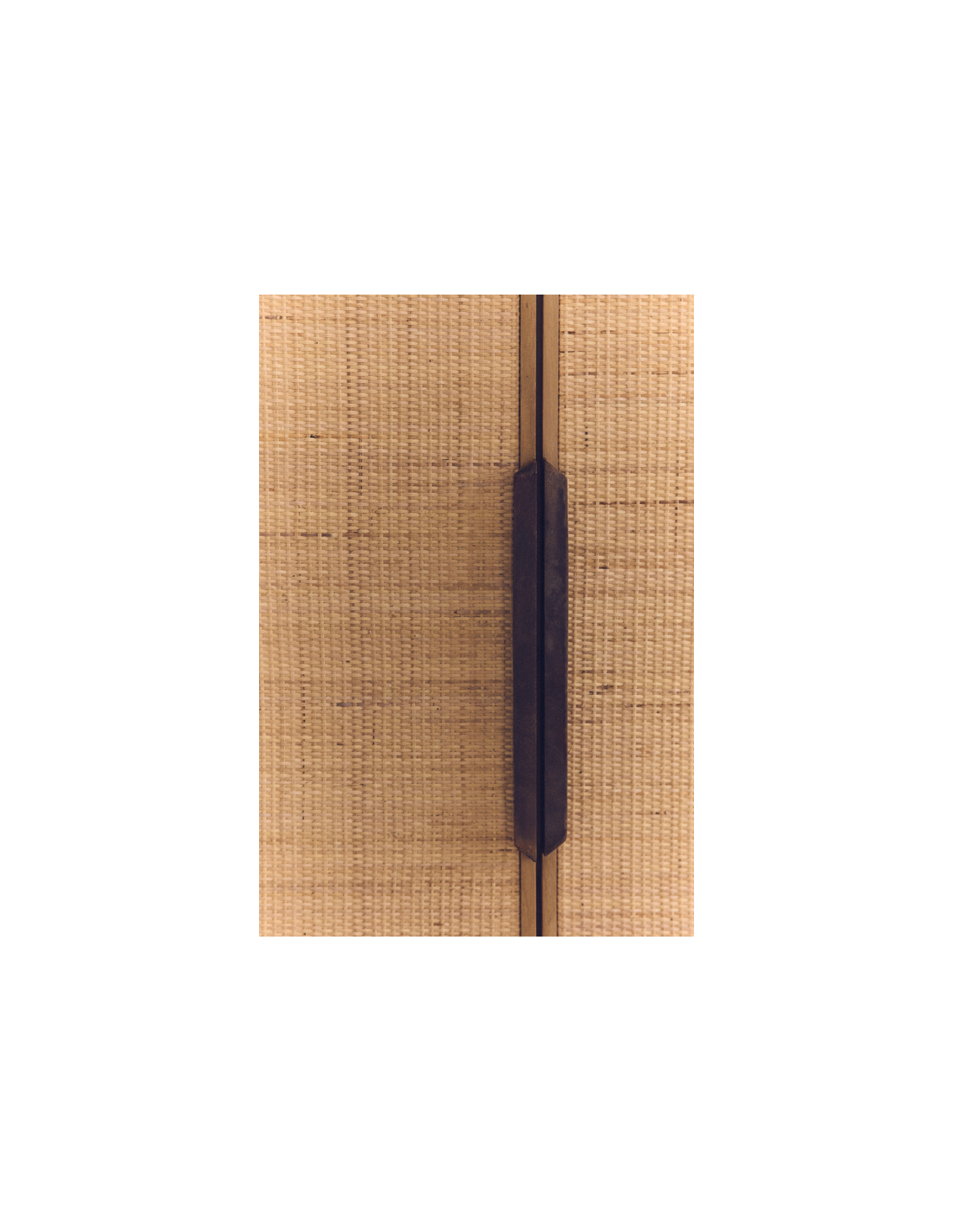 PIONEER Vitrineskab i jern, fyrretræ og rattan H180 cm - Industrielt sort/Rustik natur