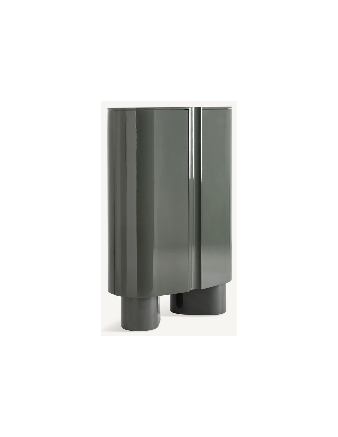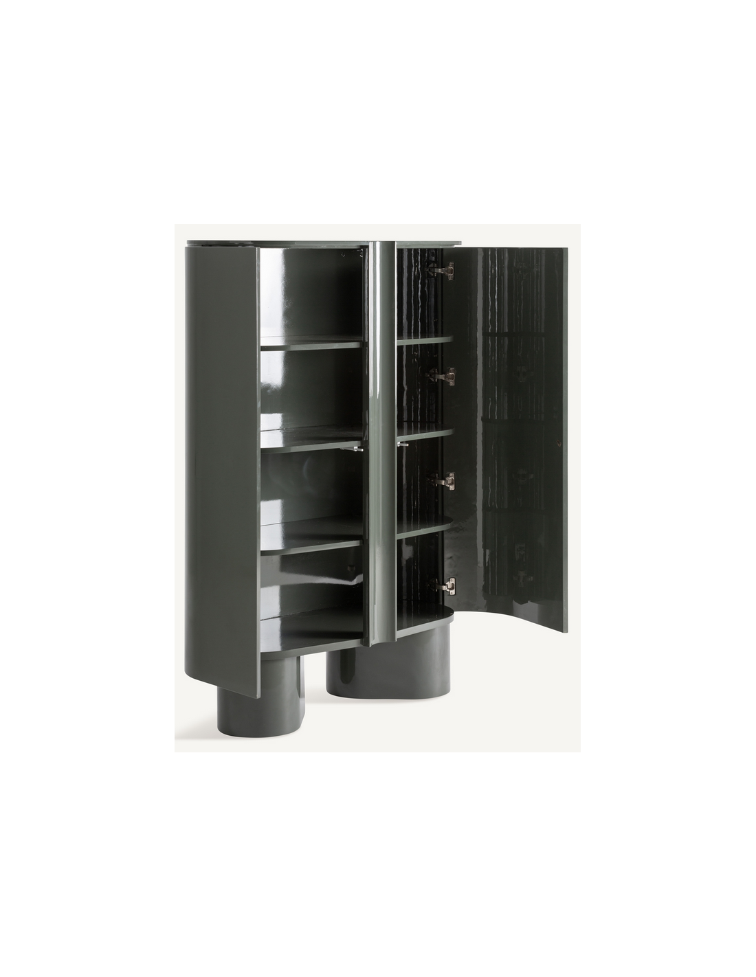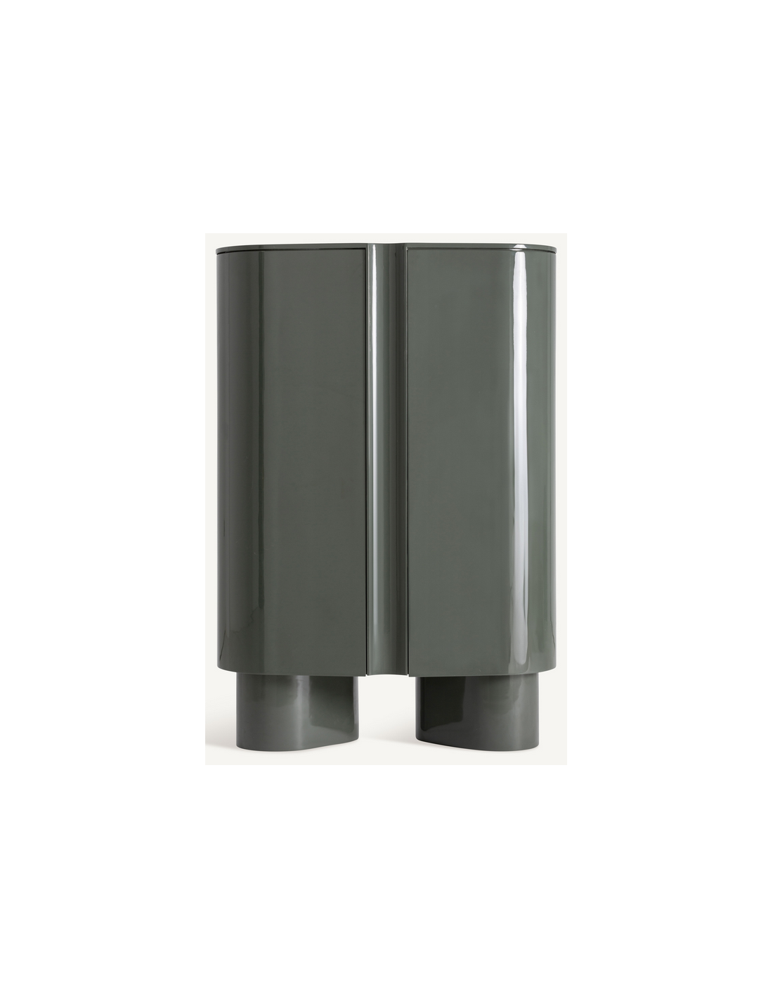 SAXBY Vitrineskab udført i et moderne design fremstillet af blank grønlakeret MDF. Skabslågerne er med push-to-open funktion og vitrinen måler 160 cm i højden og 110 x 50 cm i bredde og dybde.