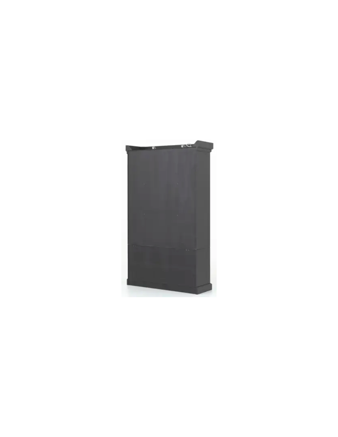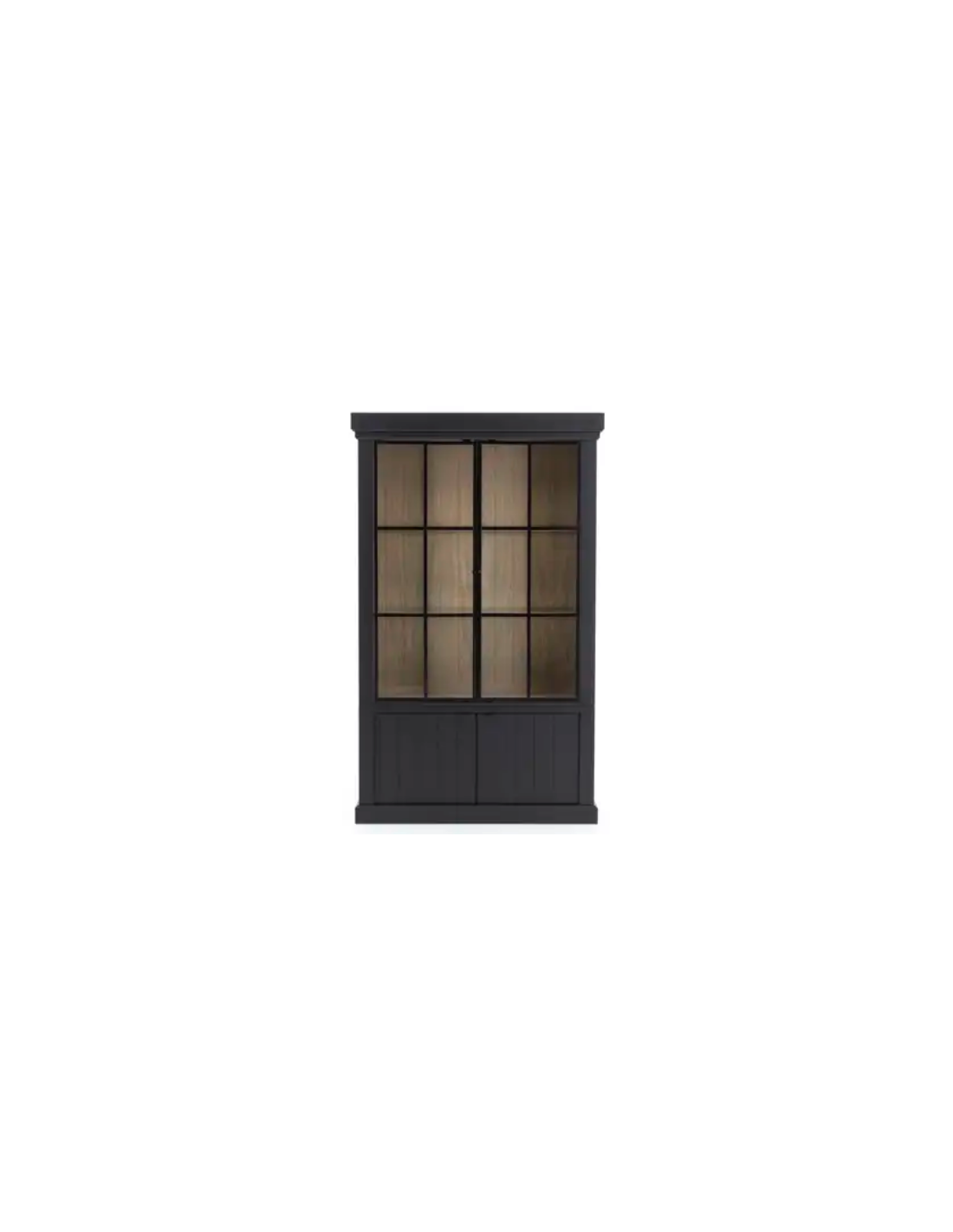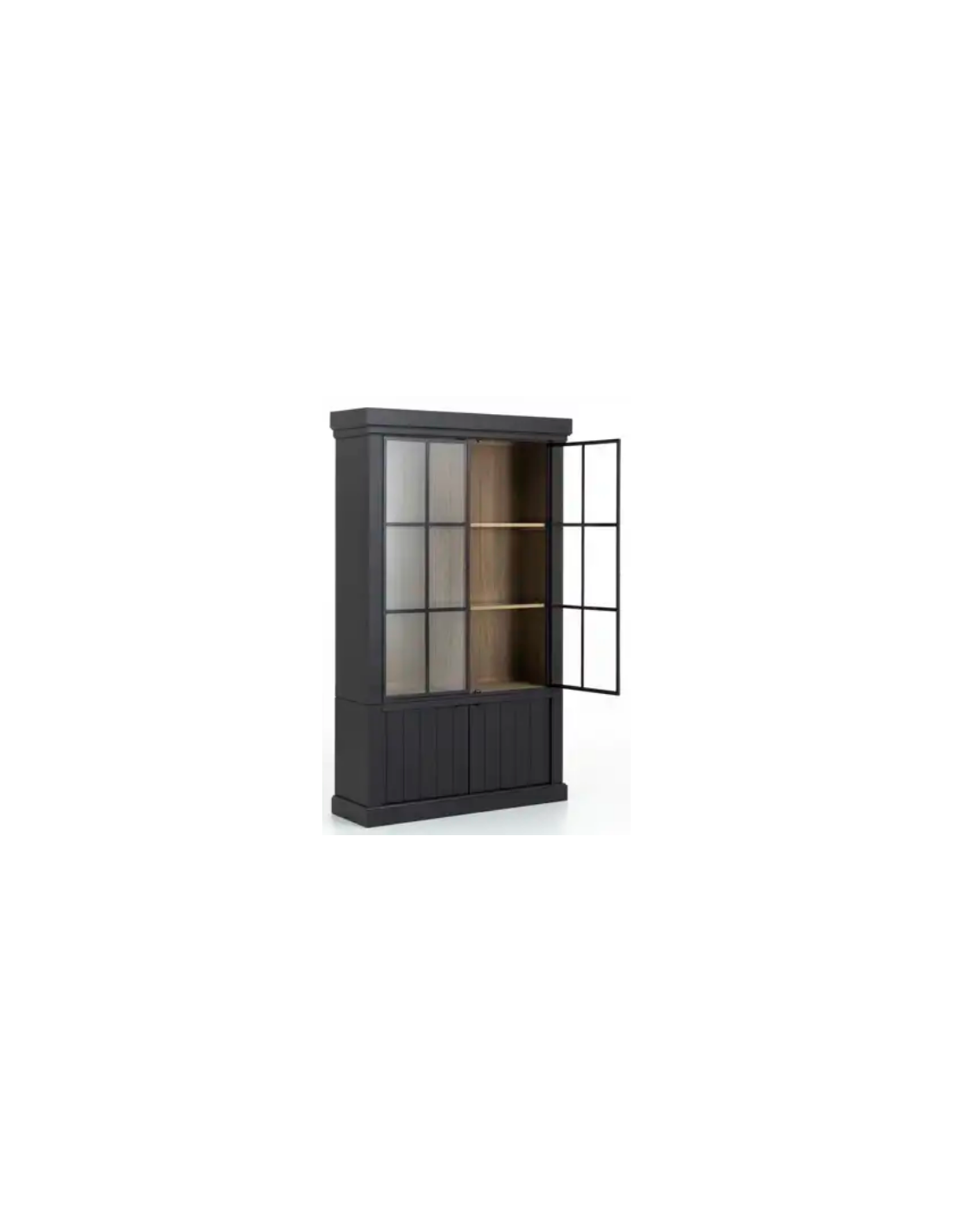 FLAMANT JASON Vitrineskab udført i et design fremstillet af sortlakeret egetræ med skabslåger i sortlakeret jern med klart glas. Det indre i skabet er i naturfarvet egetræ og med spot belysning. Hylderne i skabet er glashylder. Vitrinen måler 222 cm i højden og 138 x 44 cm i bredde og dybde.
