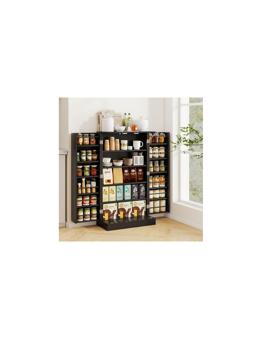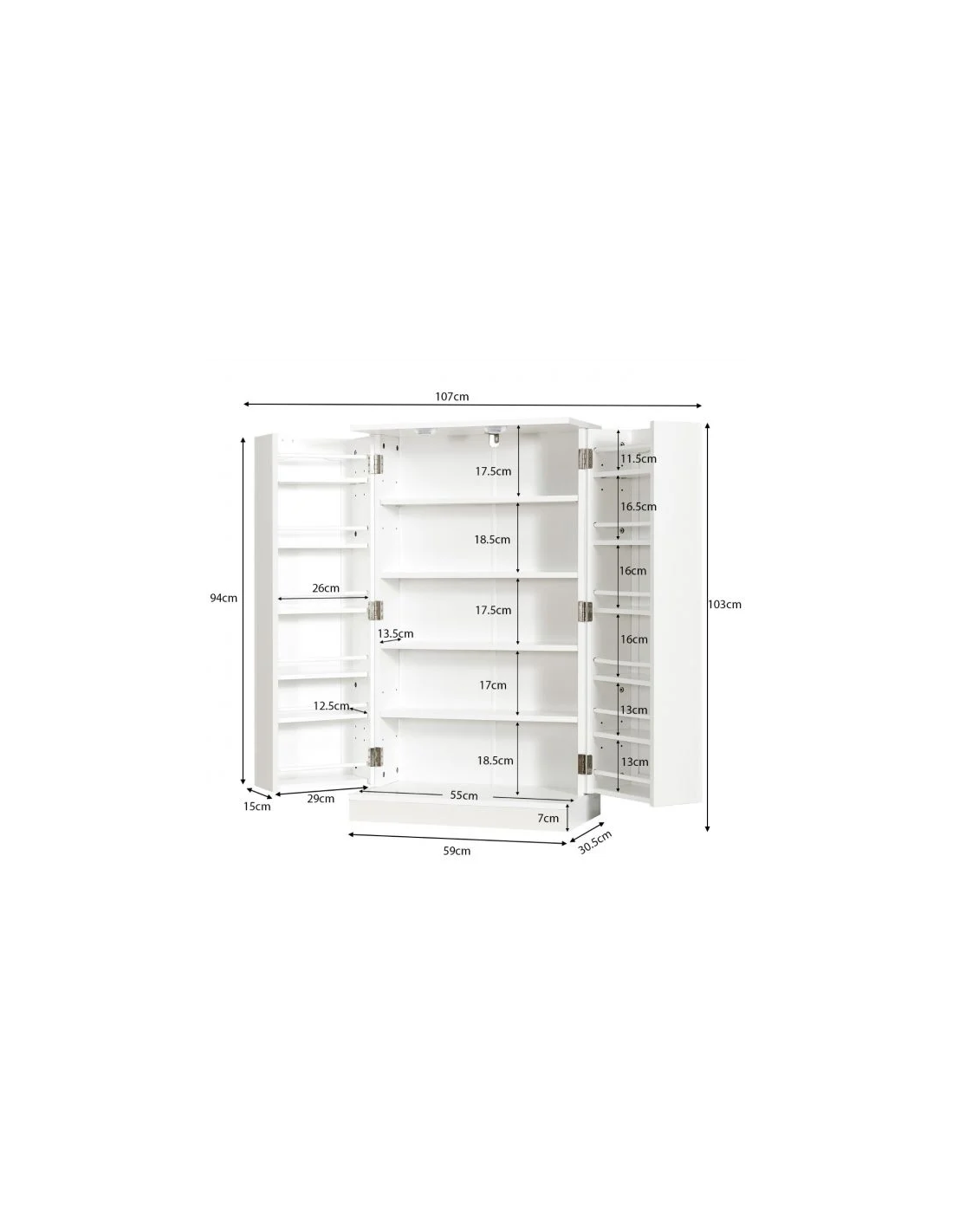 Forrådskabinet udført i et design af sortlakeret MDF. Kabinettet rummer mange opbevaringsmuligheder og måler 104 cm i højden og 58 - 107 x 30 cm i bredde og dybde.