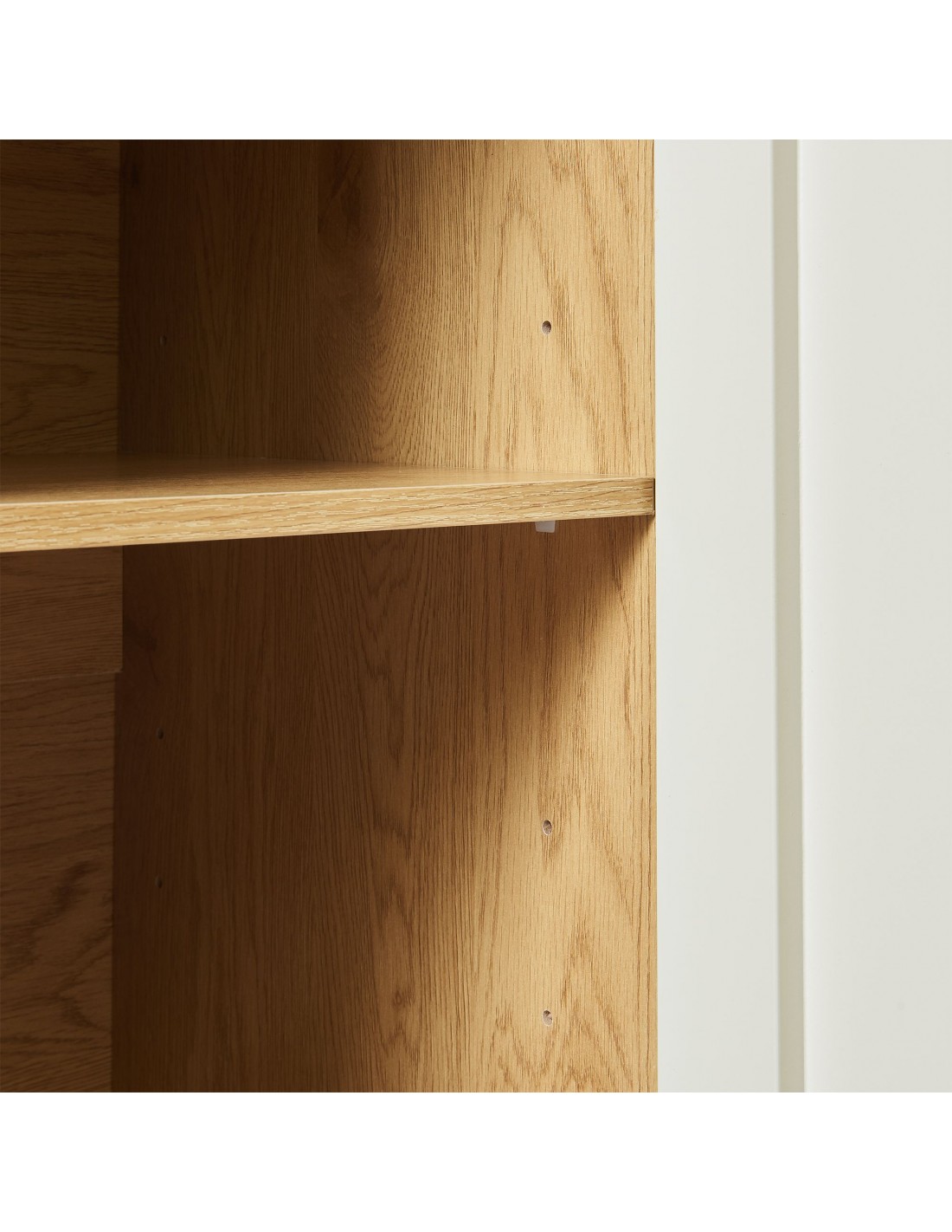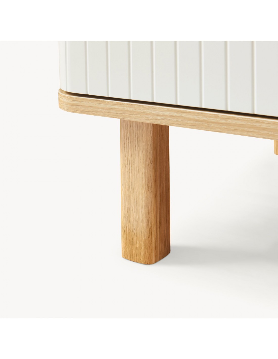 Skænk udført i et moderne og Skandinavisk design af egetræsfarvet fyrretræ og MDF og sandfarvet MDF. Skænken har 1 højdejusterbar hylde og måler 80 cm i højden og 80 x 40 cm i bredde og dybde.