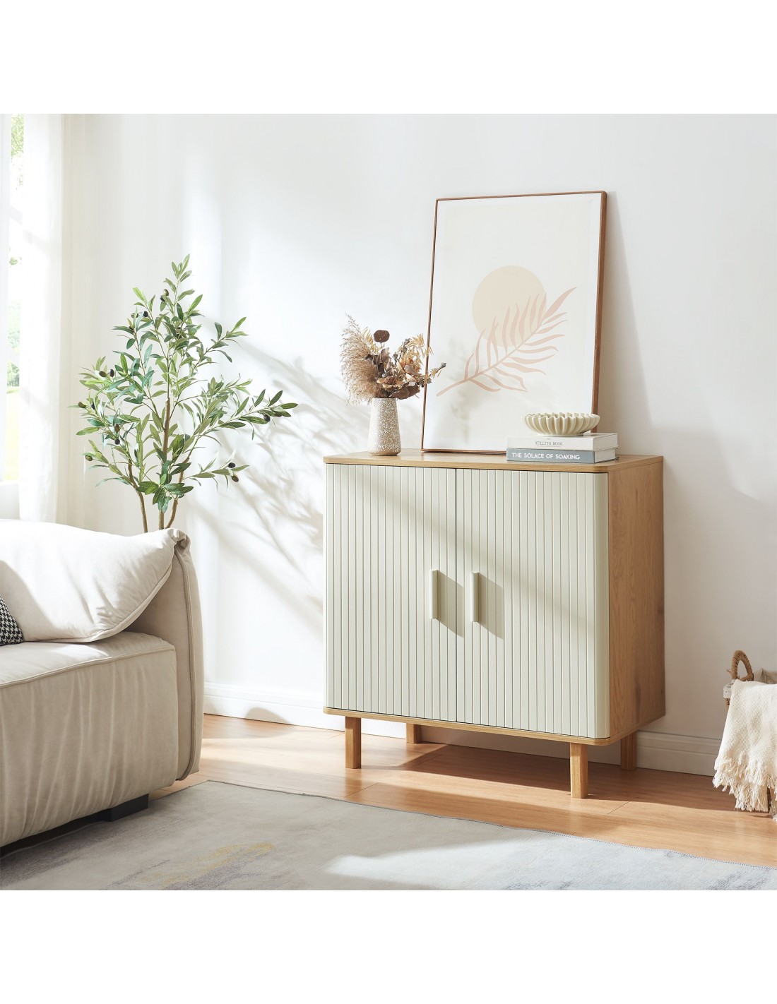Skænk i fyrretræ og MDF H80 x B80 x D40 cm - Eg/Sand