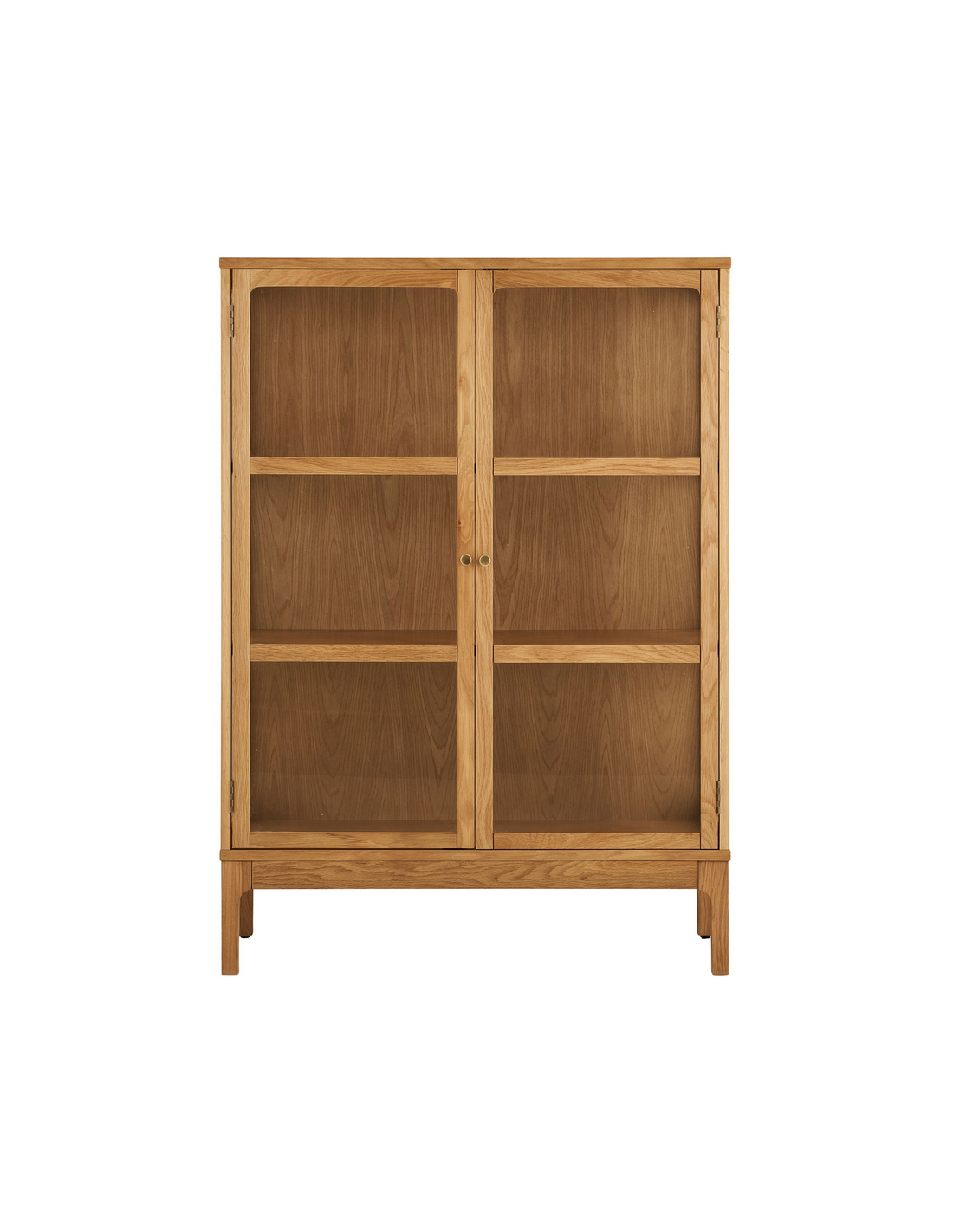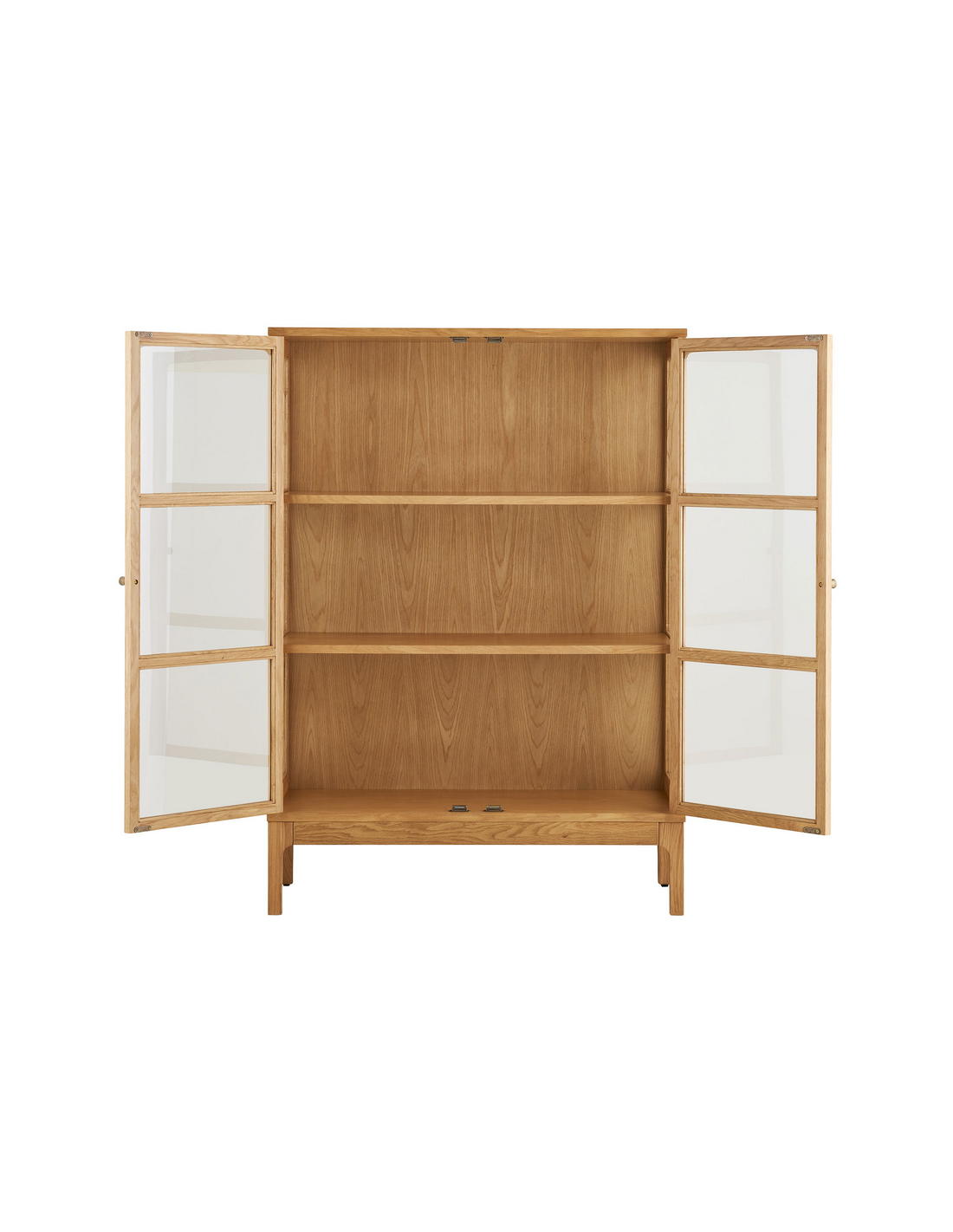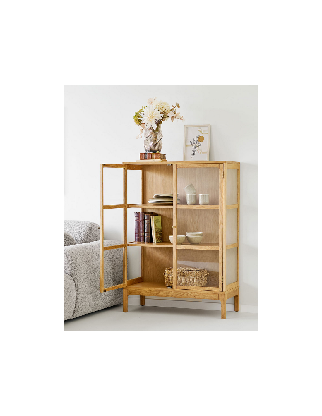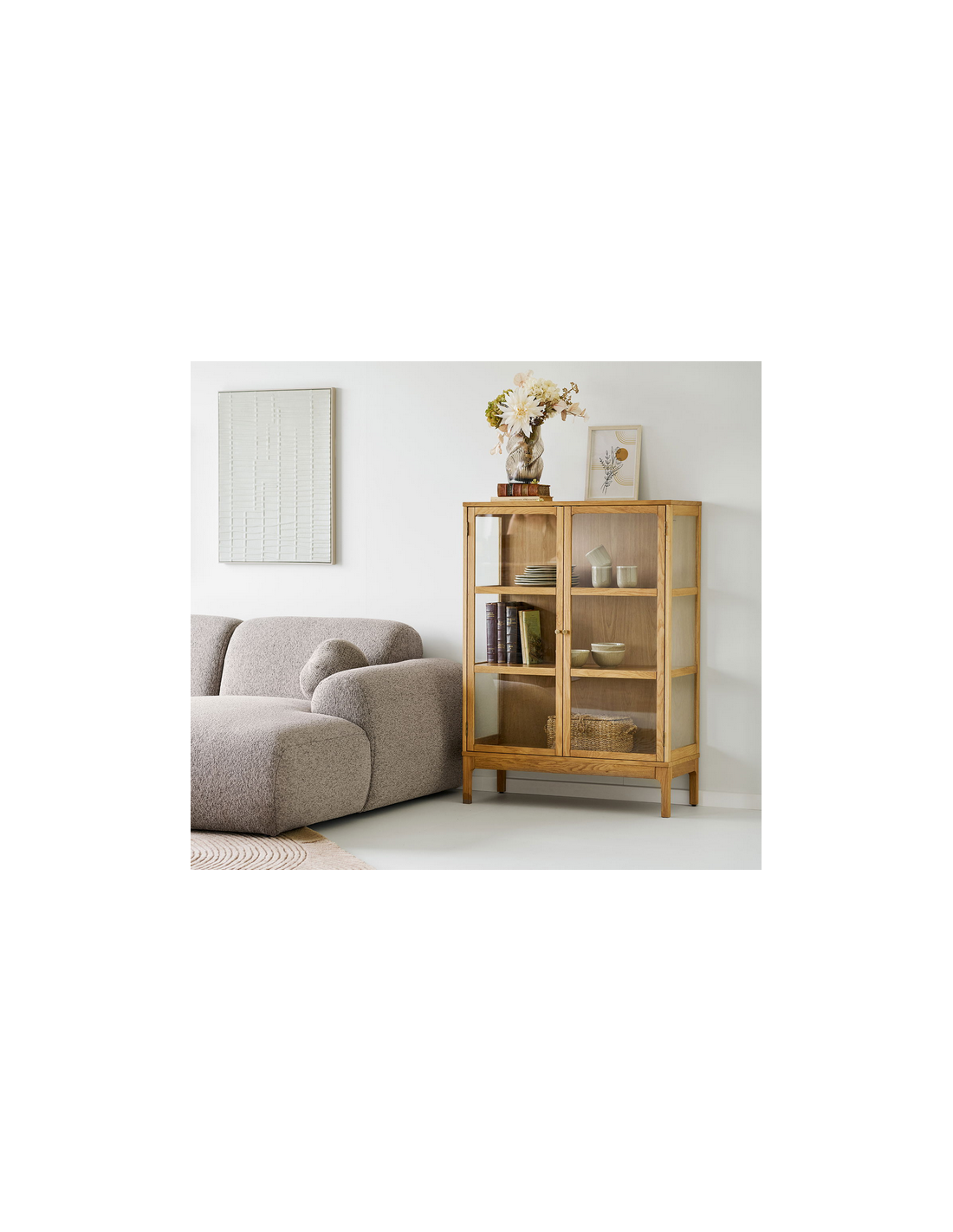 Vitrineskab i egetræsfinér og glas H126 x B90 x D40 cm - Eg