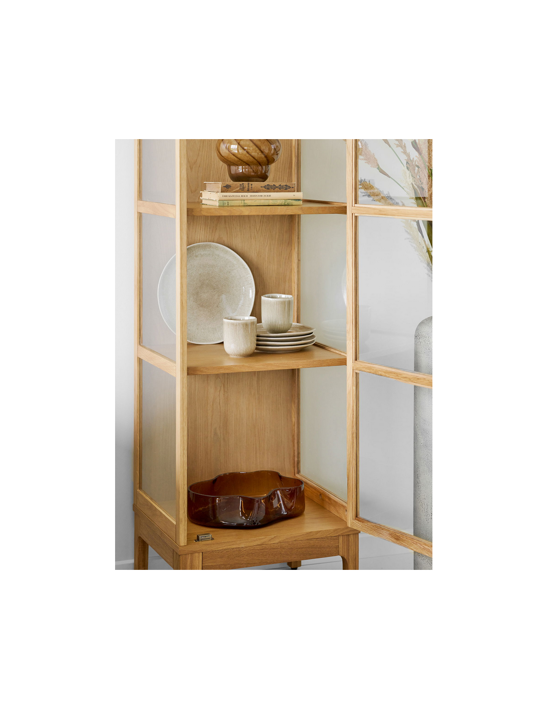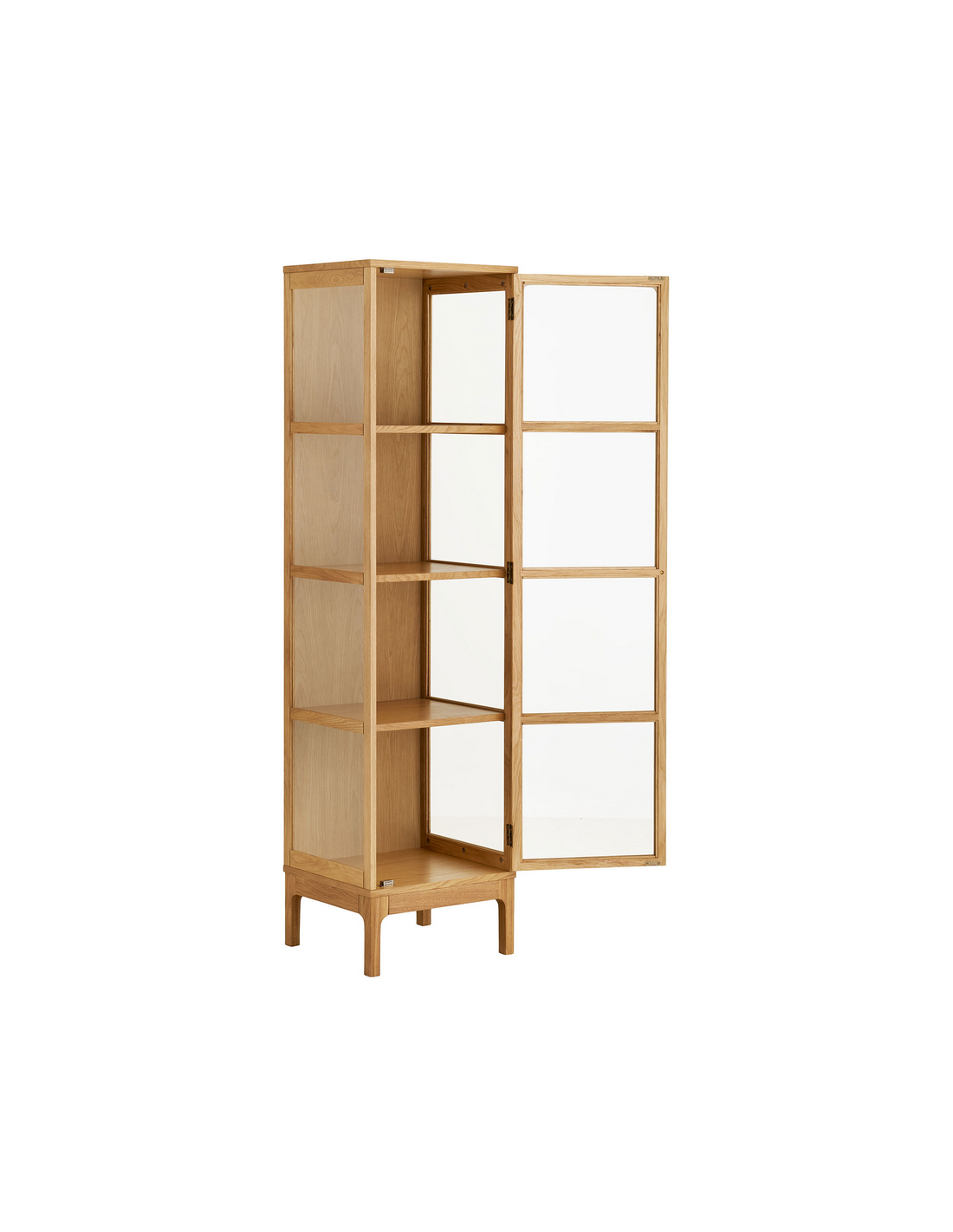 Vitrineskab i egetræsfinér og glas H180 x B40 x D47 cm - Eg