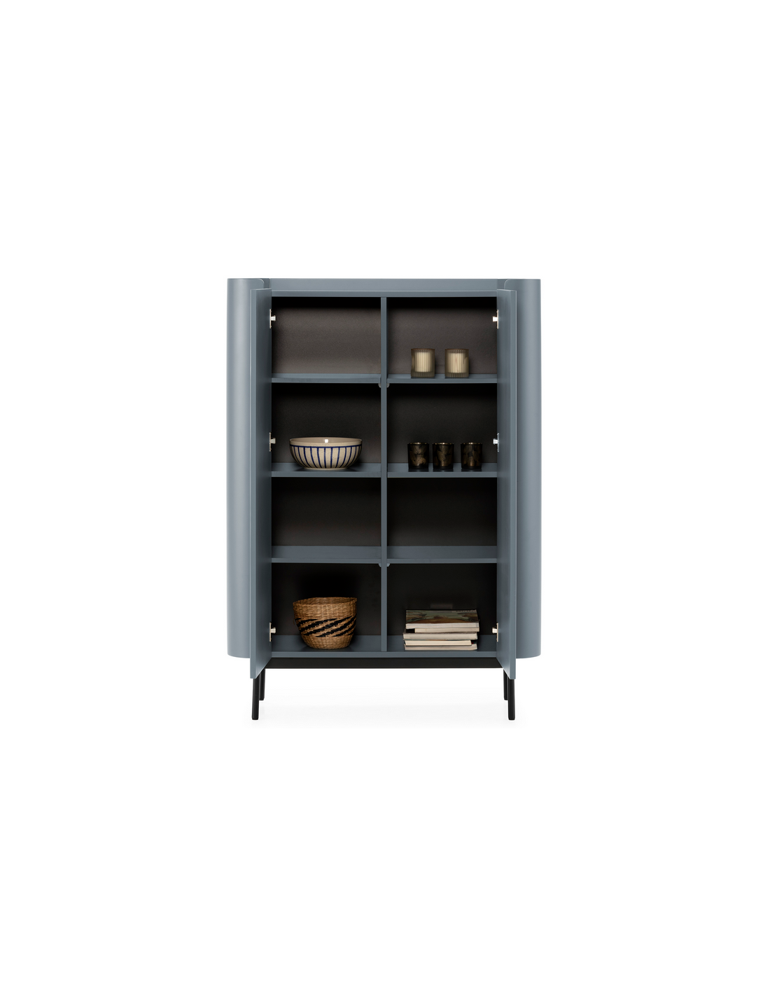 WILLA Vitrineskab med 2 skabe i metal og MDF H140 x B100 x D40 cm - Sort/Havblå