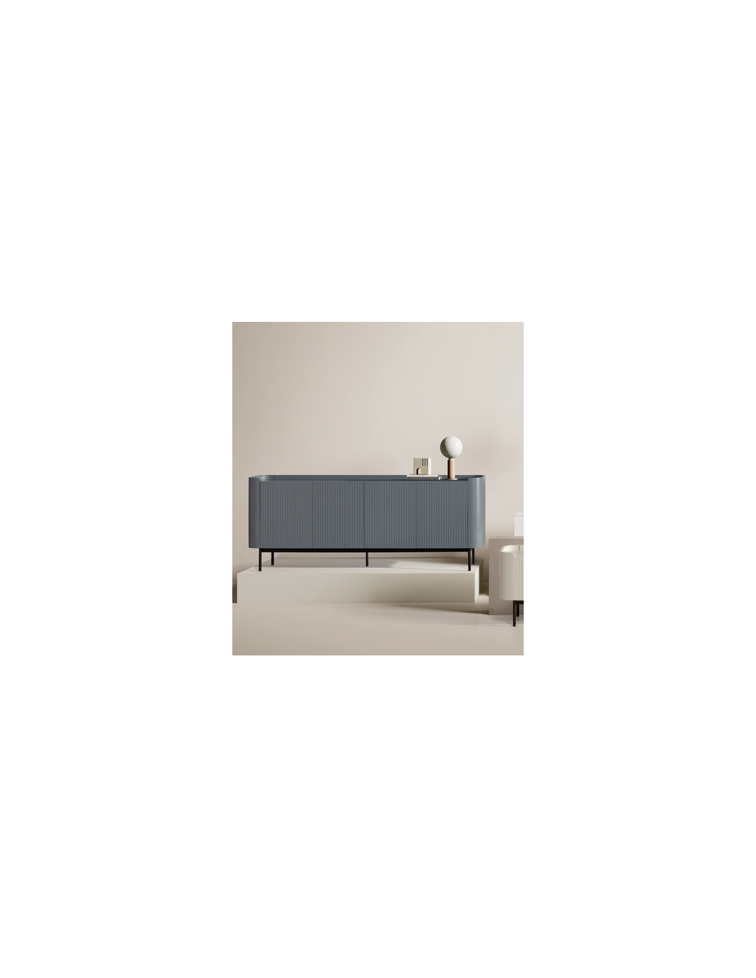 WILLA Skænk med 4 skabe i metal og MDF H80 x B200 x D40 cm - Sort/Havblå