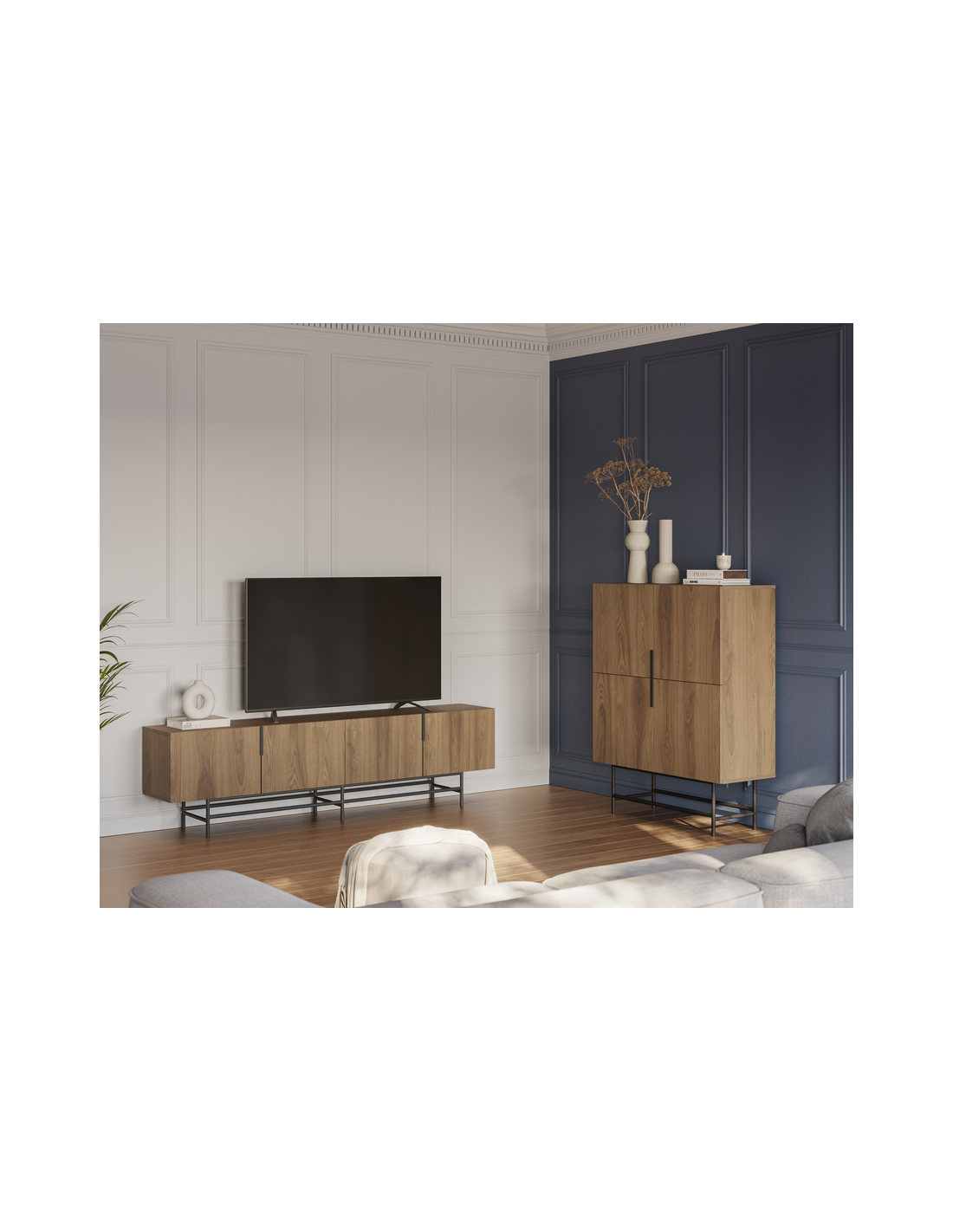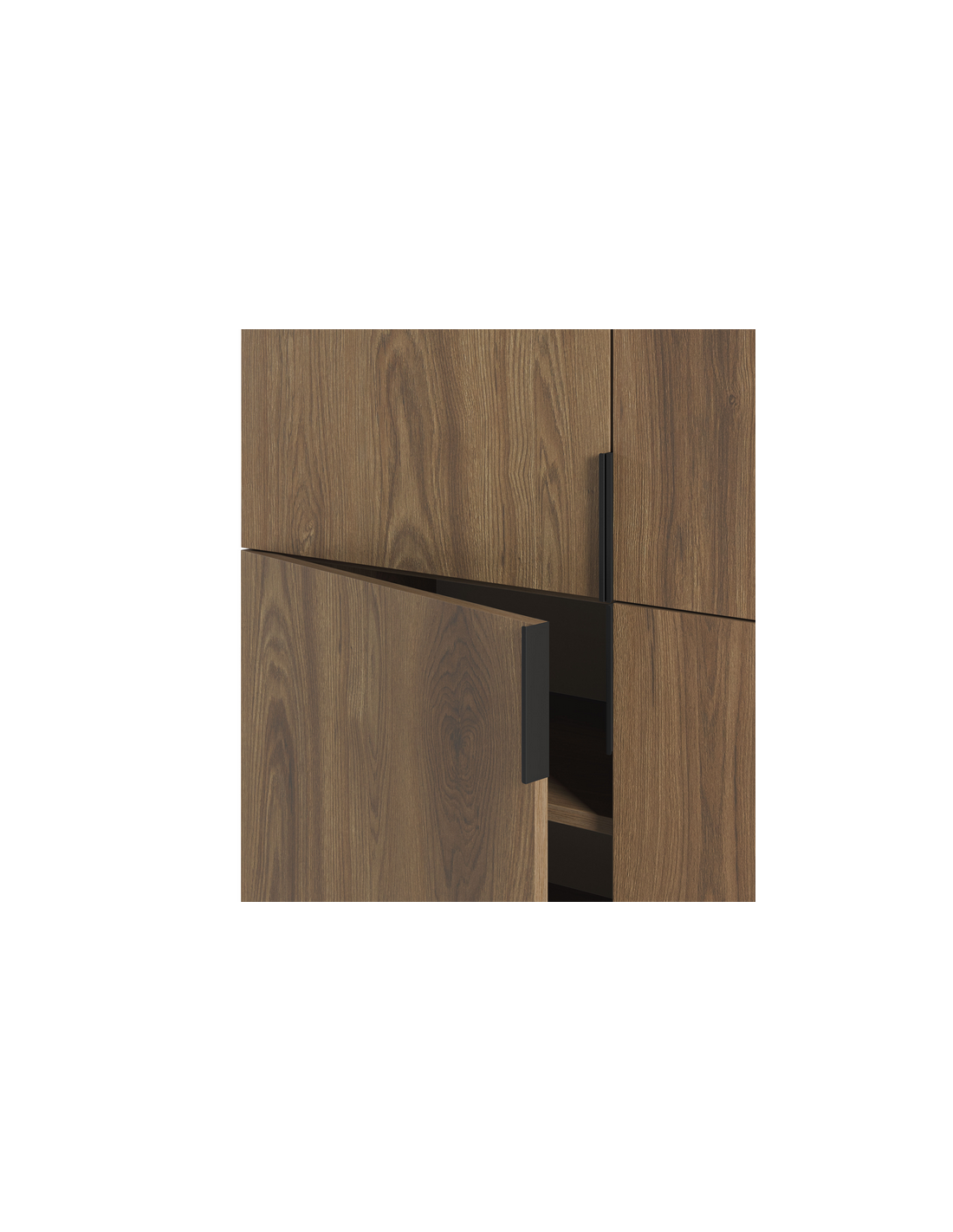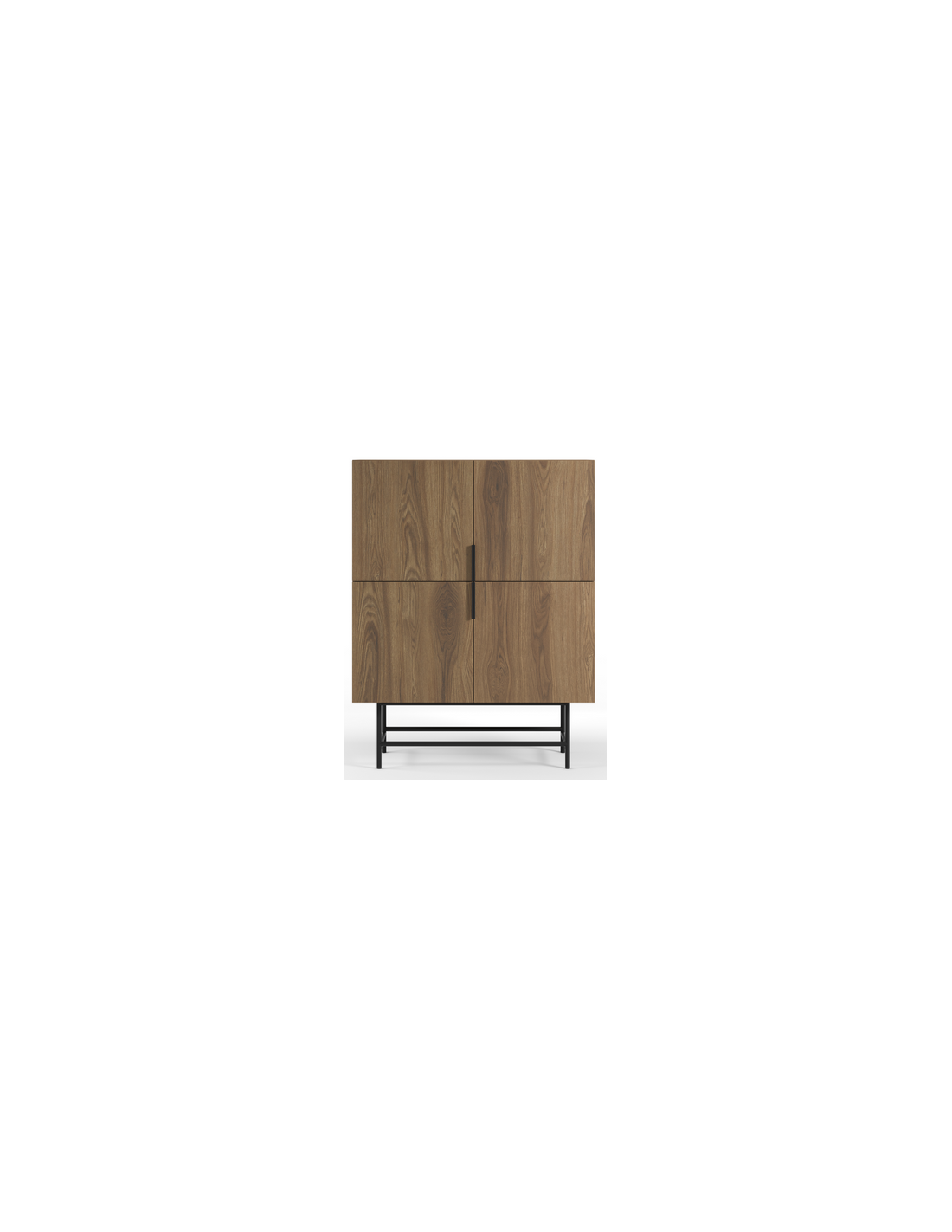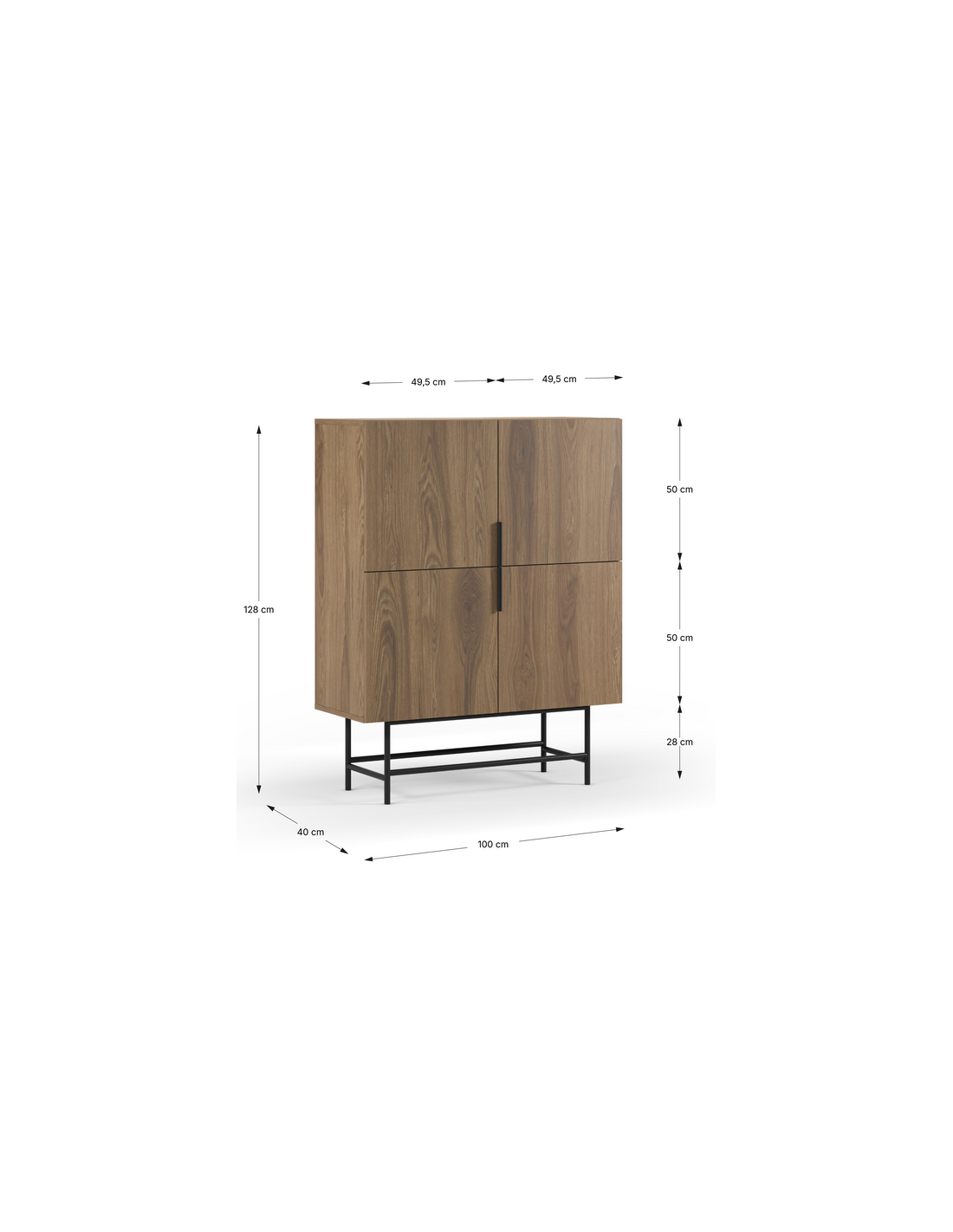 ELDIA Vitrineskab med 4 skabe i metal og melamin H128 x B100 x D40 cm - Sort/Mørk eg