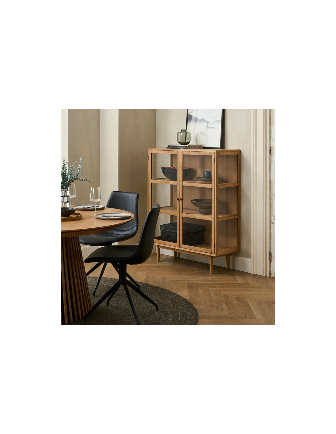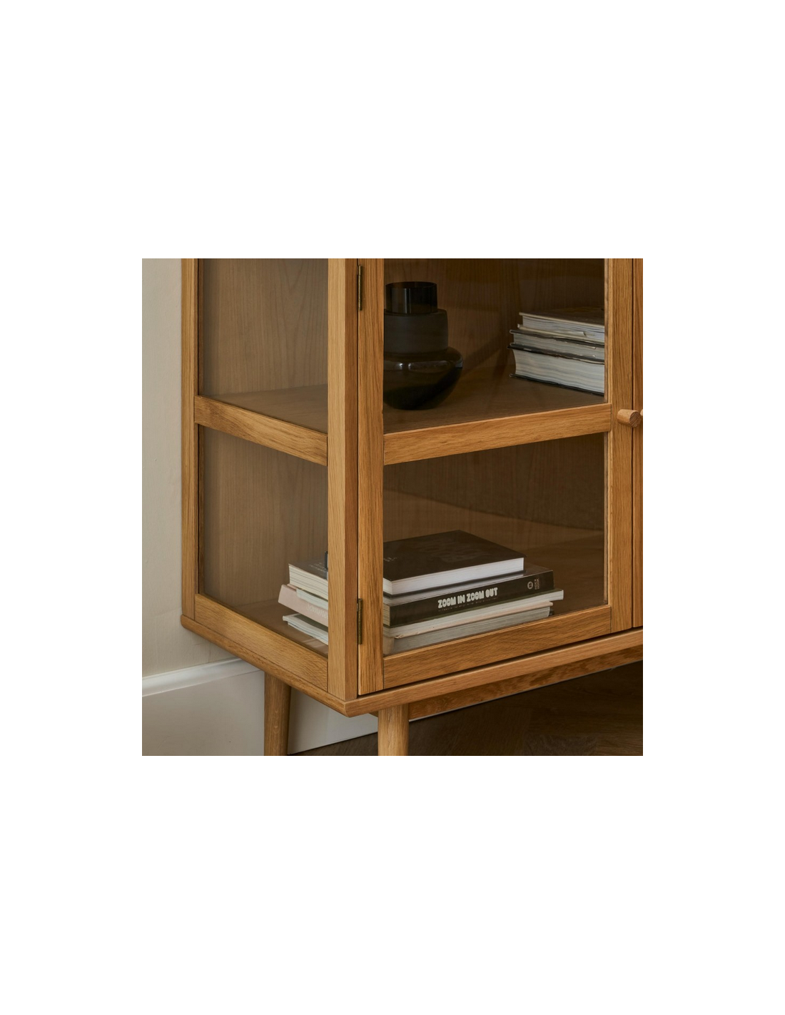 BORG Vitrineskab i egetræ, egetræsfinér og MDF H125 x B100 cm - Lakeret eg