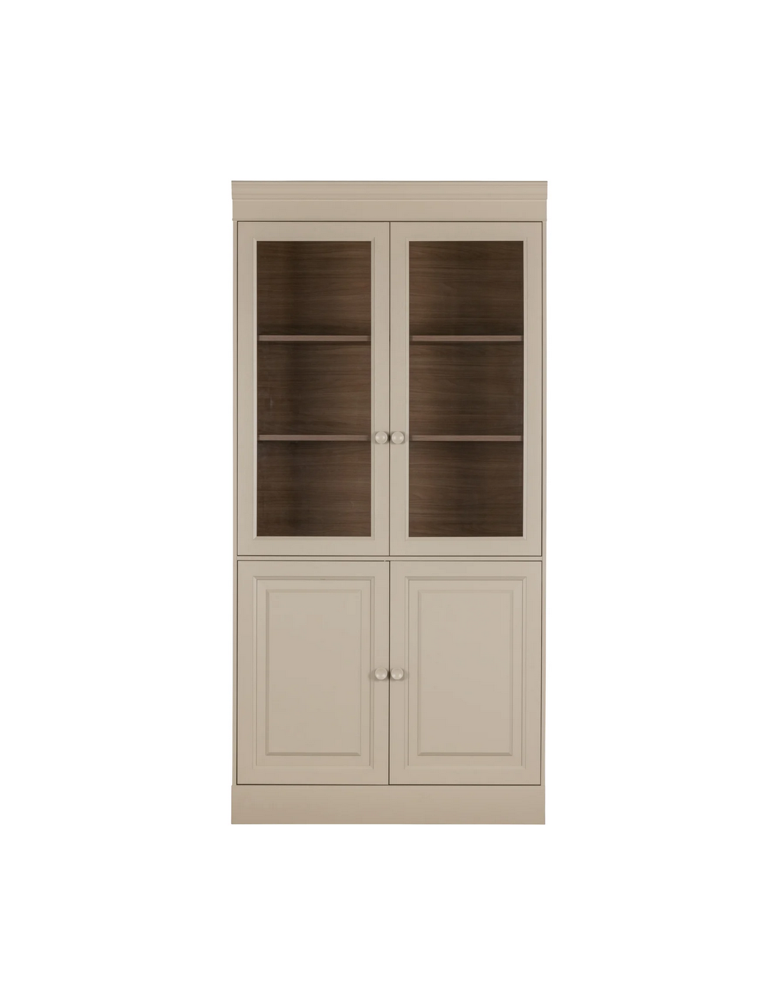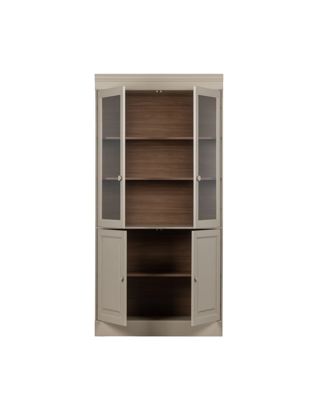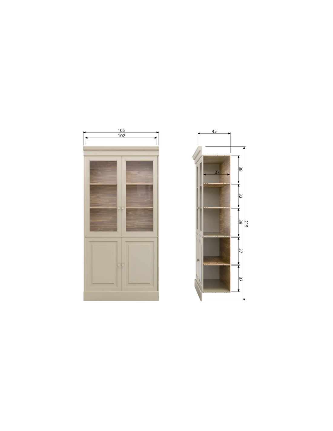 CHOW Vitrineskab i fyrretræ og glas H215 x B105 x D45 cm - Rustik sandgrå