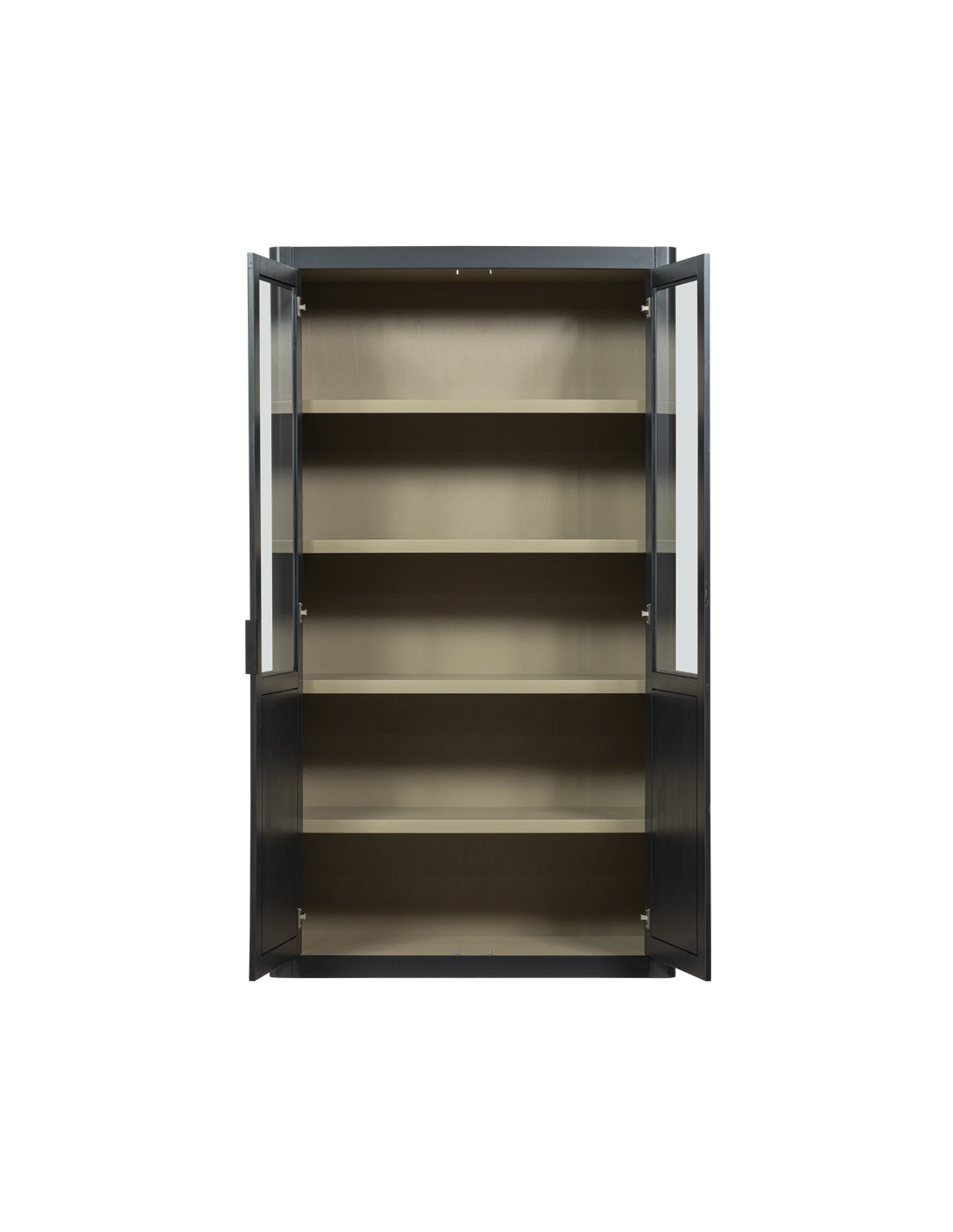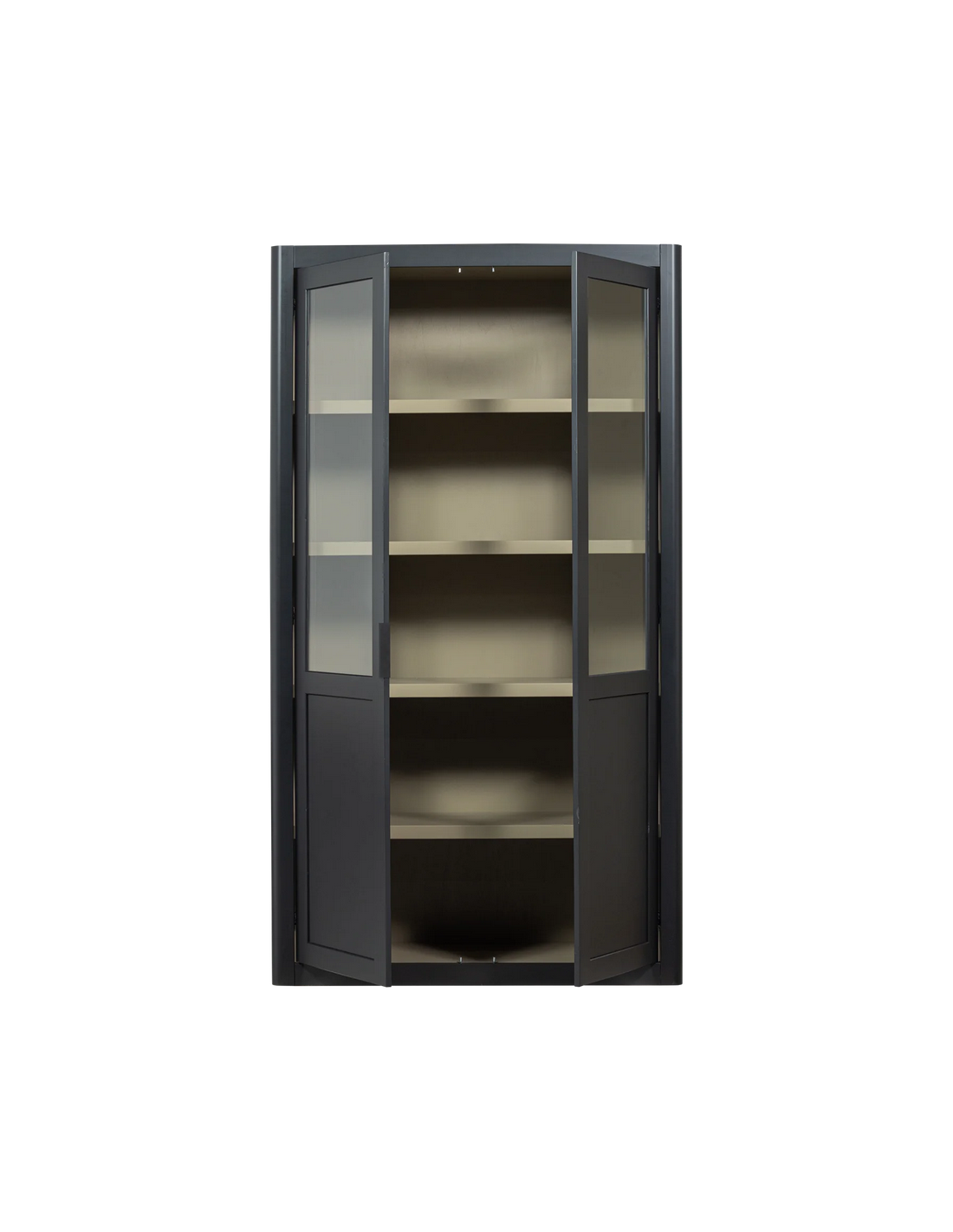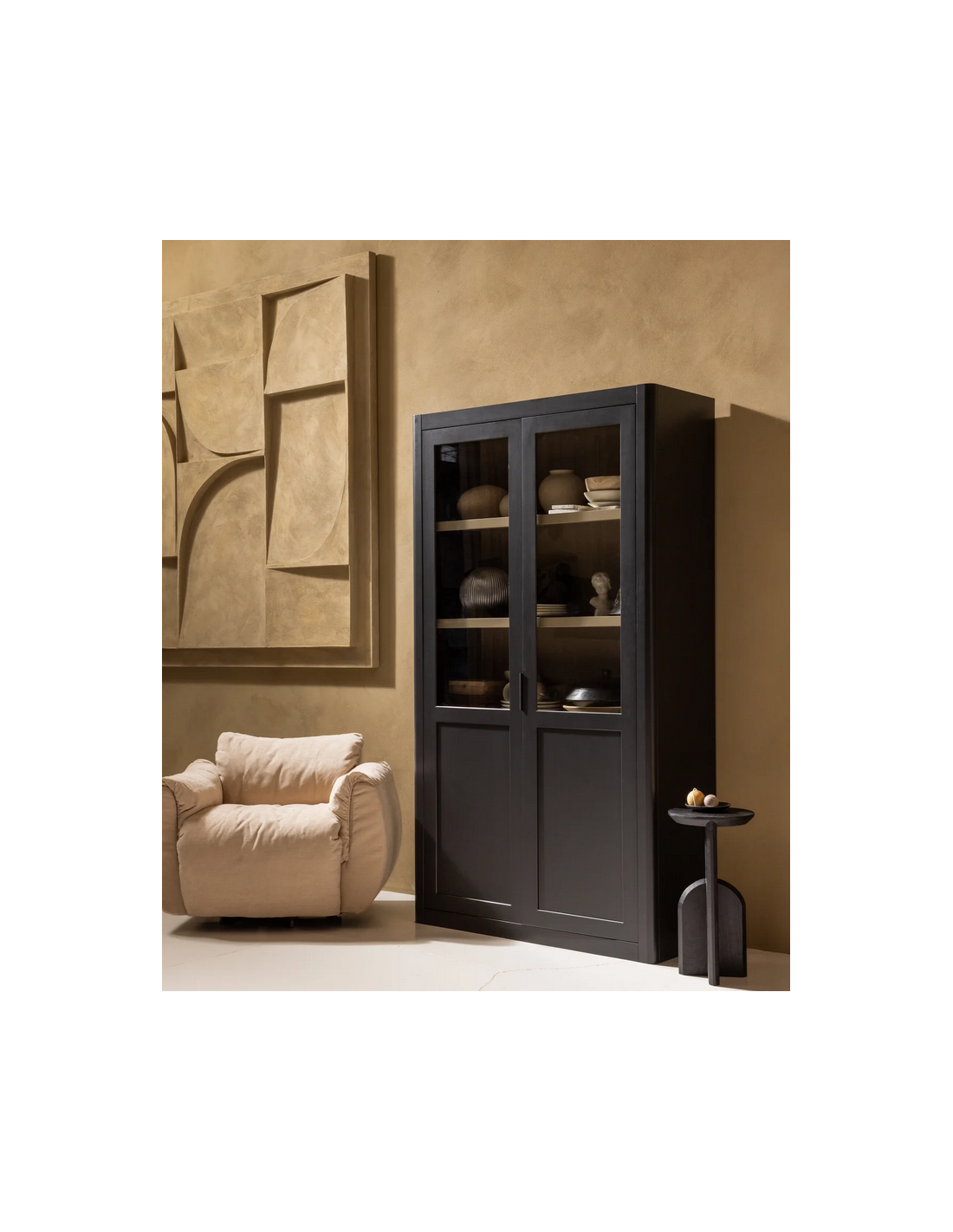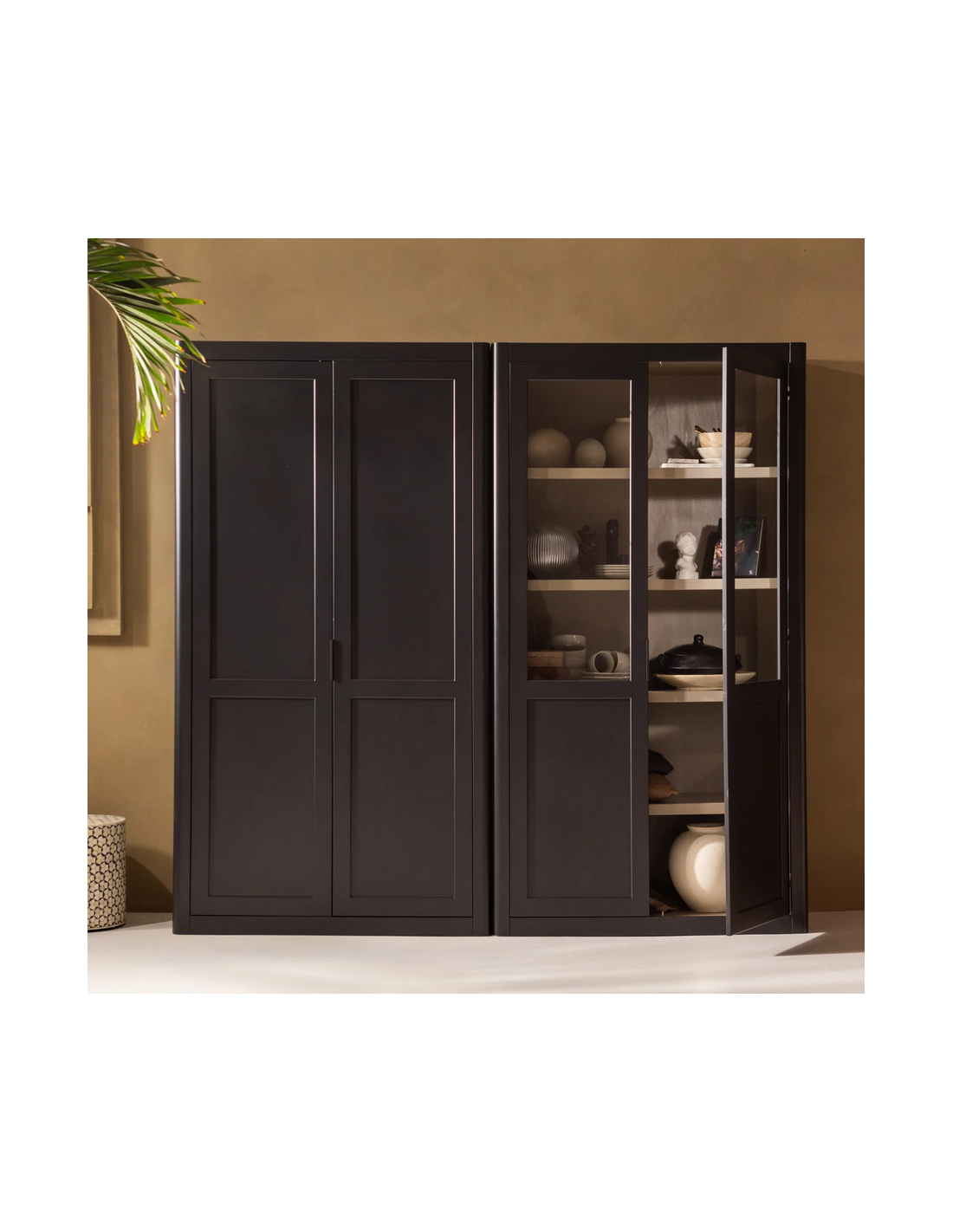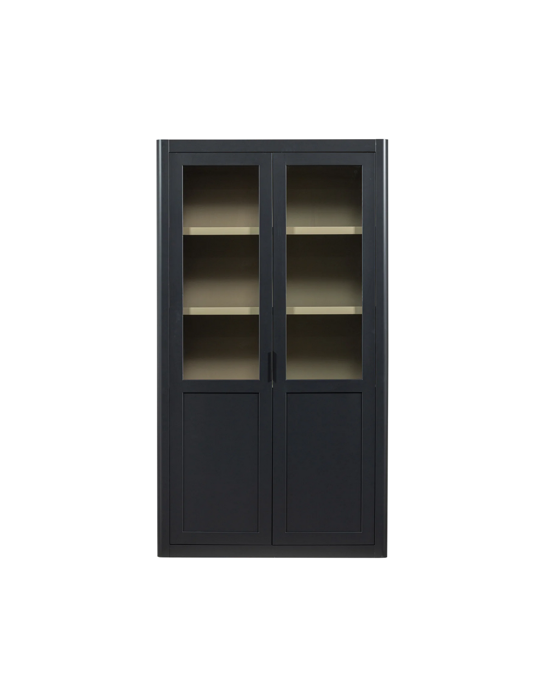 GUNNAR Vitrineskab i fyrretræ og glas H217 x B120 x D48 cm - Rustik sort/Rustik jordbrun