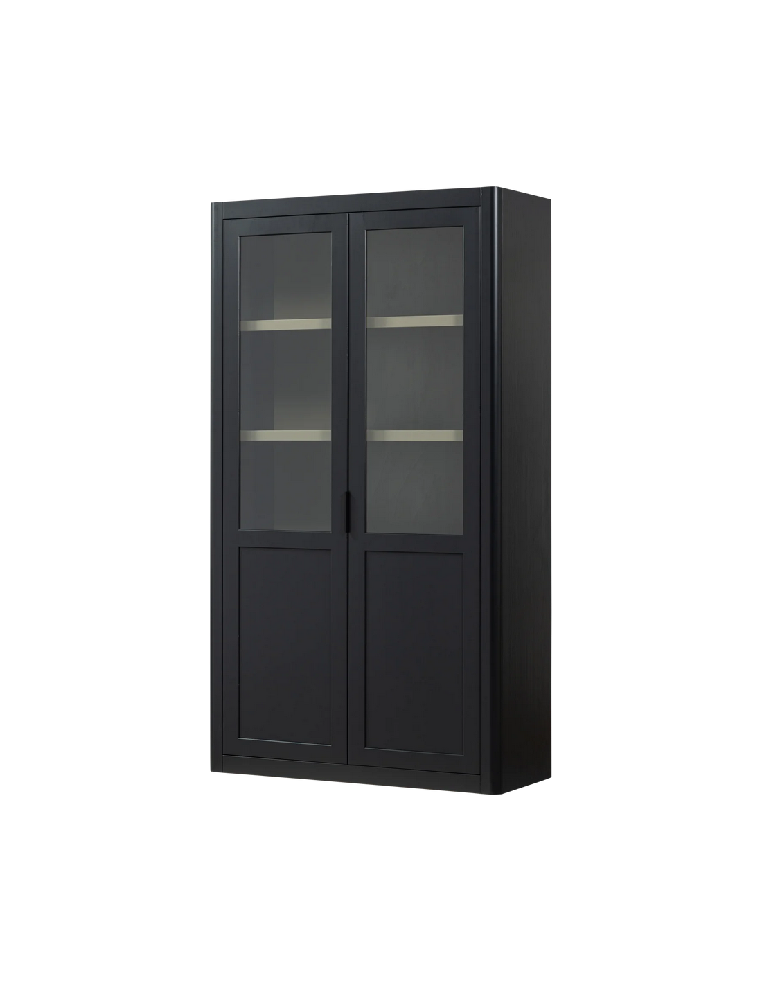 GUNNAR Vitrineskab udført i et rustikt design af sort og jordbrun lakeret fyrretræ og klart glas. Den rustikke stil kendetegnes ved tydelige knaster fra træets naturlige fremtoning. Vitrineskabet måler 217 cm i højden og 120 x 48 cm i bredde og dybde. I vitrineskabet forefindes 2 skabslåger med i alt 5 hylderum.