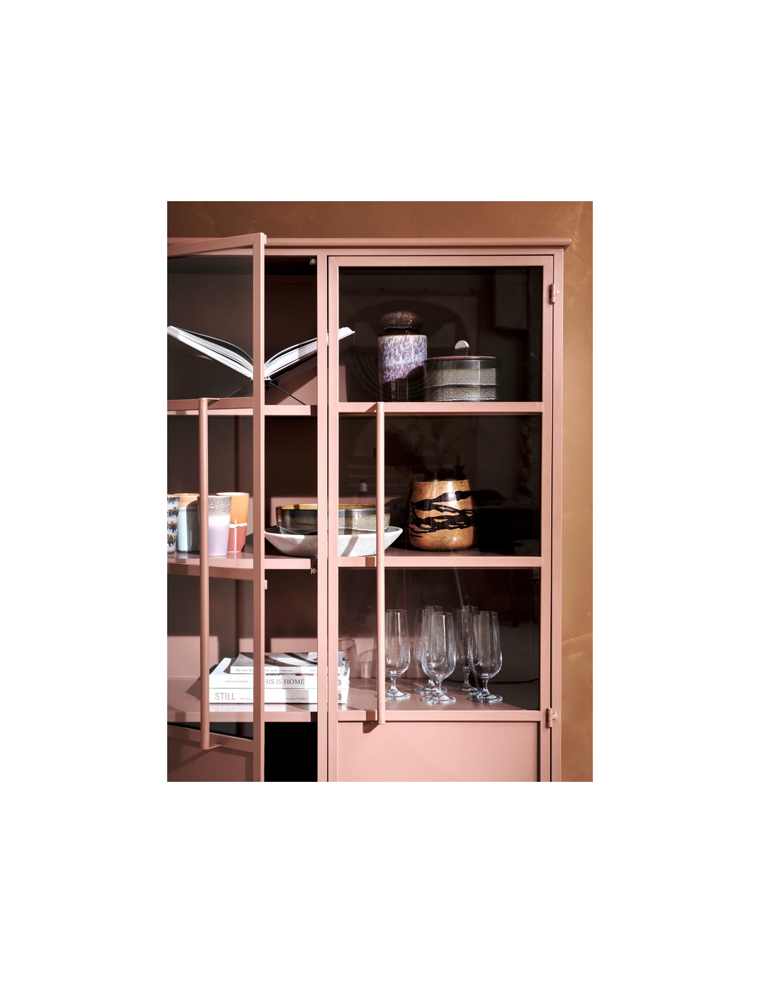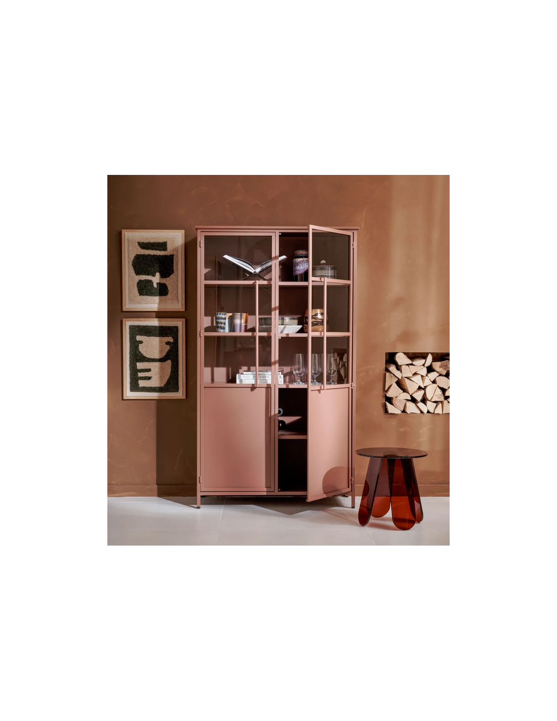 EXHIBIT Vitrineskab udført i et industrielt design af rødbrun farvet jern og klart glas. Den industrielle stil kendetegnes ved et "let slidt fabriks" look. Vitrineskabet måler 170 cm i højden og 99 x 44 cm i bredde og dybde. I vitrineskabet forefindes 2 skabslåger med i alt 5 hylderum.